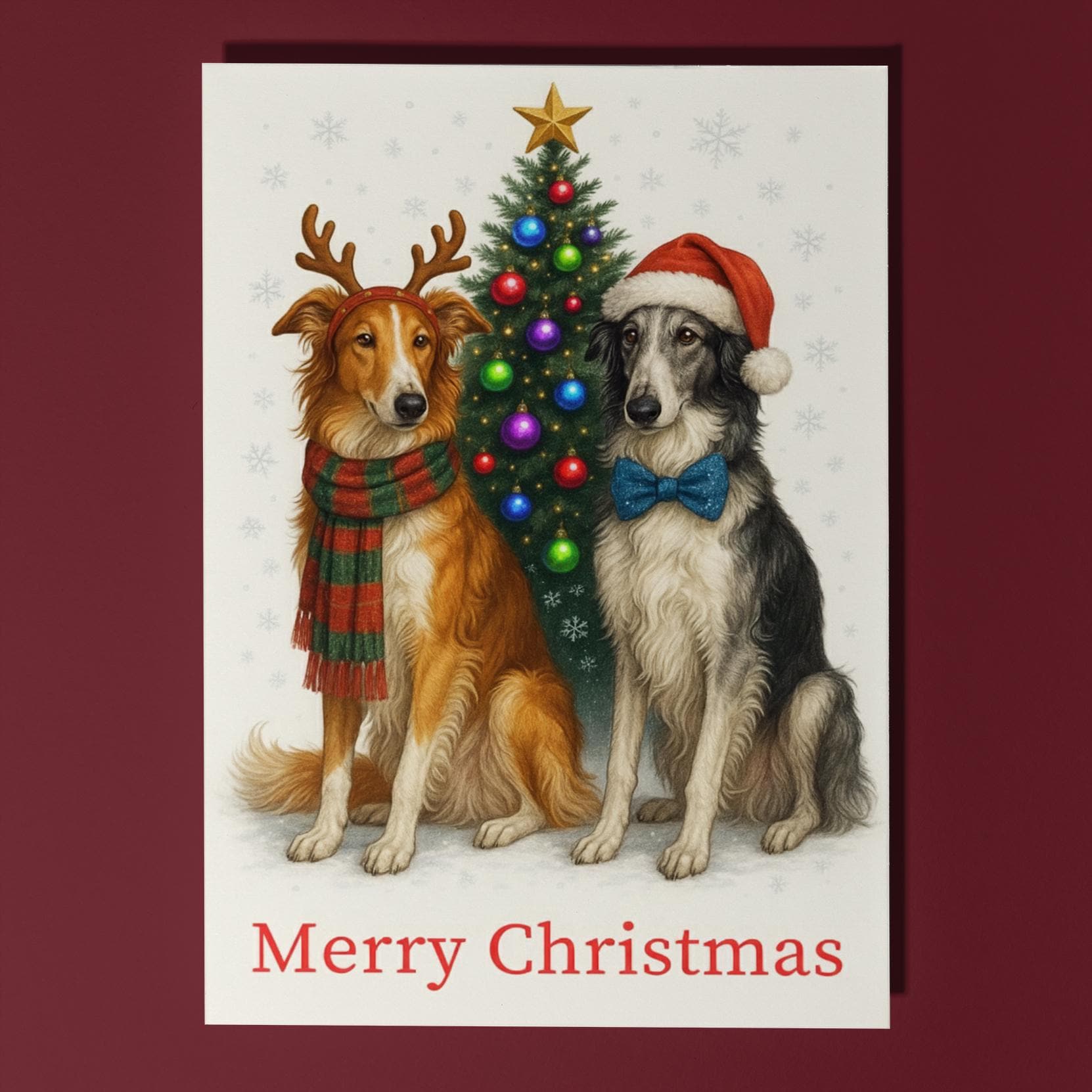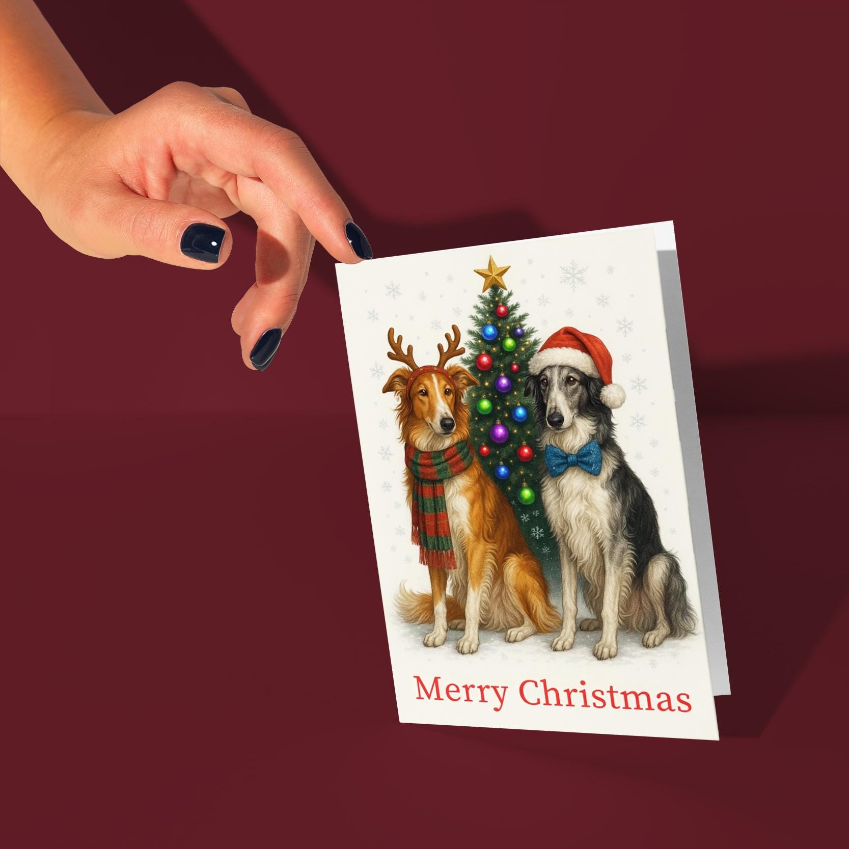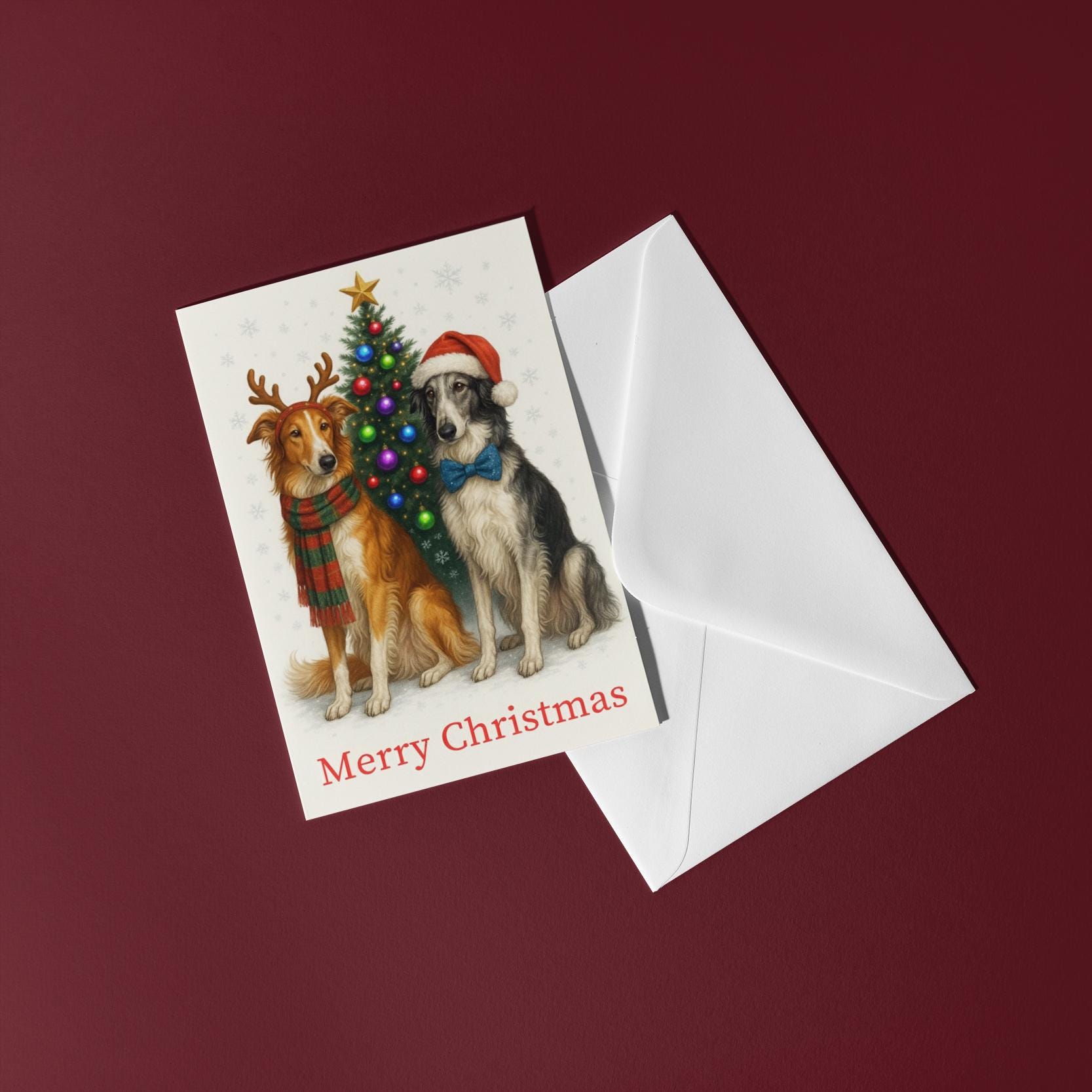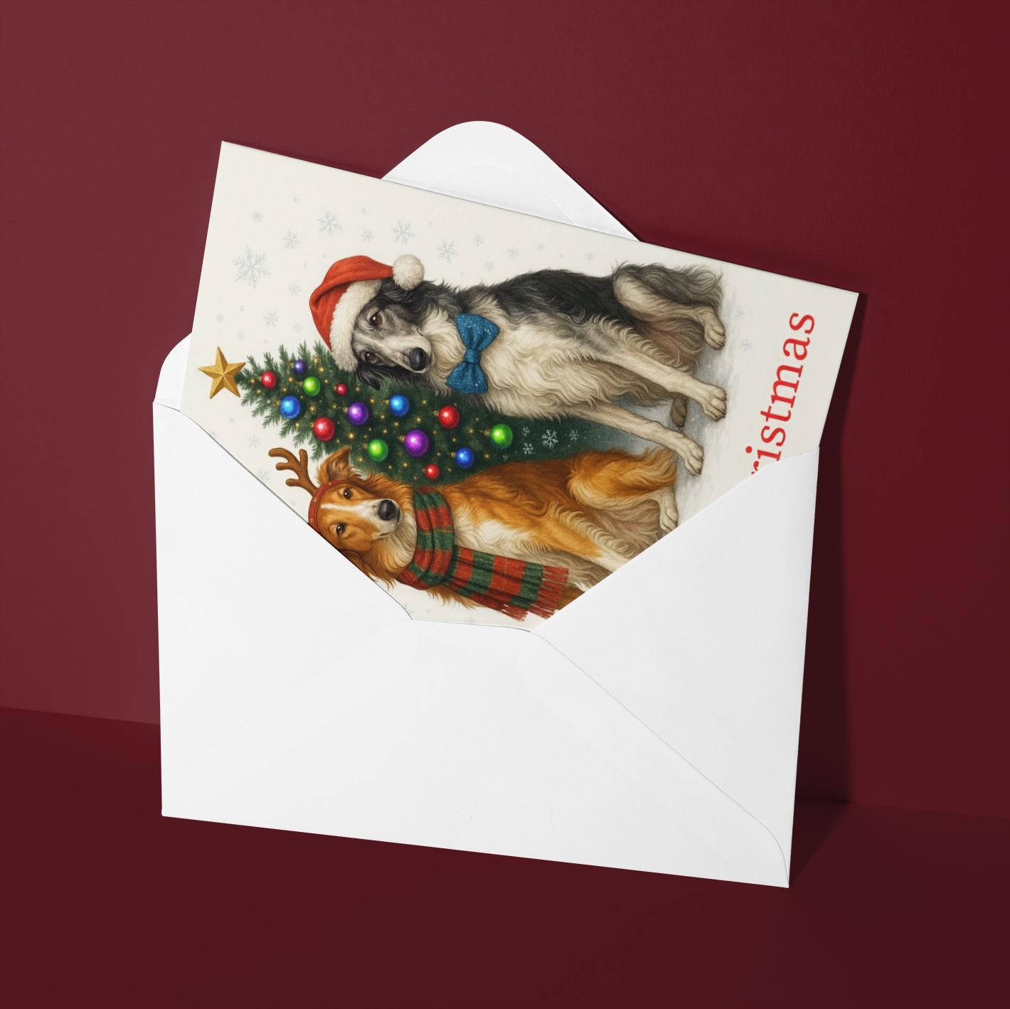 BLANK INTERIOR FOR A PERSONAL TOUCH: Part of the - Dog Breeds Collection - Fluffy Christmas Crew Collection - Borzoi Dogs Duo - Merry Christmas card and other whimsical designs feature a blank interior, giving you ample space to write a personal message from the heart. Perfect for any occasion, each card comes with a matching white envelope, making it easy to send your unique sentiments to loved ones.