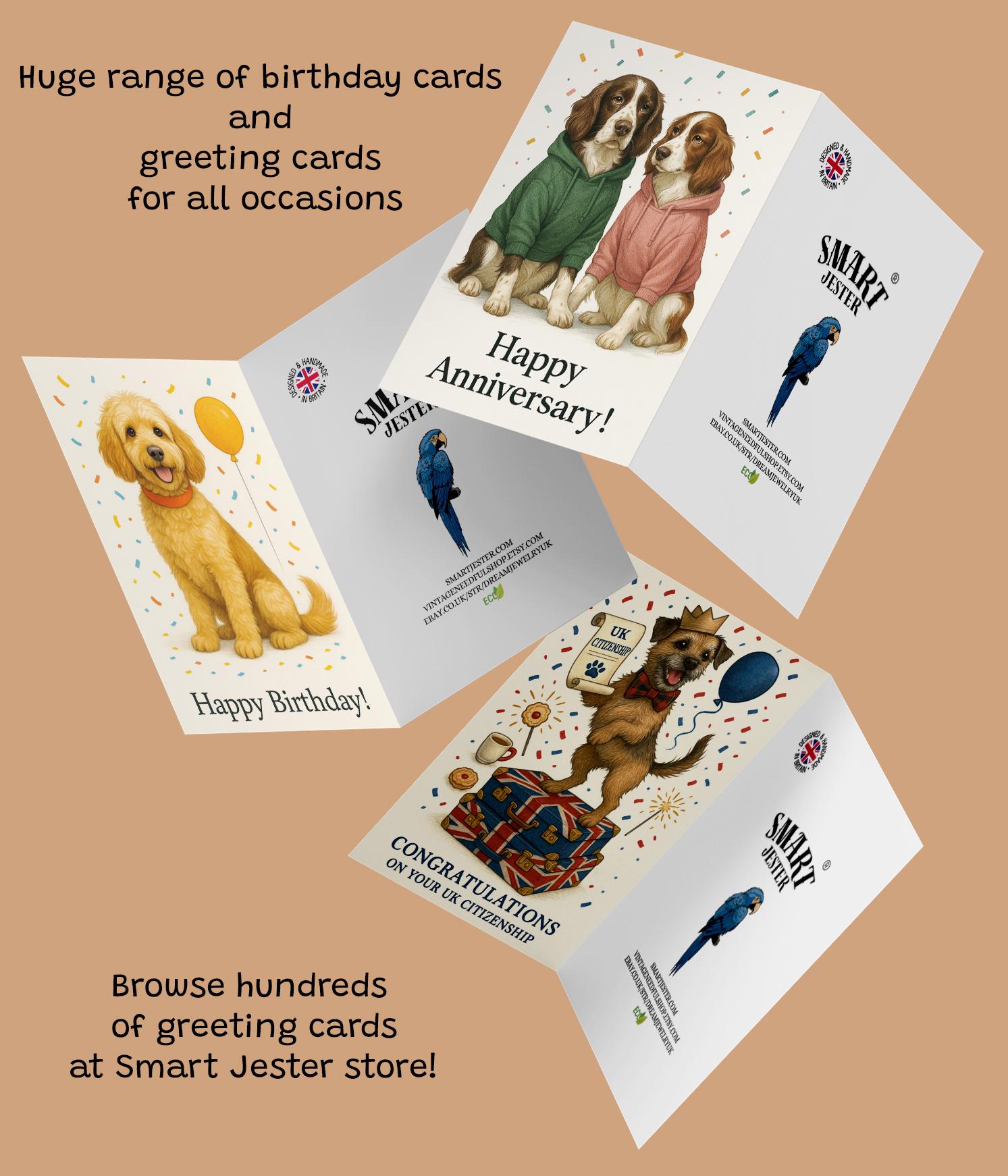 PROUDLY MADE IN THE UK: Designed and handmade in Britain using locally sourced materials, our greeting cards reflect UK craftsmanship and creativity. Suitable for Christmas, Mother’s Day, Father’s Day, thank-you notes, new baby announcements, and even LGBTQ+ cards, Smart Jester’s unique cards offer more than just greetings—they’re moments meant to share smiles!