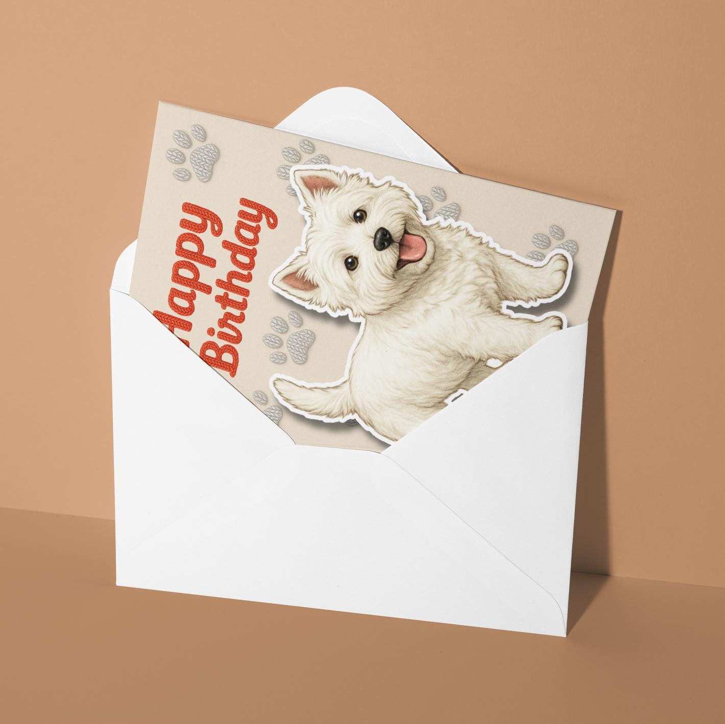 BLANK INTERIOR FOR A PERSONAL TOUCH: Part of the - Dog Breeds Collection - Pop Pets Collection – West Highland White Terrier Dog - Happy Birthday! - card and other whimsical designs feature a blank interior, giving you ample space to write (front or inside) a personal message from the heart. Perfect for any occasion, each card comes with a matching white envelope, making it easy to send your unique sentiments to loved ones.