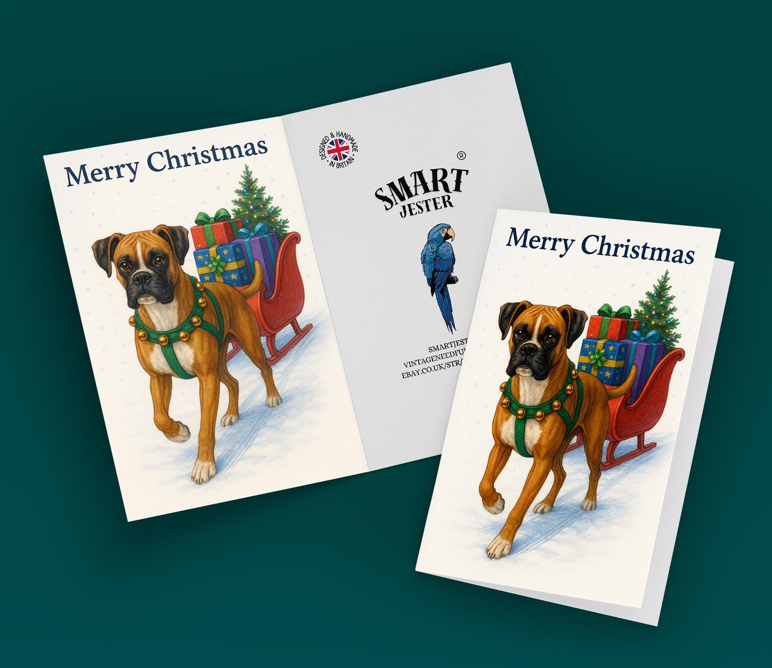 BLANK INTERIOR FOR A PERSONAL TOUCH: Part of the - Dog Breeds Collection - Santa’s Helpers Collection - Boxer Dog - Merry Christmas! Card and other whimsical designs feature a blank interior, giving you ample space to write a personal message from the heart. Perfect for any occasion, each card comes with a matching white envelope, making it easy to send your unique sentiments to loved ones.