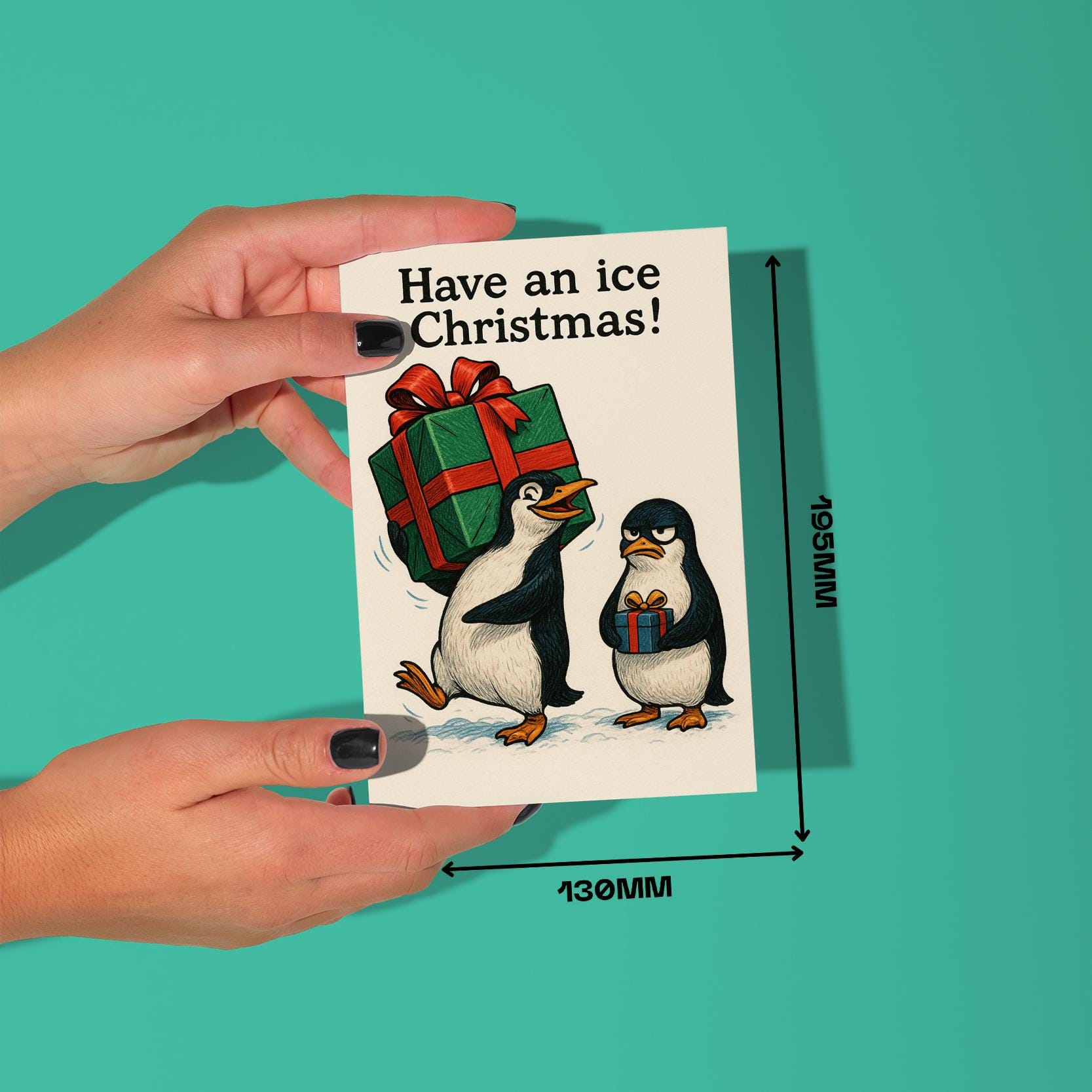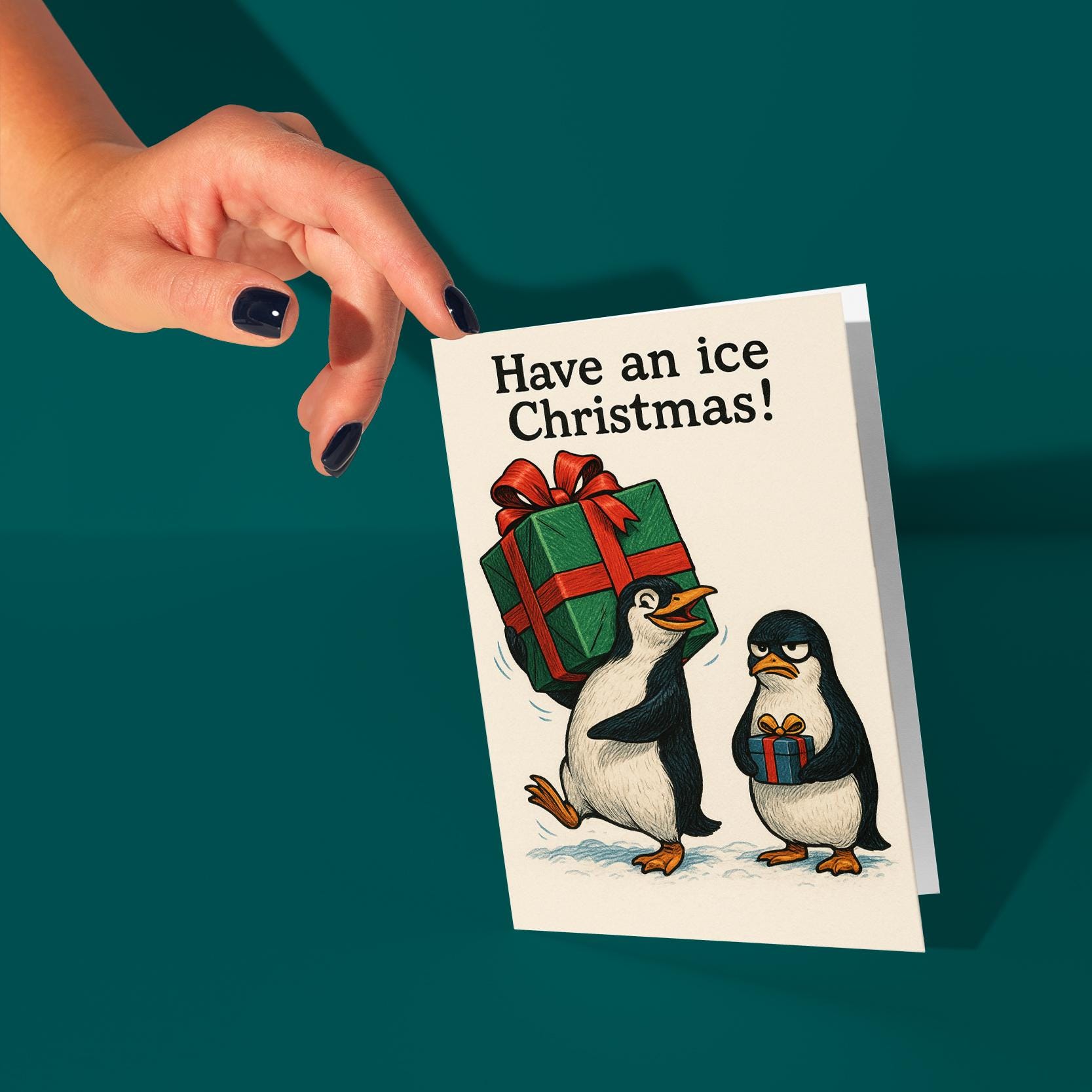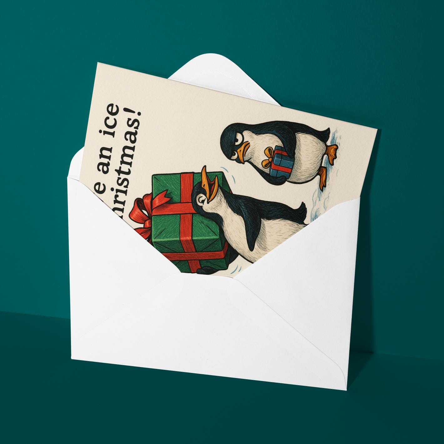 BLANK INTERIOR FOR A PERSONAL TOUCH: Merry Mischief Comic - Penguins - Have an ice Christmas - Merry Christmas card and other whimsical designs feature a blank interior, giving you ample space to write a personal message from the heart. Perfect for any occasion, each card comes with a matching white envelope, making it easy to send your unique sentiments to loved ones.