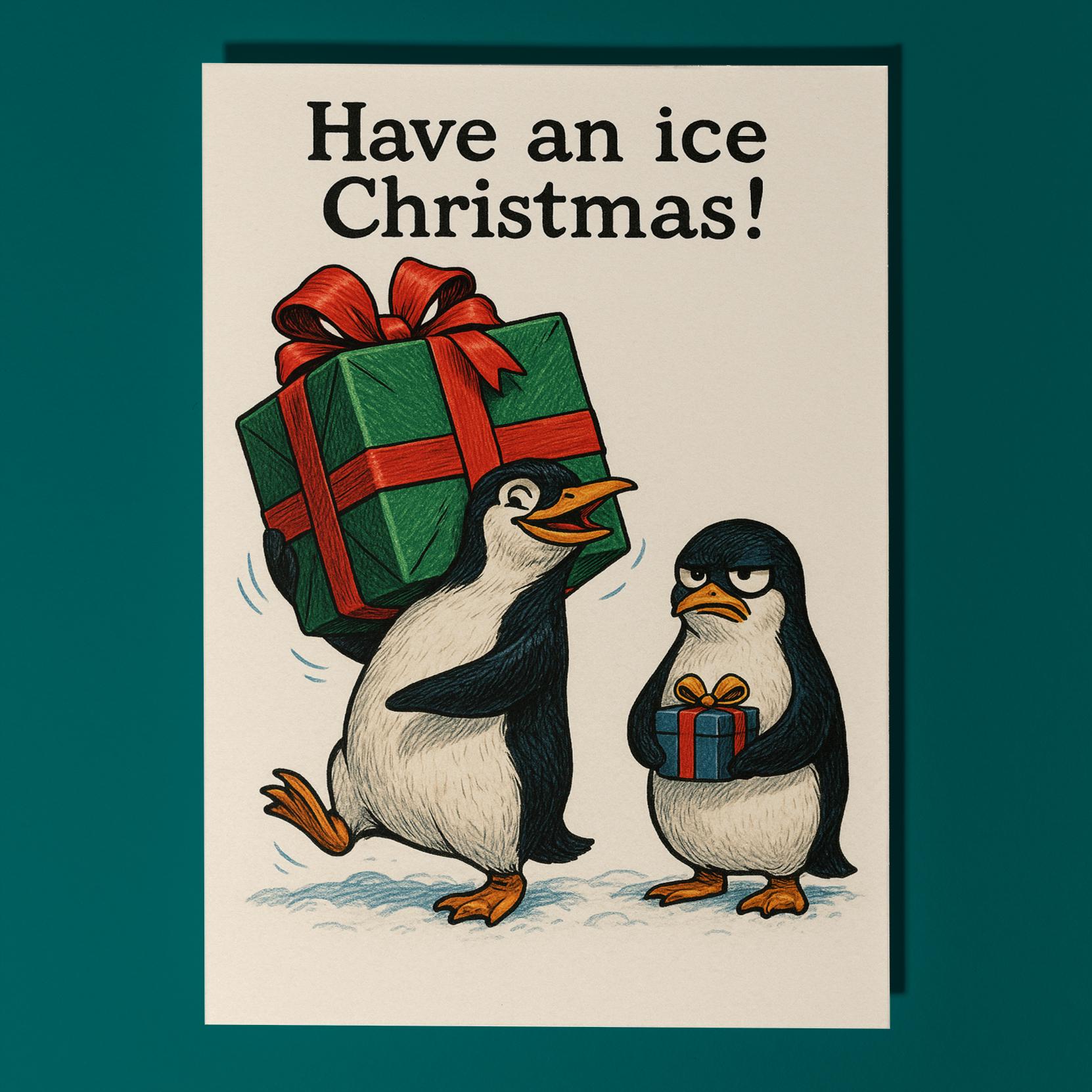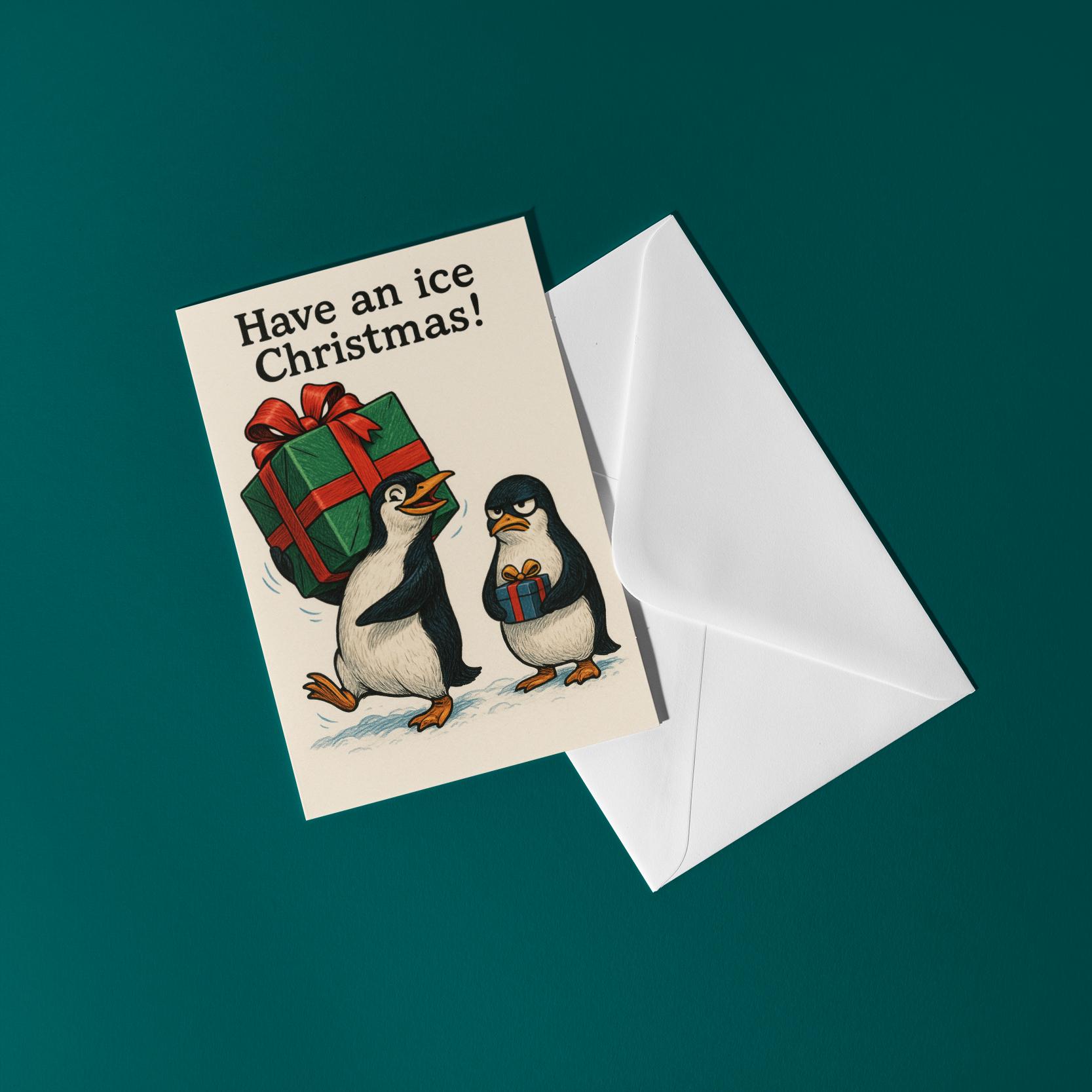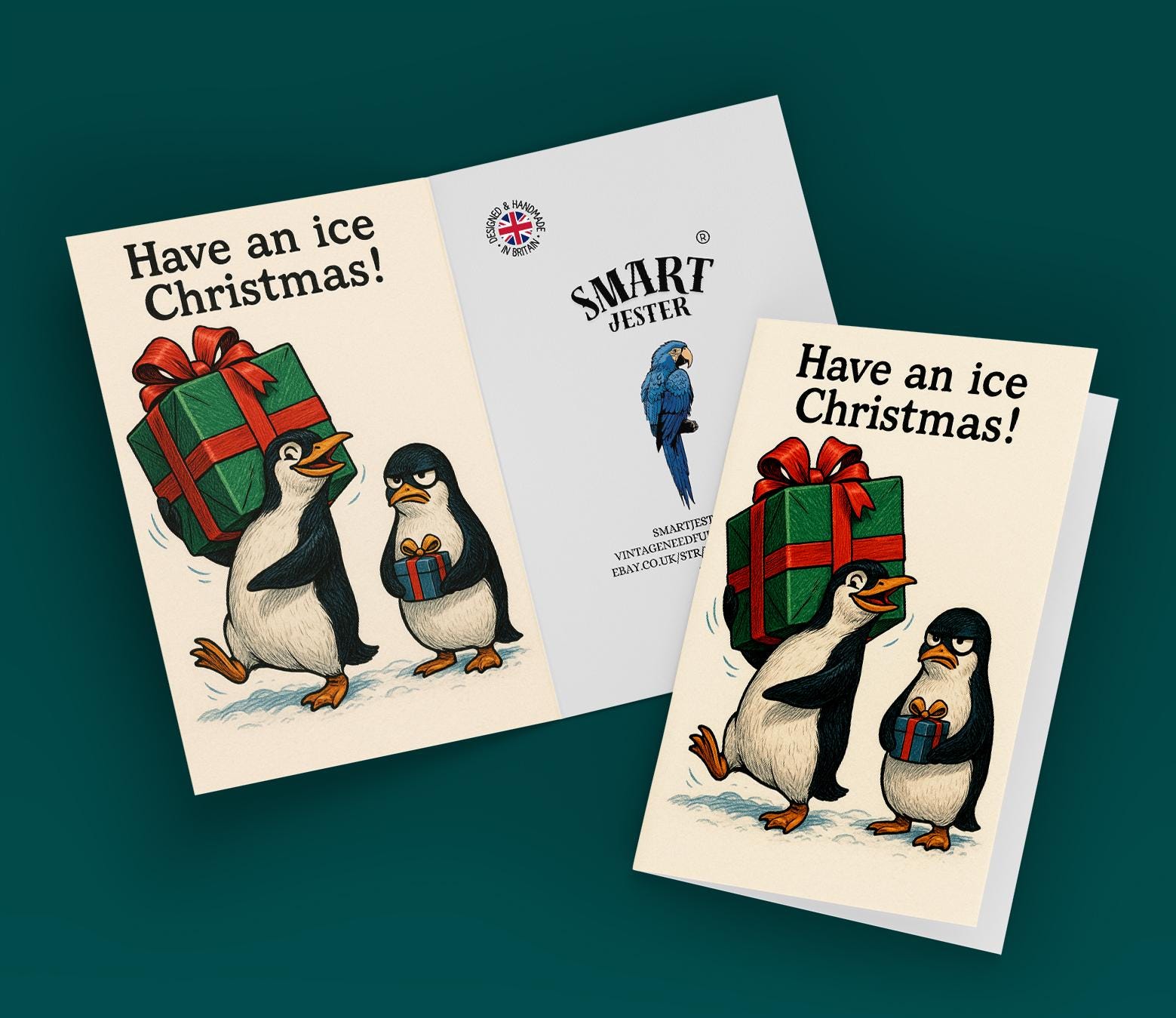 BLANK INTERIOR FOR A PERSONAL TOUCH: Merry Mischief Comic - Penguins - Have an ice Christmas - Merry Christmas card and other whimsical designs feature a blank interior, giving you ample space to write a personal message from the heart. Perfect for any occasion, each card comes with a matching white envelope, making it easy to send your unique sentiments to loved ones.
