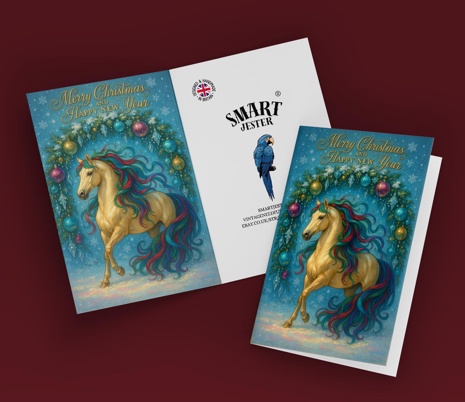 BLANK INTERIOR FOR A PERSONAL TOUCH: New Year Horse - Under Arch - Merry Christmas and Happy New Year Card and other whimsical designs feature a blank interior, giving you ample space to write a personal message from the heart. Perfect for any occasion, each card comes with a matching white envelope, making it easy to send your unique sentiments to loved ones.