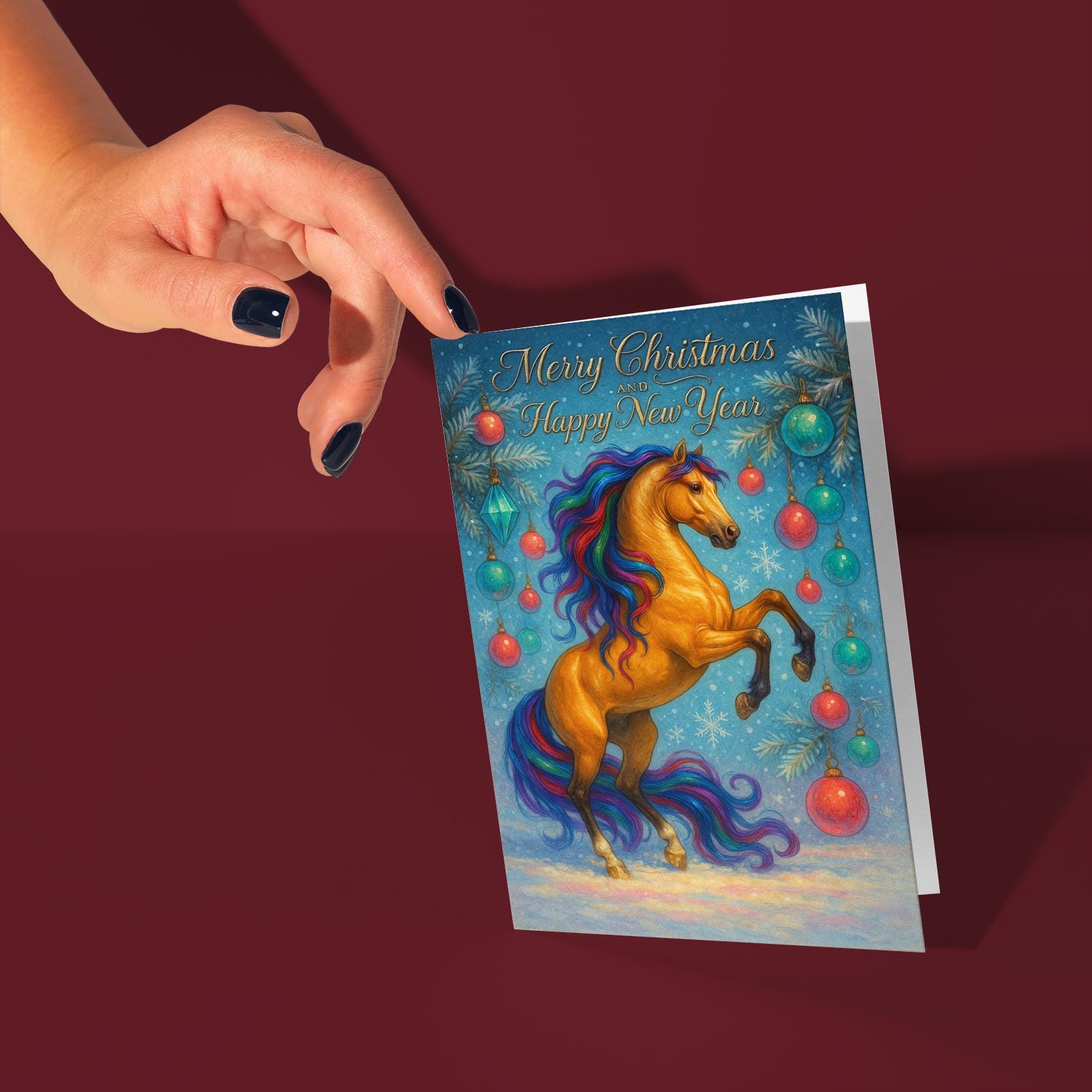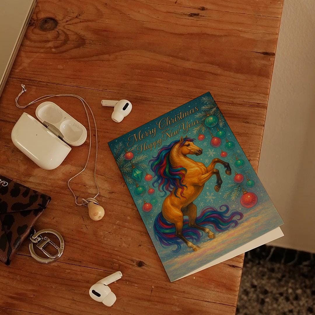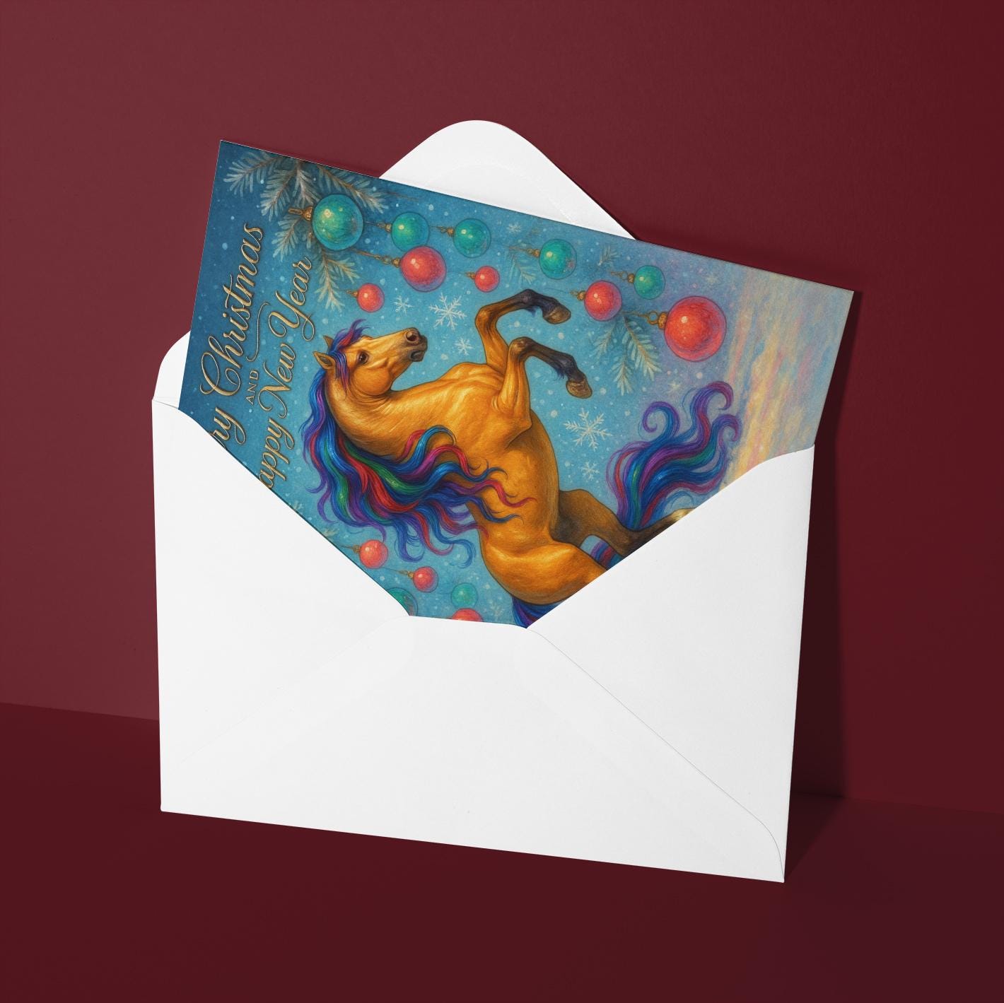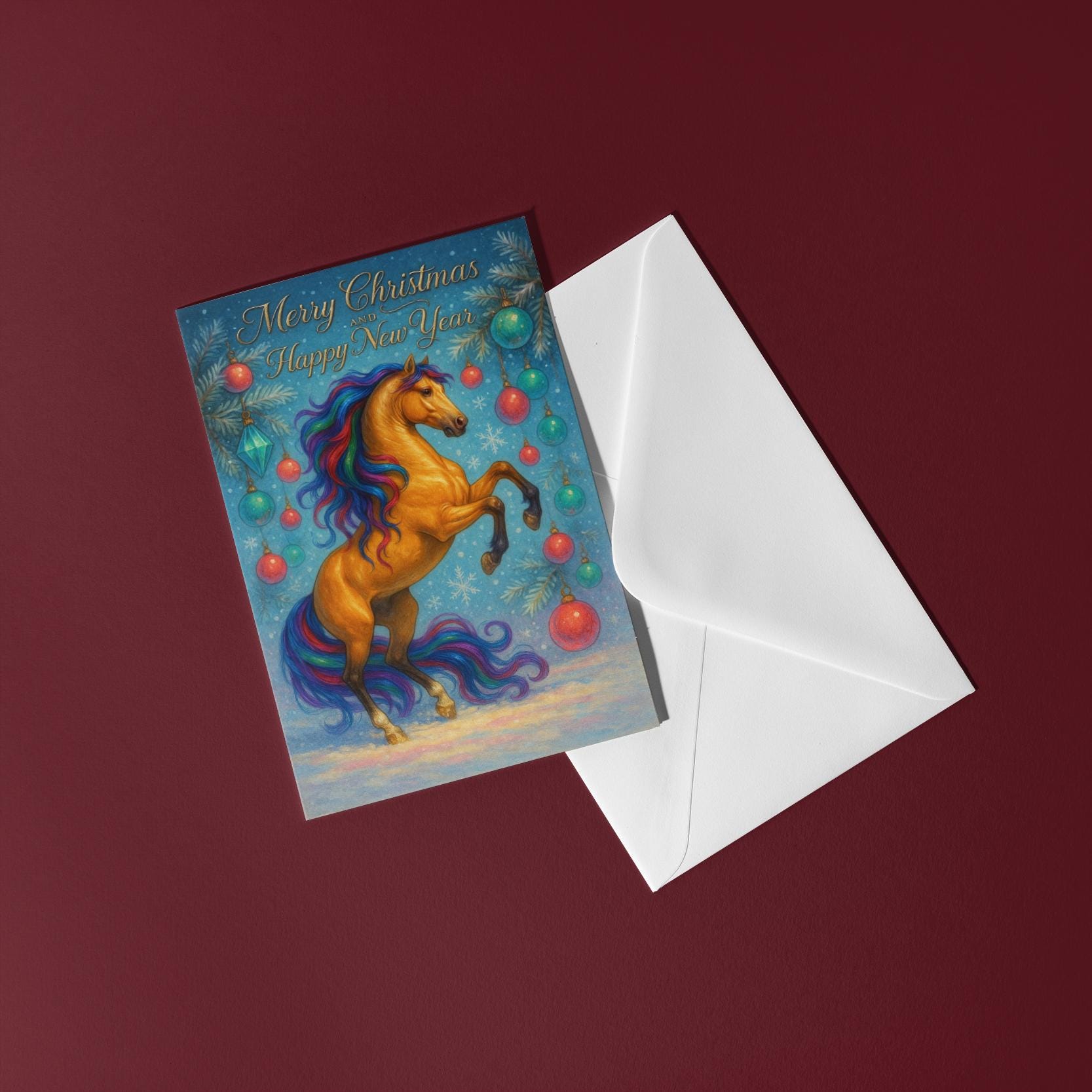 BLANK INTERIOR FOR A PERSONAL TOUCH: New Year Horse - Rising Horse - Merry Christmas and Happy New Year Card and other whimsical designs feature a blank interior, giving you ample space to write a personal message from the heart. Perfect for any occasion, each card comes with a matching white envelope, making it easy to send your unique sentiments to loved ones.