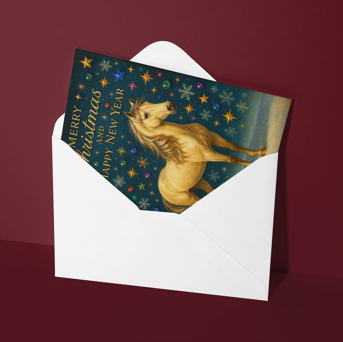 BLANK INTERIOR FOR A PERSONAL TOUCH: New Year Horse - Star Jewel - Merry Christmas and Happy New Year Card and other whimsical designs feature a blank interior, giving you ample space to write a personal message from the heart. Perfect for any occasion, each card comes with a matching white envelope, making it easy to send your unique sentiments to loved ones.