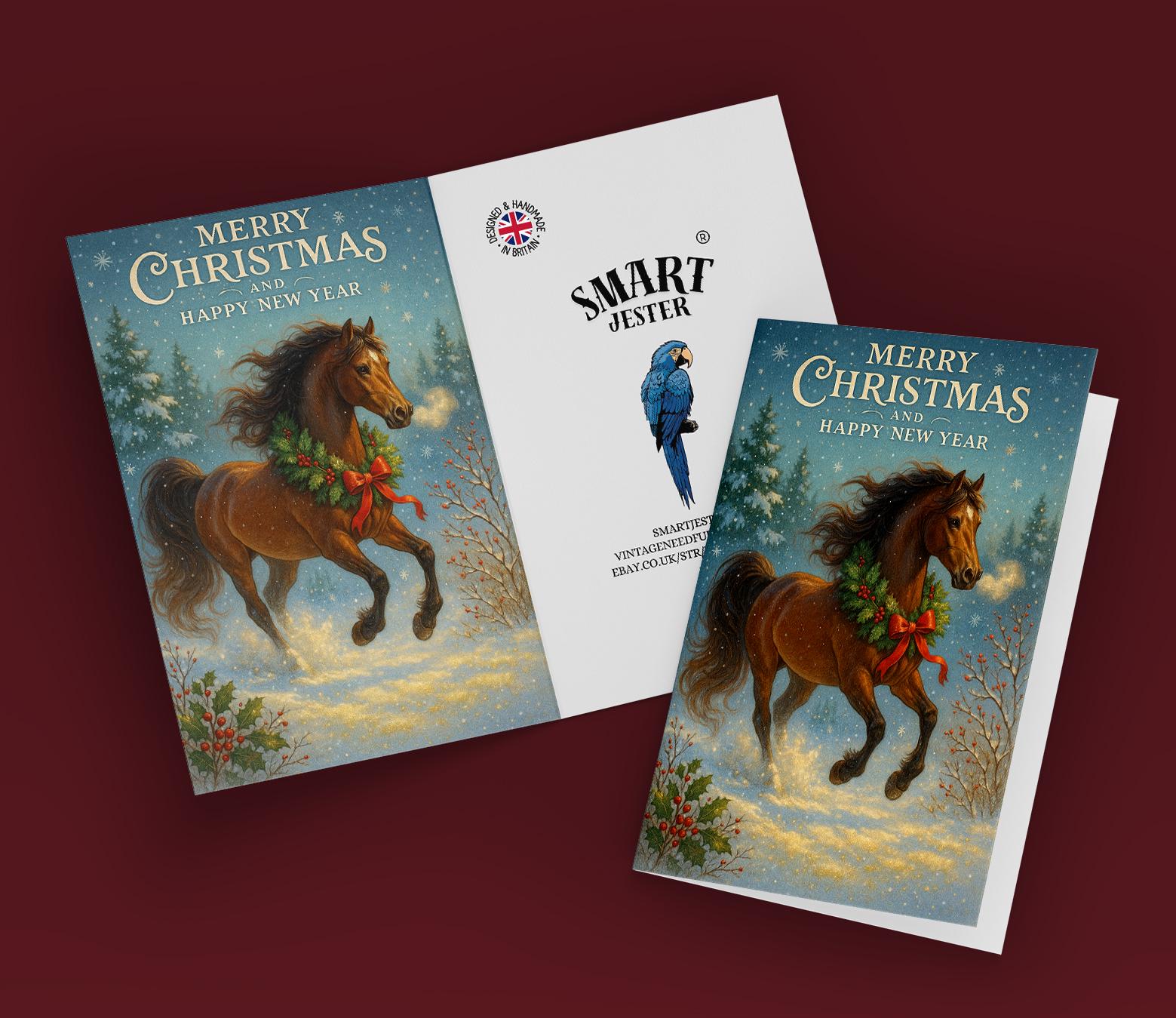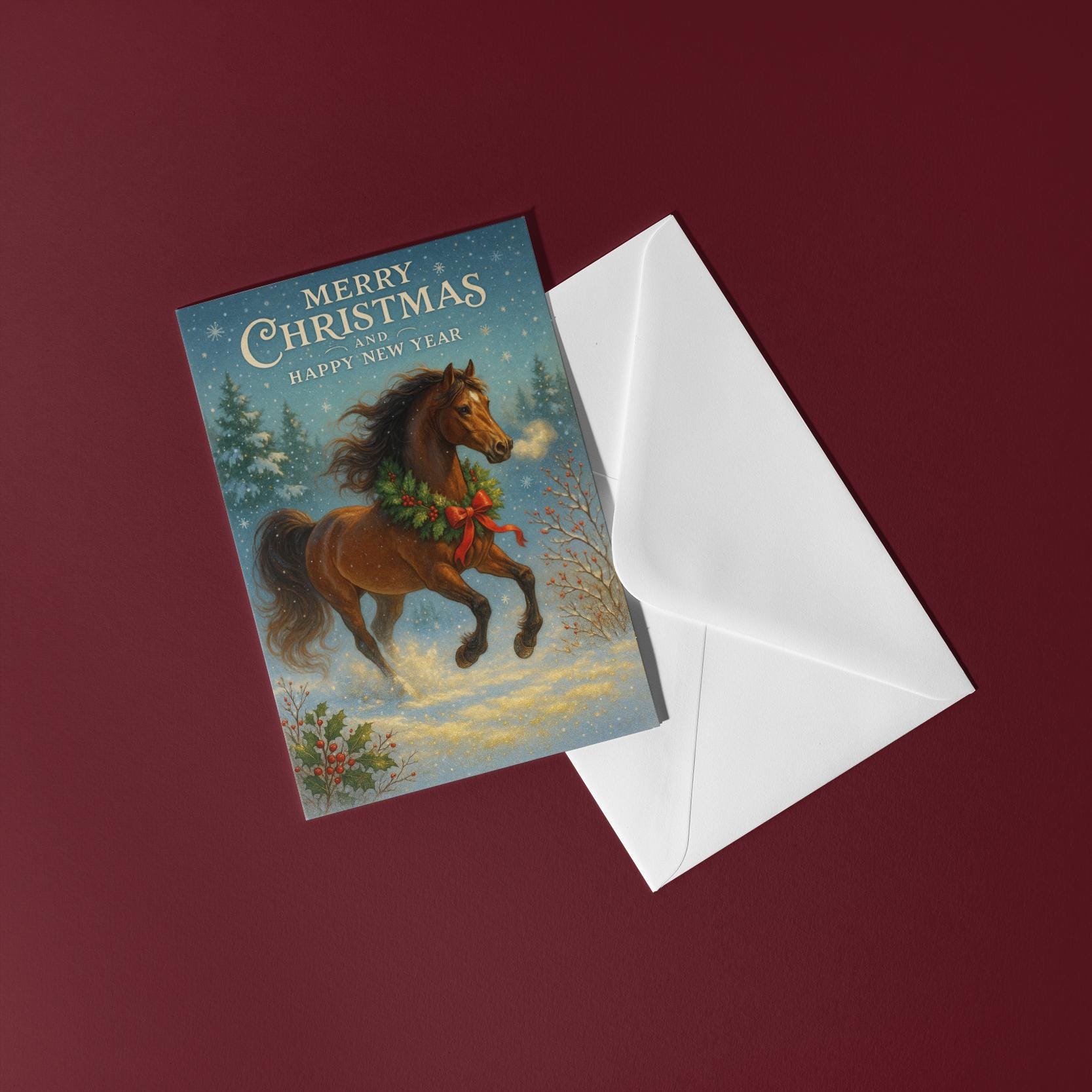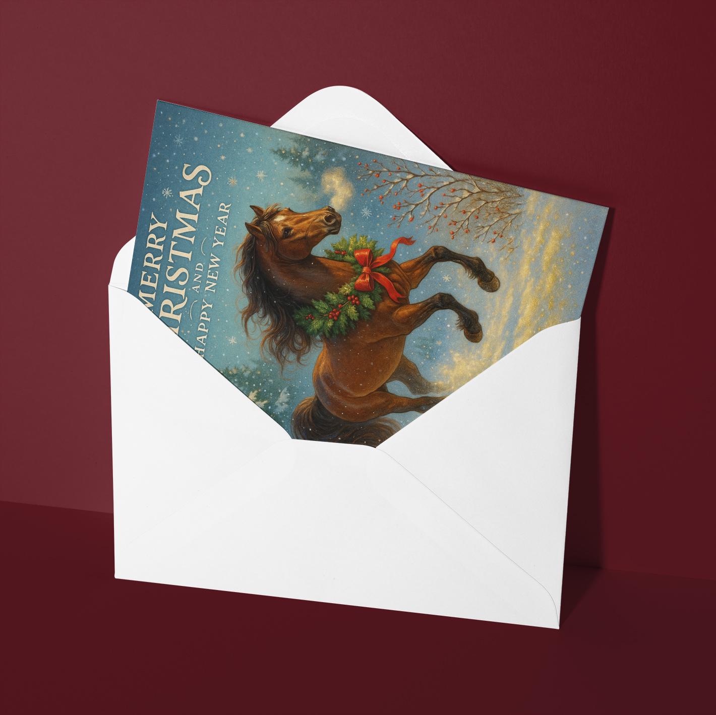BLANK INTERIOR FOR A PERSONAL TOUCH: New Year Horse - Festive Grace - Merry Christmas and Happy New Year Card and other whimsical designs feature a blank interior, giving you ample space to write a personal message from the heart. Perfect for any occasion, each card comes with a matching white envelope, making it easy to send your unique sentiments to loved ones.