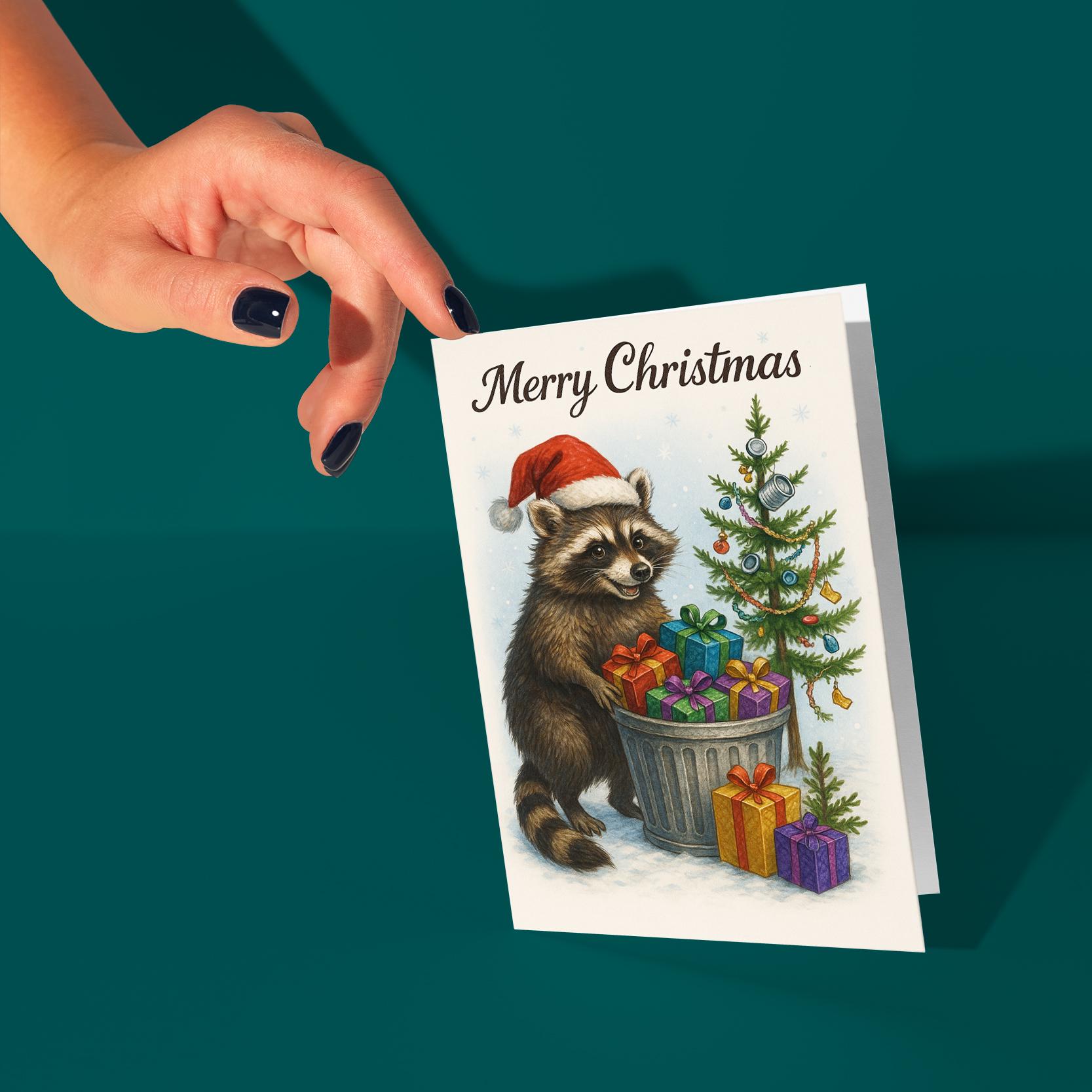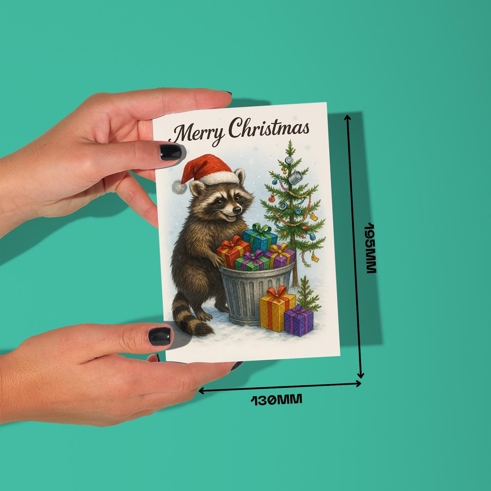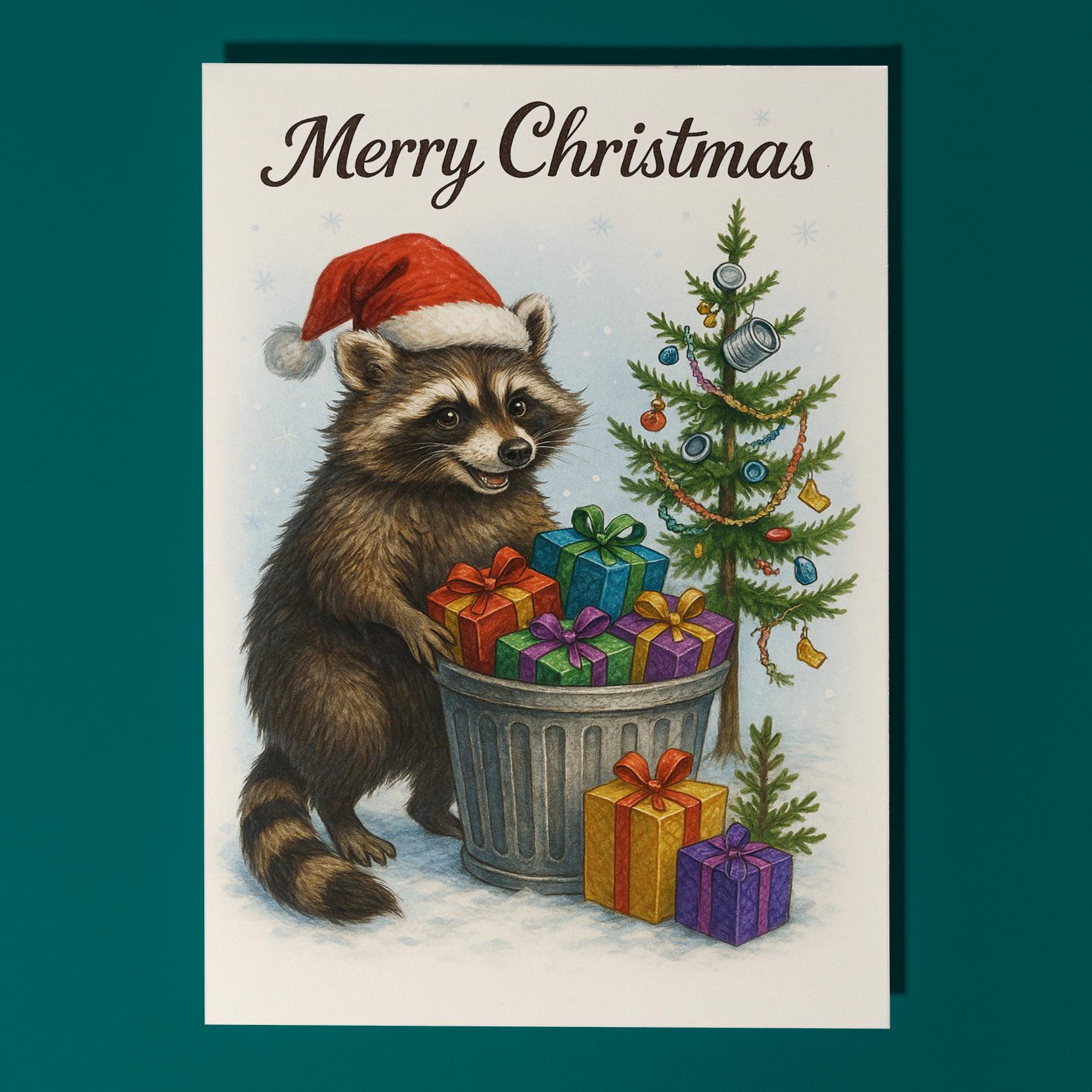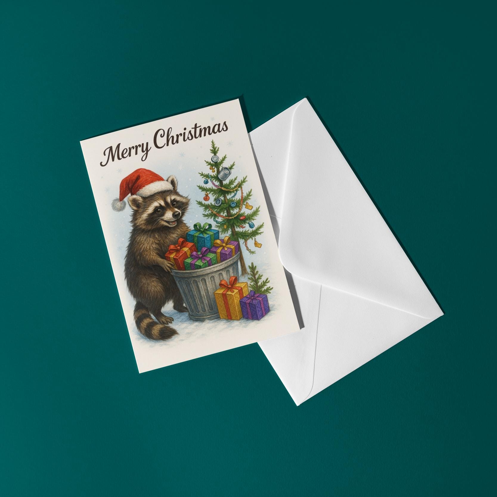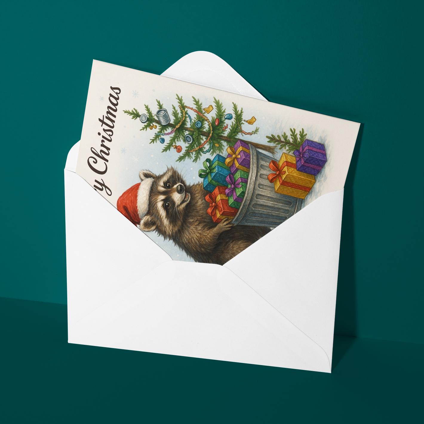 BLANK INTERIOR FOR A PERSONAL TOUCH: Santa’s Trash Helper Recycling Raccoon - Merry Christmas! Card and other whimsical designs feature a blank interior, giving you ample space to write a personal message from the heart. Perfect for any occasion, each card comes with a matching white envelope, making it easy to send your unique sentiments to loved ones.