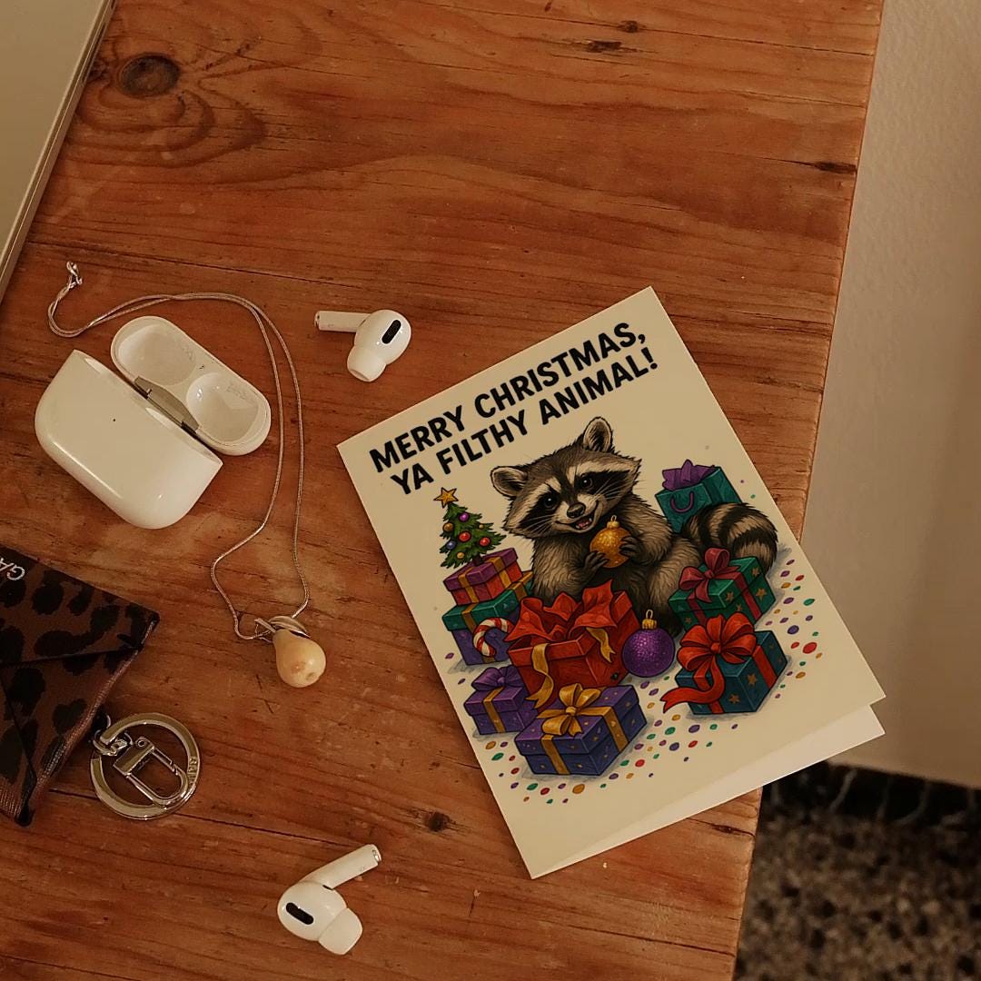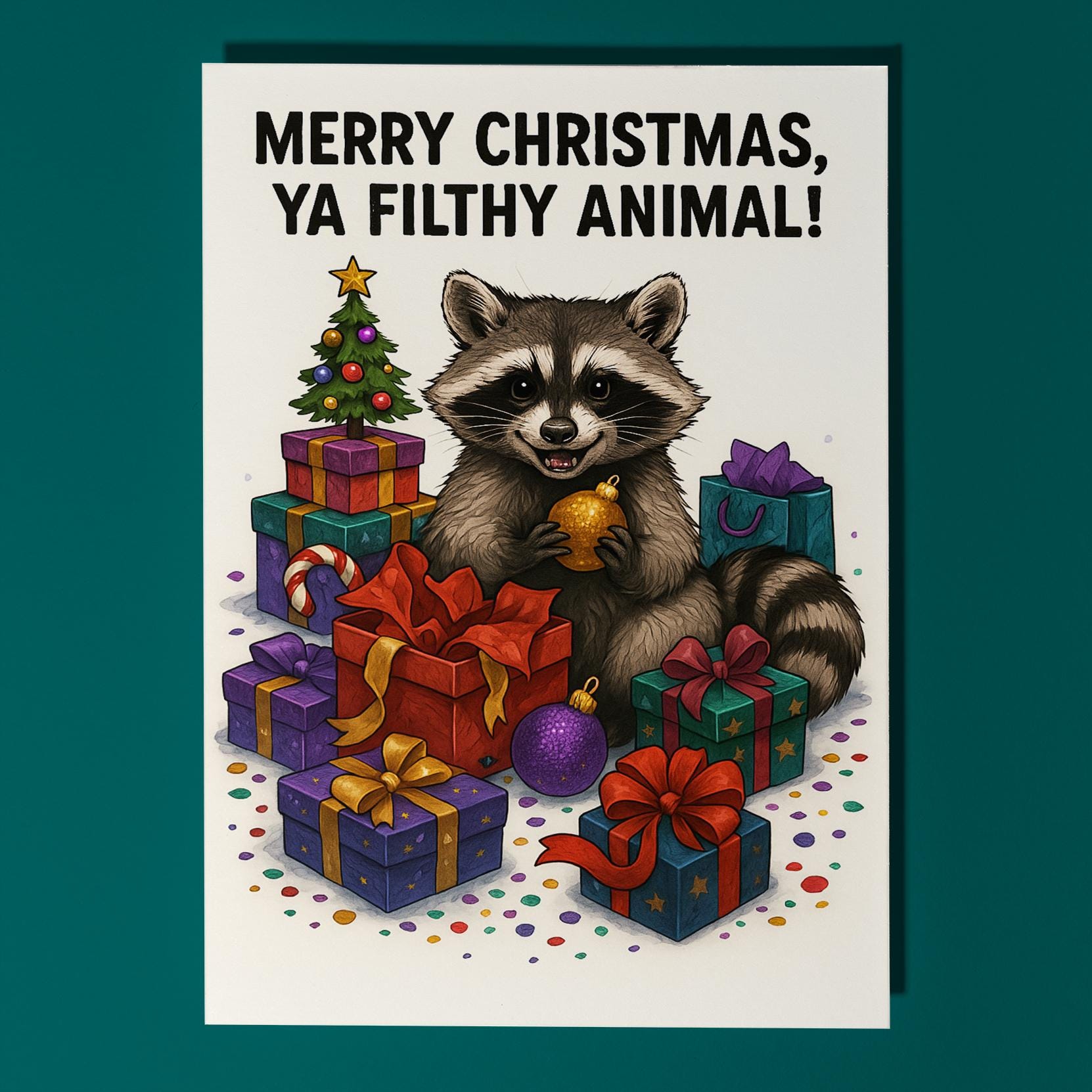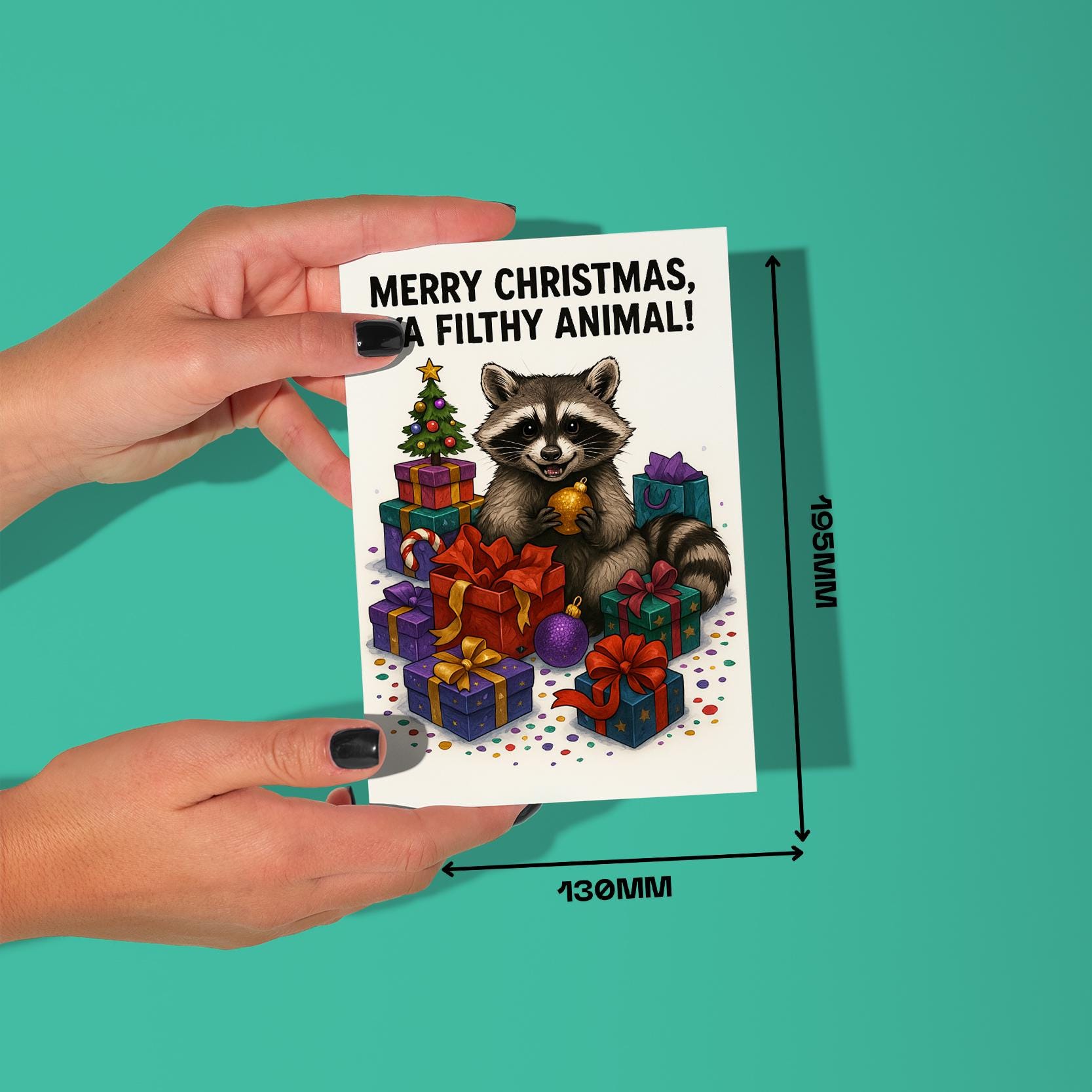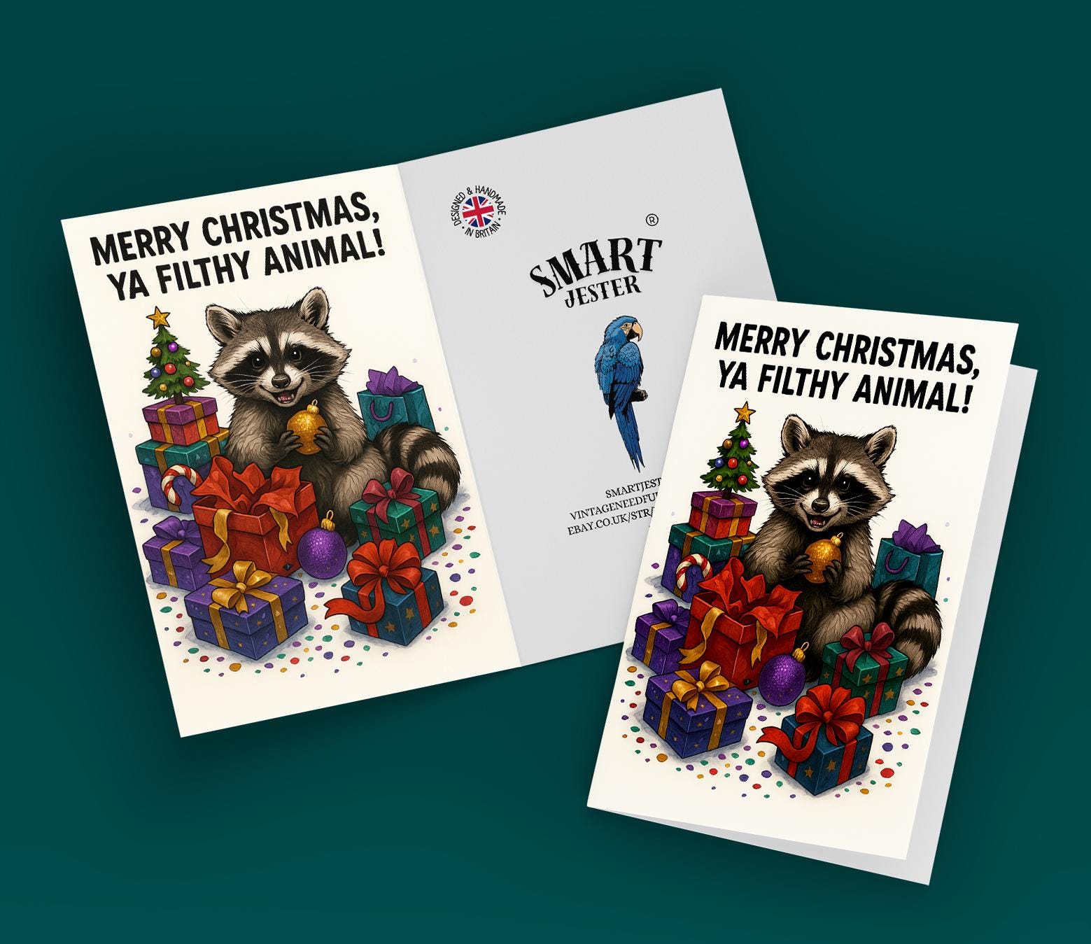 BLANK INTERIOR FOR A PERSONAL TOUCH: Festive Gift Bandit Raccoon - Merry Christmas, Ya Filthy Animal! Card and other whimsical designs feature a blank interior, giving you ample space to write a personal message from the heart. Perfect for any occasion, each card comes with a matching white envelope, making it easy to send your unique sentiments to loved ones.