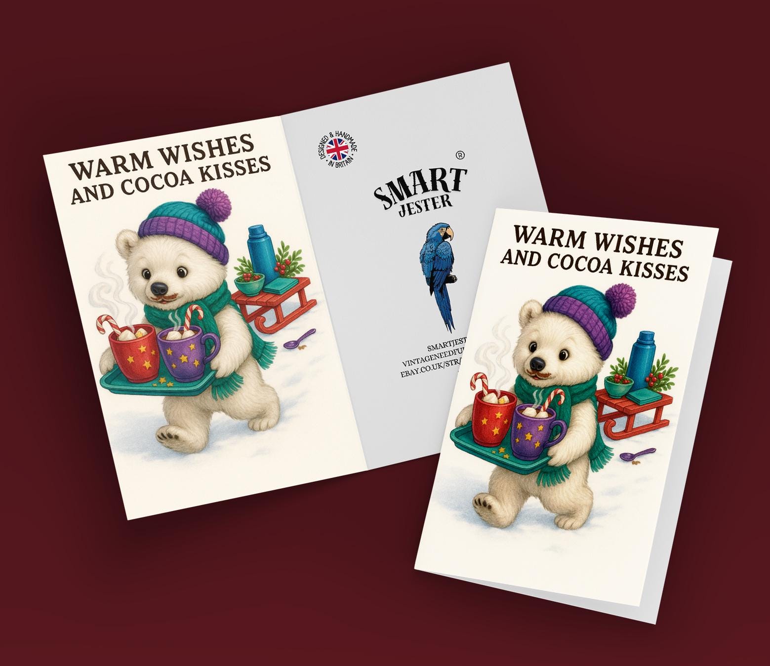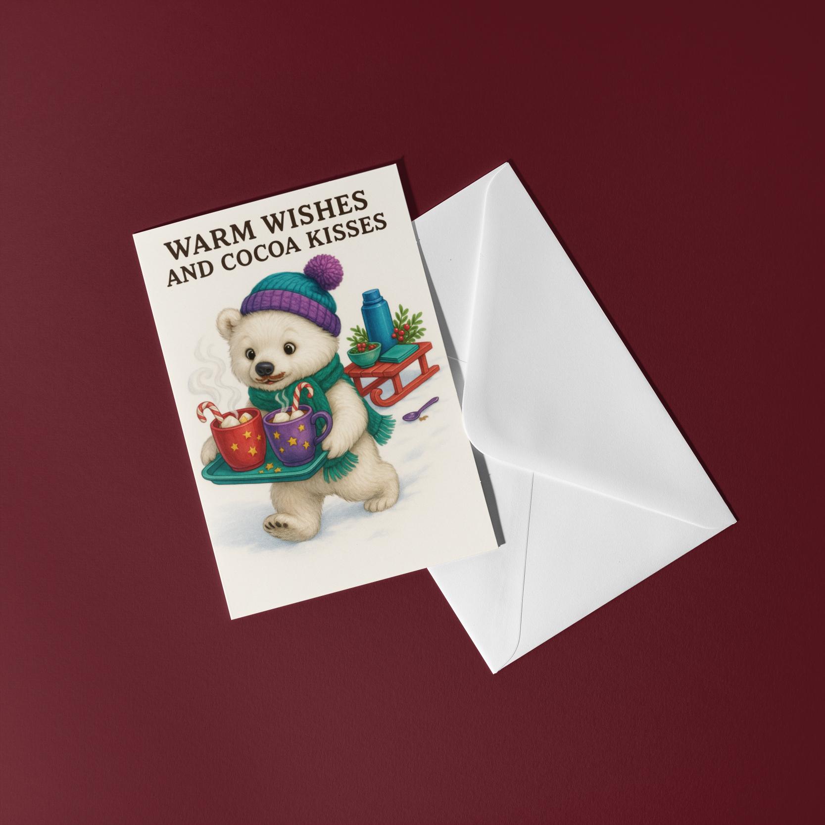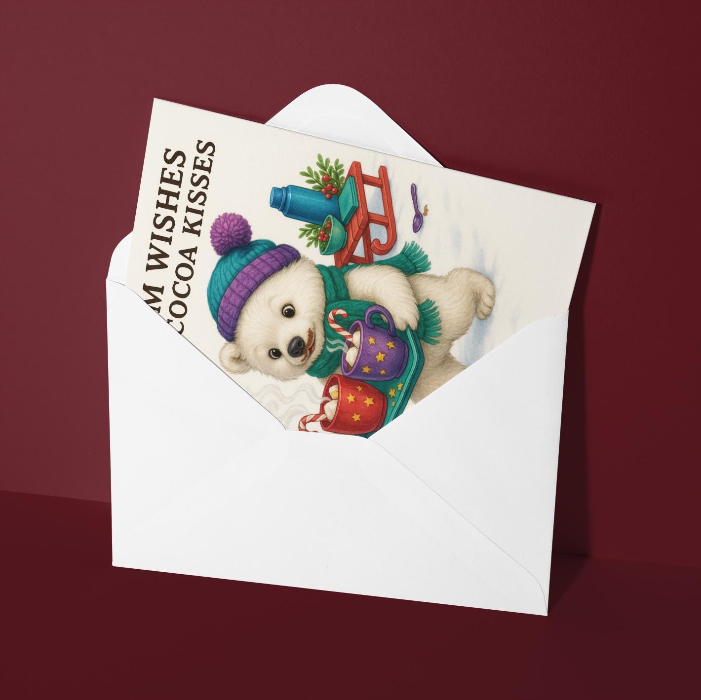 BLANK INTERIOR FOR A PERSONAL TOUCH: Cocoa Kisses Bear - Warm Wishes and Cocoa Kisses - Christmas Card and other whimsical designs feature a blank interior, giving you ample space to write a personal message from the heart. Perfect for any occasion, each card comes with a matching white envelope, making it easy to send your unique sentiments to loved ones.
