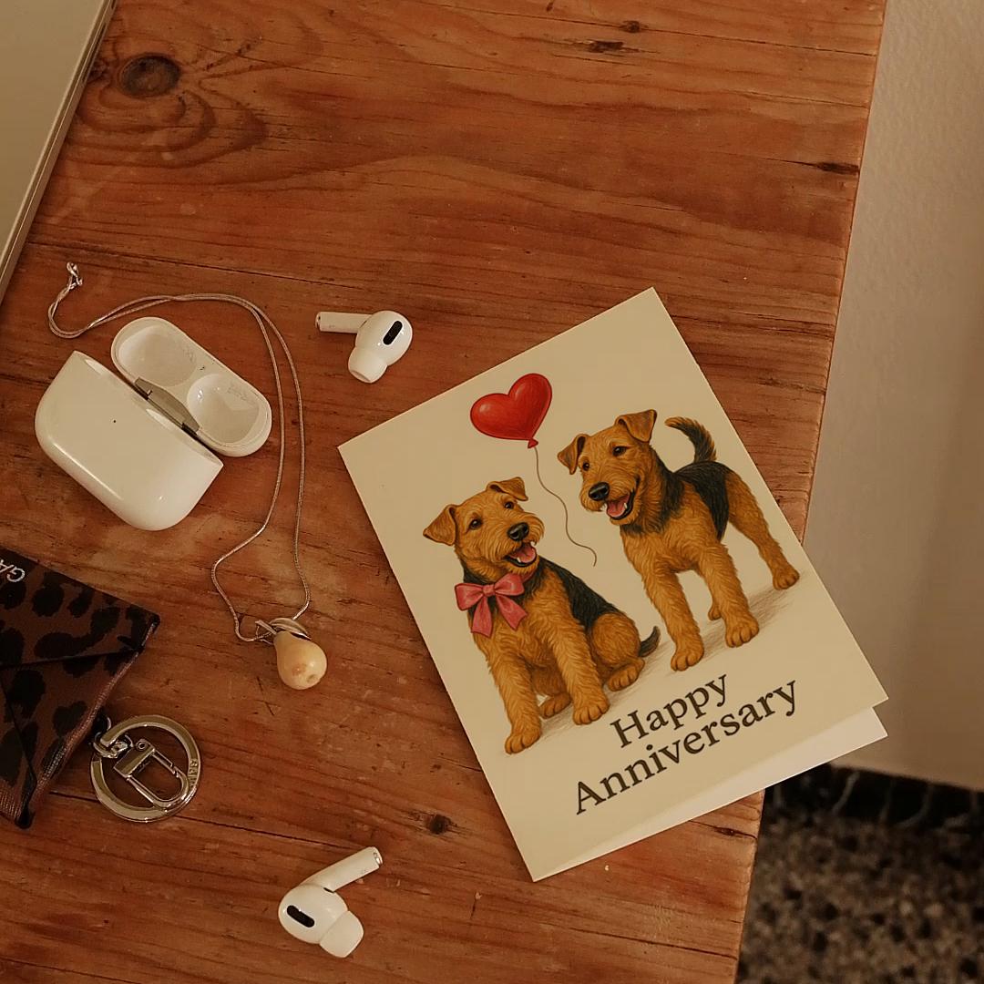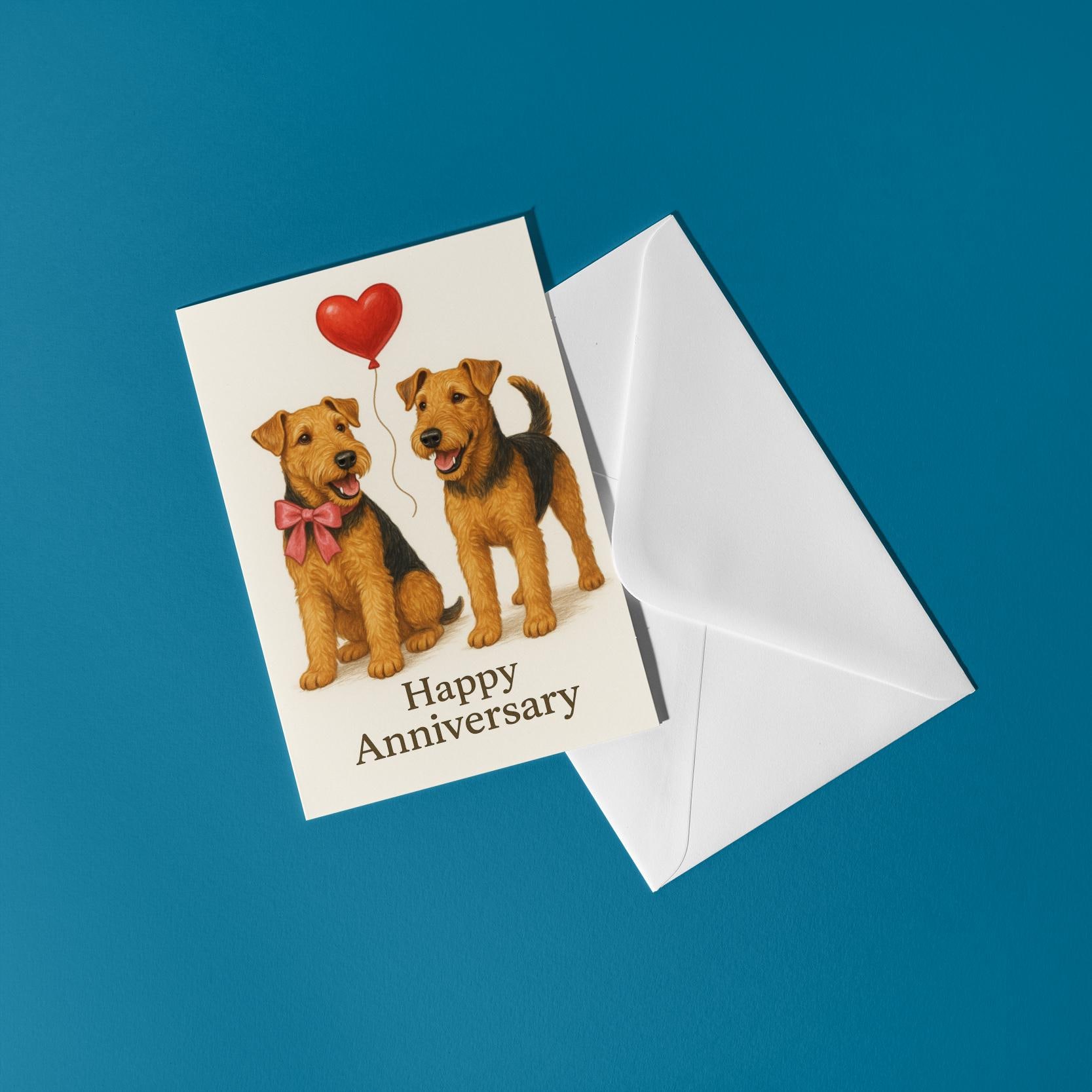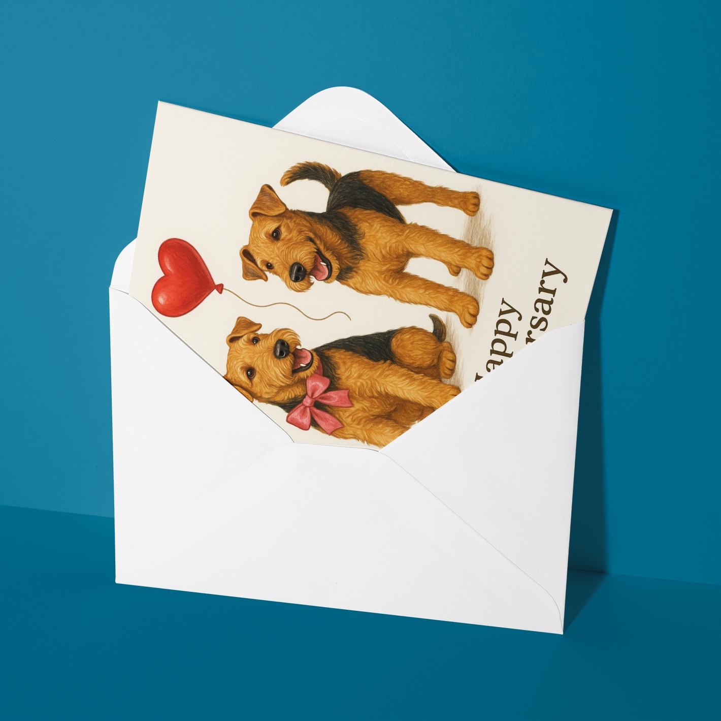 BLANK INTERIOR FOR A PERSONAL TOUCH: Our Dog Breeds Collection - Airedale Terrier Dogs Duo - Anniversary Card and other whimsical designs feature a blank interior, giving you ample space to write a personal message from the heart. Perfect for any occasion, each card comes with a matching white envelope, making it easy to send your unique sentiments to loved ones.