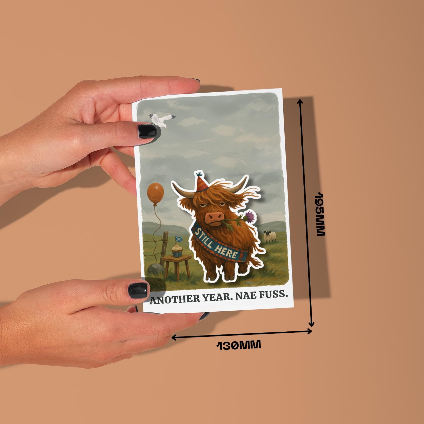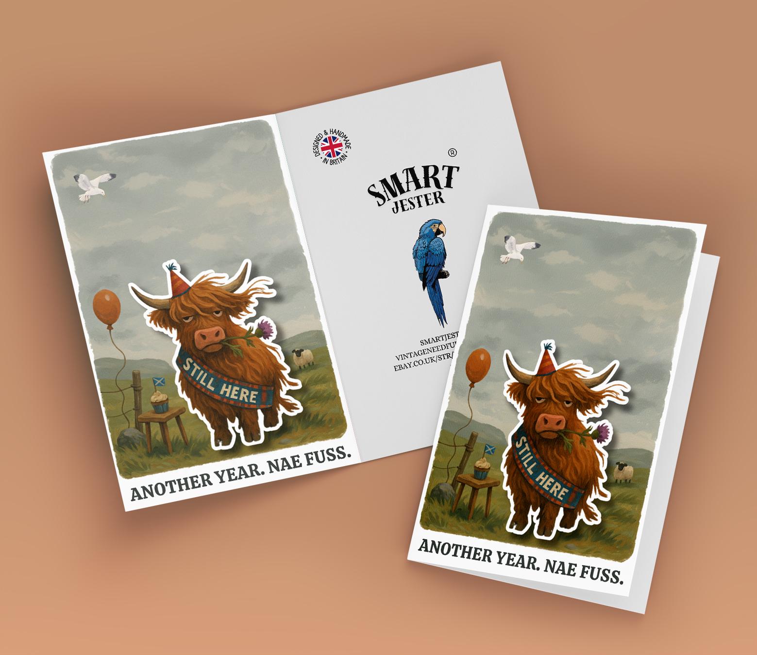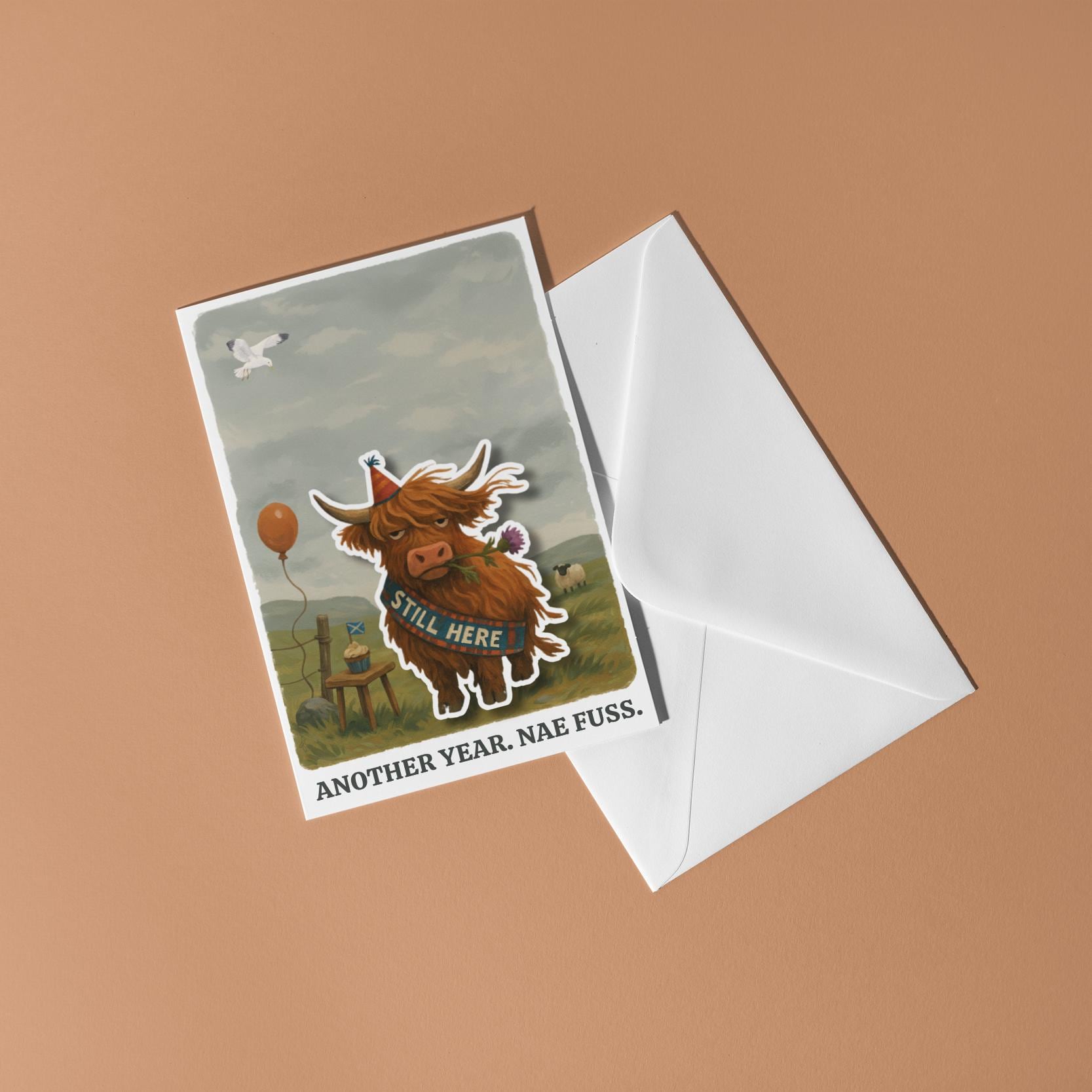 BLANK INTERIOR FOR A PERSONAL TOUCH: Part of the - Scottish collection - Pop Pets and Animals Collection – Highland Cow - Scottish Cow - Another year. Nae Fuss - Birthday - card and other whimsical designs feature a blank interior, giving you ample space to write (front or inside) a personal message from the heart. Perfect for any occasion, each card comes with a matching white envelope, making it easy to send your unique sentiments to loved ones.