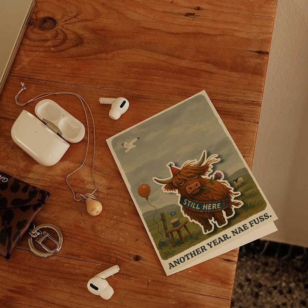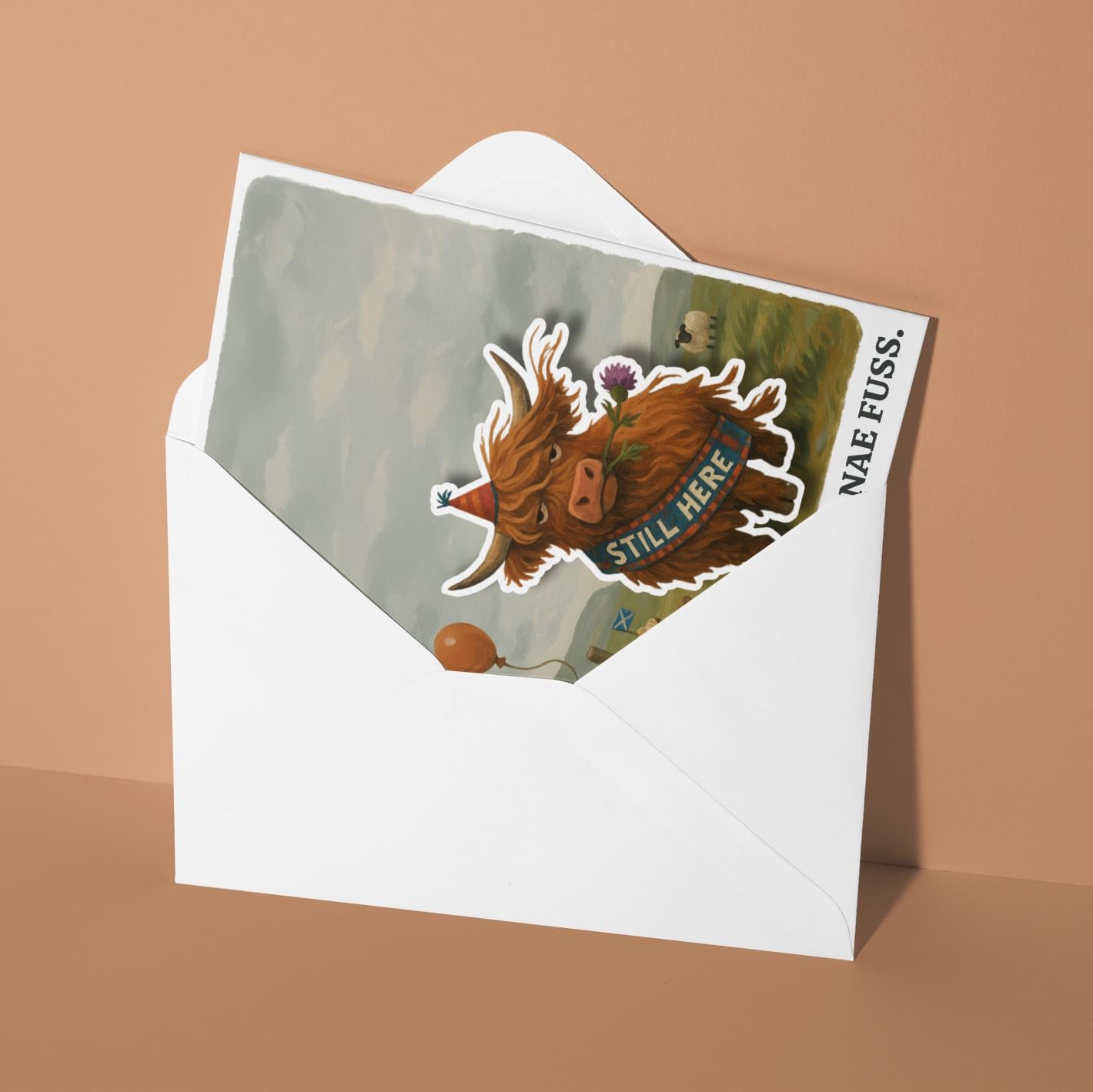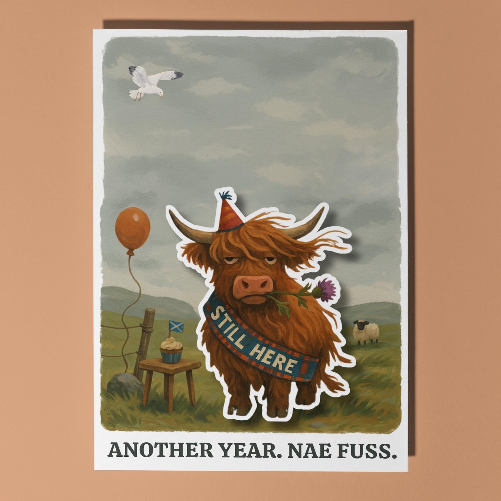 BLANK INTERIOR FOR A PERSONAL TOUCH: Part of the - Scottish collection - Pop Pets and Animals Collection – Highland Cow - Scottish Cow - Another year. Nae Fuss - Birthday - card and other whimsical designs feature a blank interior, giving you ample space to write (front or inside) a personal message from the heart. Perfect for any occasion, each card comes with a matching white envelope, making it easy to send your unique sentiments to loved ones.