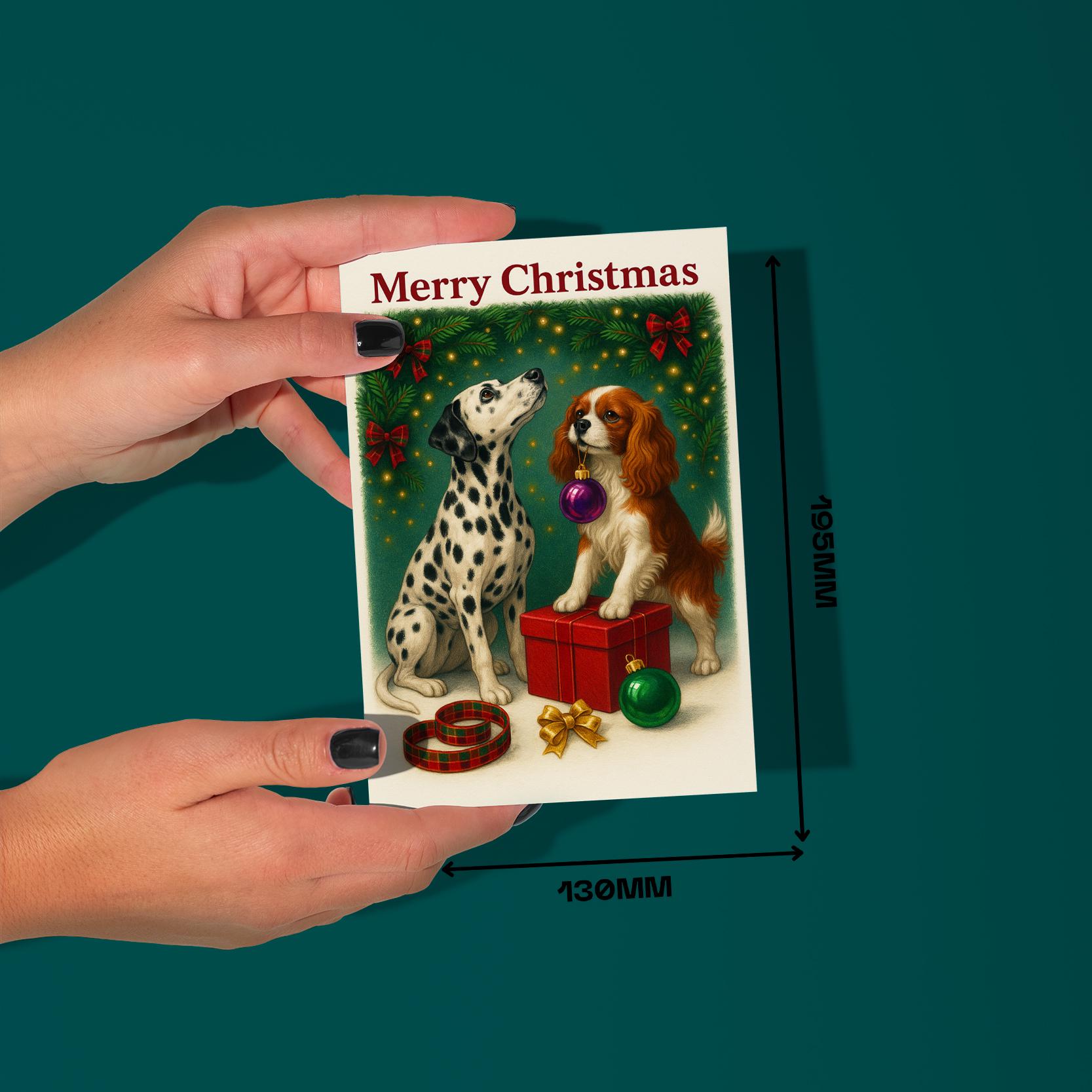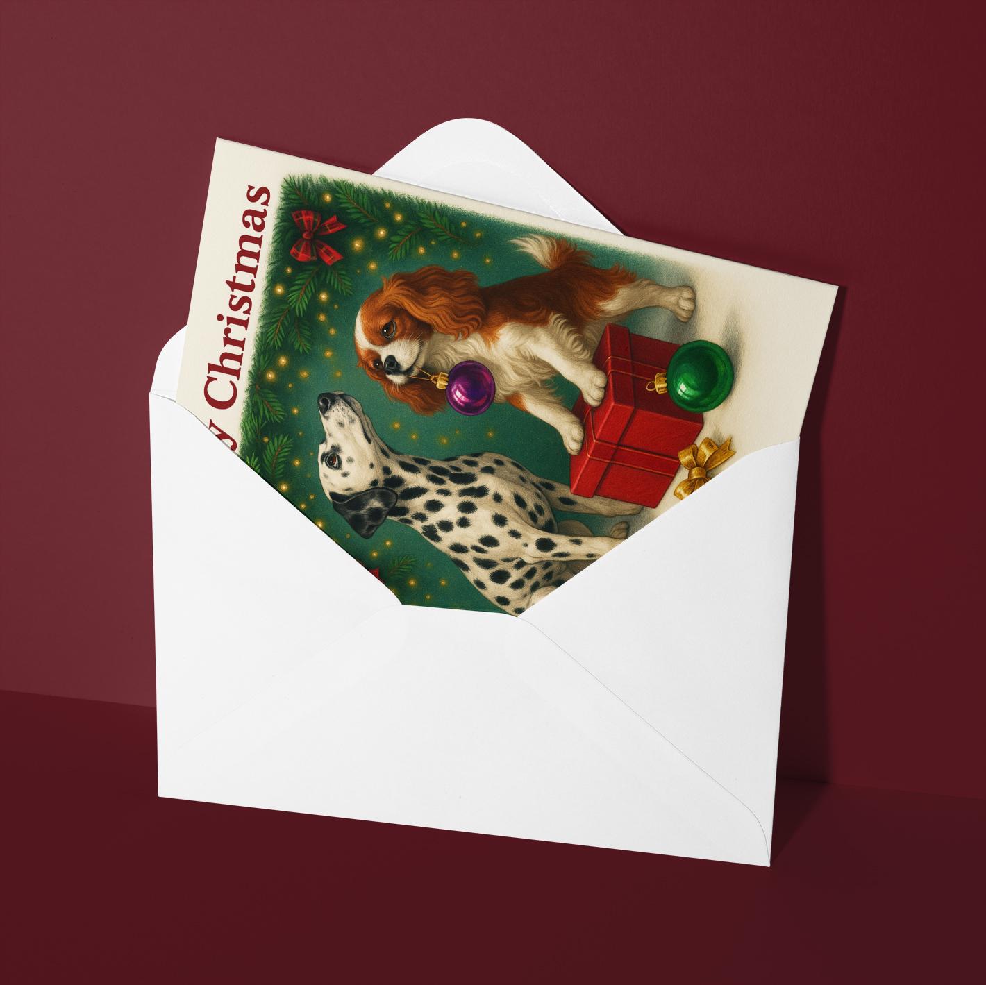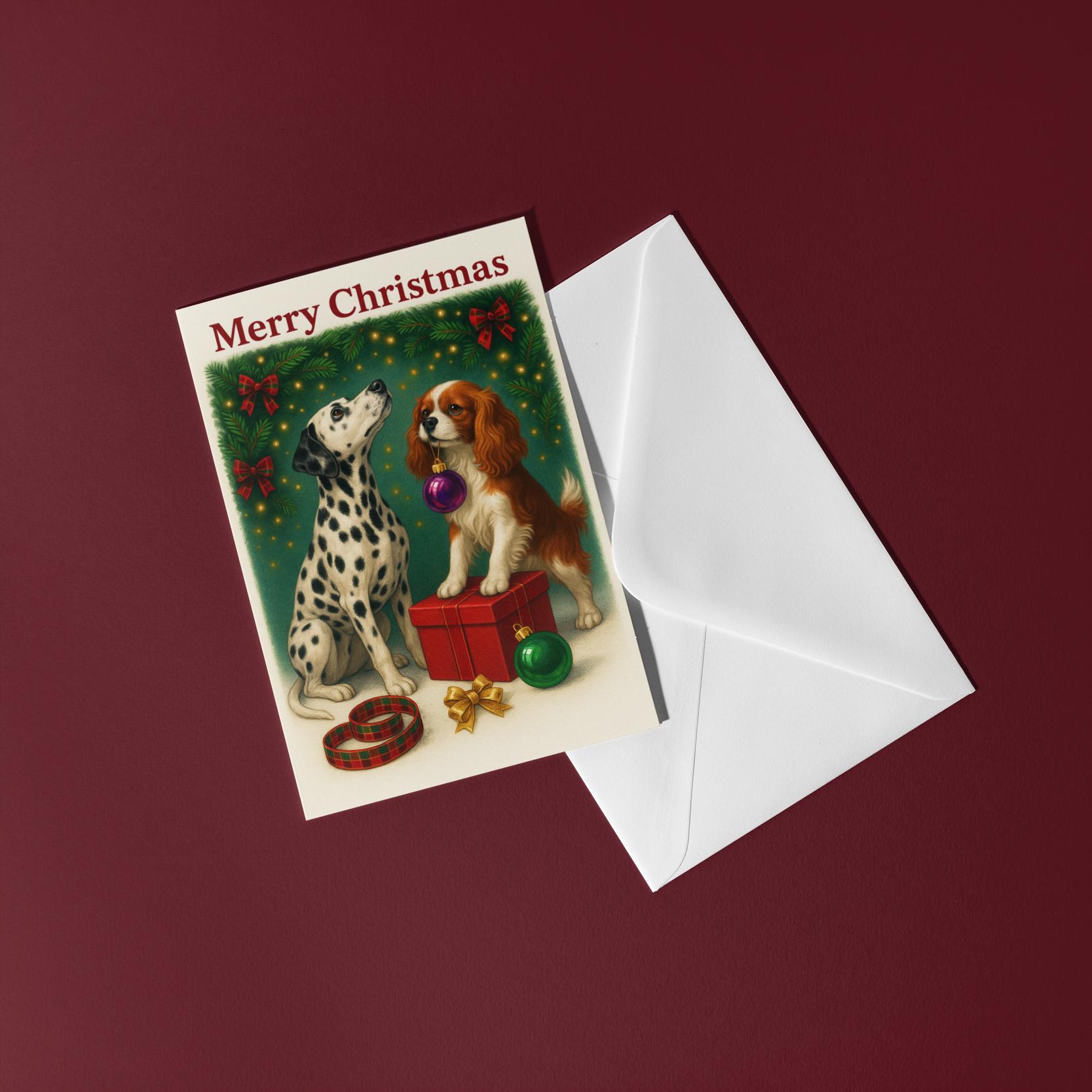 BLANK INTERIOR FOR A PERSONAL TOUCH: Part of the - Dog Breeds Collection - Santa’s Helpers Collection - Cavalier King Charles Spaniel And Dalmatian - Santas Best Pup Helpers - Merry Christmas! Card and other whimsical designs feature a blank interior, giving you ample space to write a personal message from the heart. Perfect for any occasion, each card comes with a matching white envelope, making it easy to send your unique sentiments to loved ones.