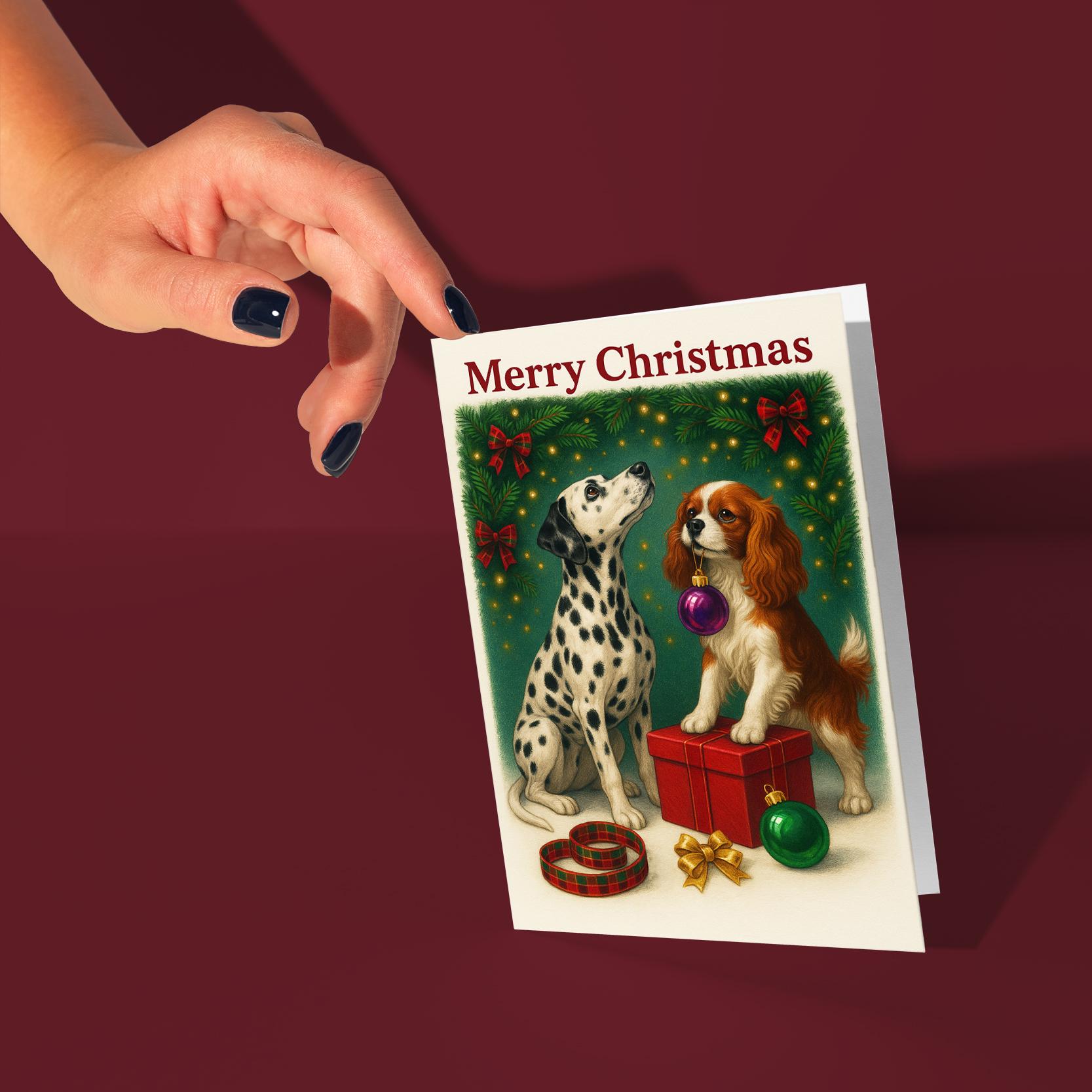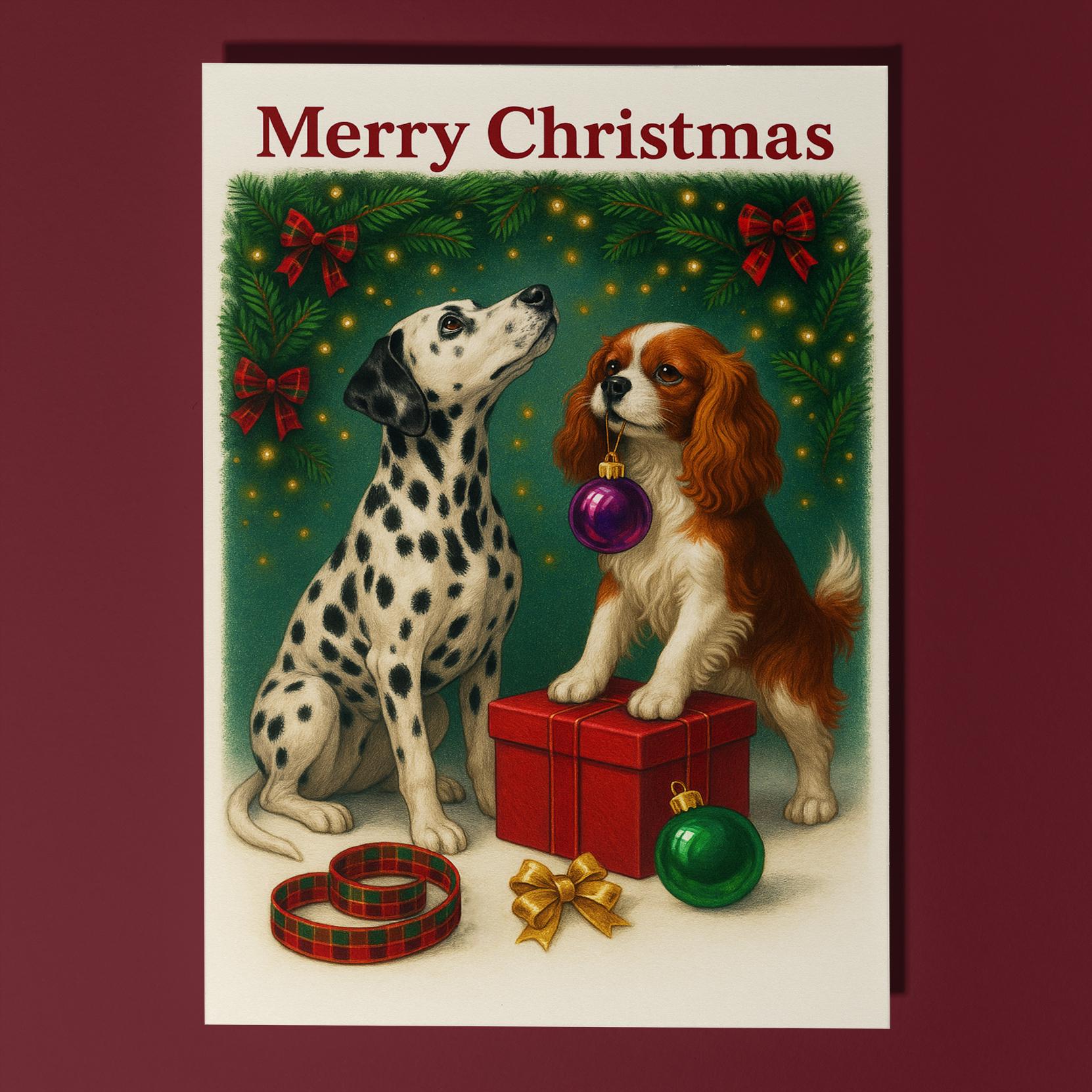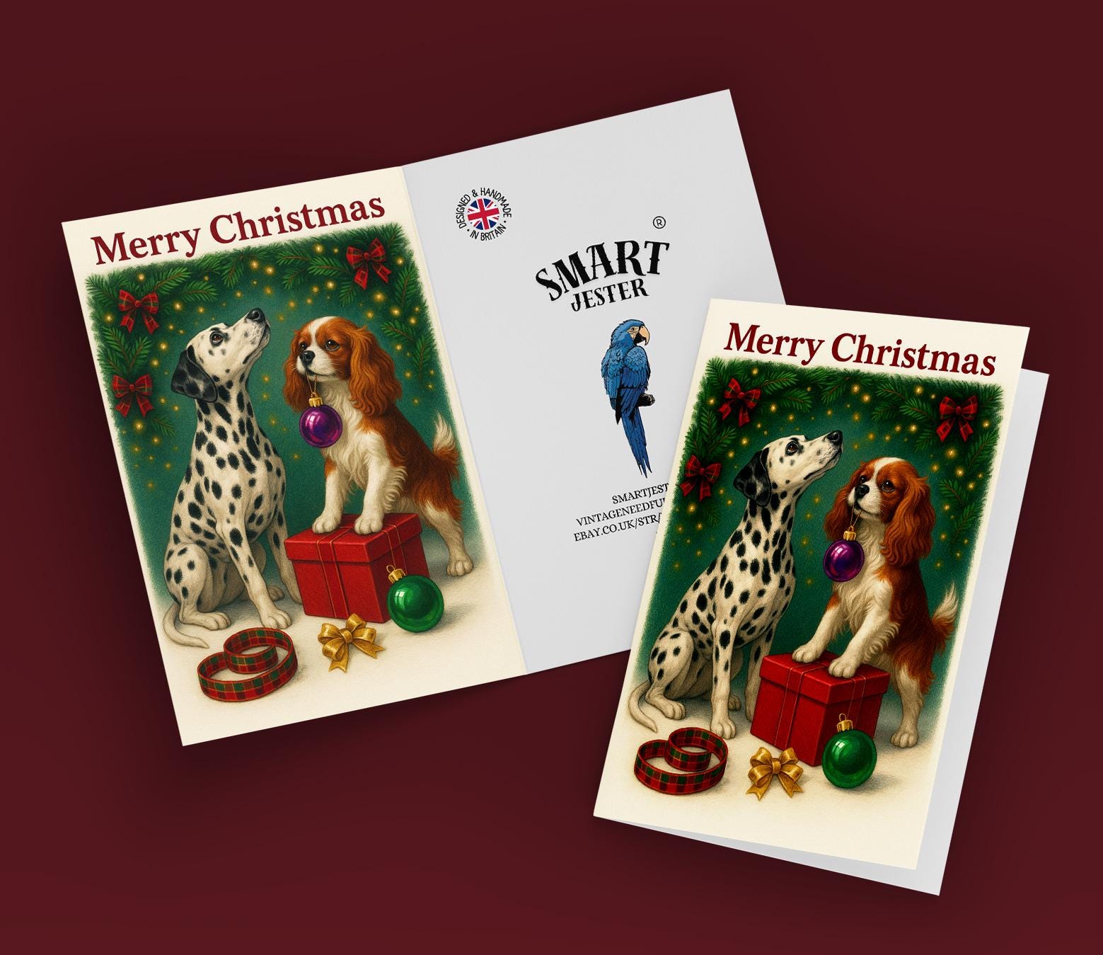 BLANK INTERIOR FOR A PERSONAL TOUCH: Part of the - Dog Breeds Collection - Santa’s Helpers Collection - Cavalier King Charles Spaniel And Dalmatian - Santas Best Pup Helpers - Merry Christmas! Card and other whimsical designs feature a blank interior, giving you ample space to write a personal message from the heart. Perfect for any occasion, each card comes with a matching white envelope, making it easy to send your unique sentiments to loved ones.