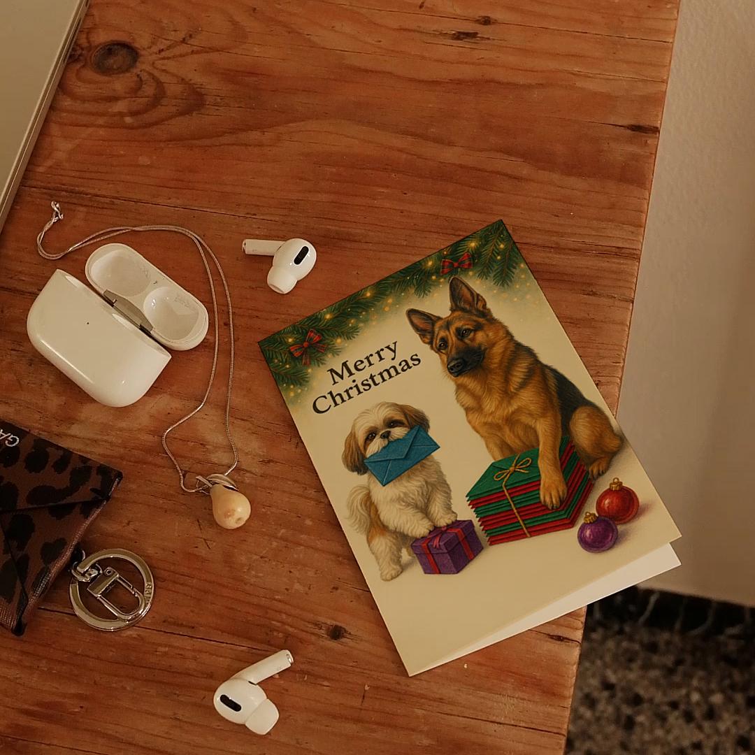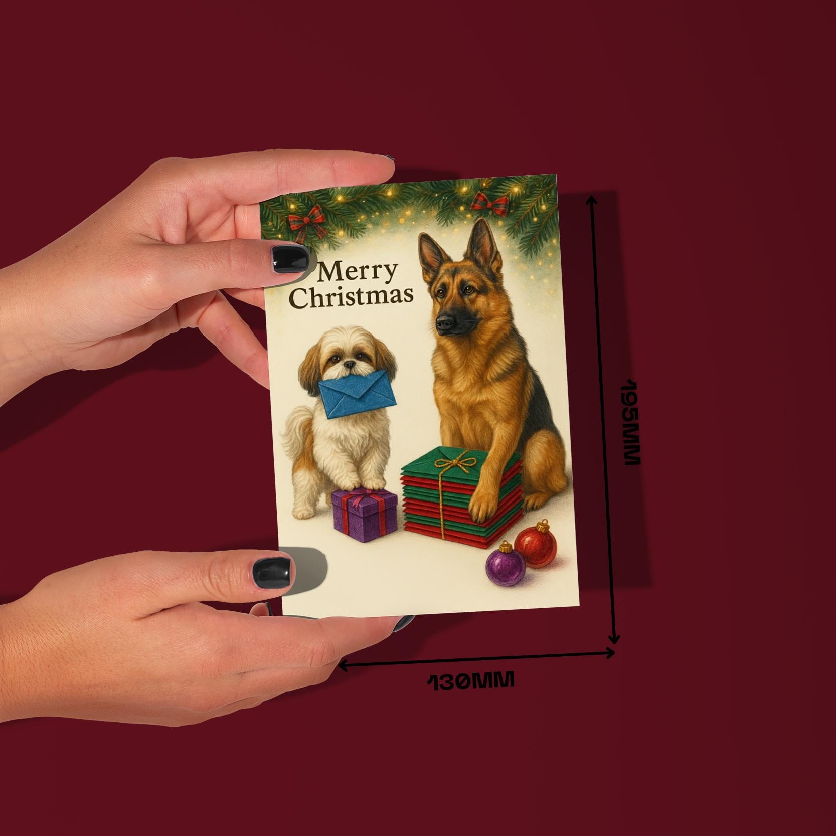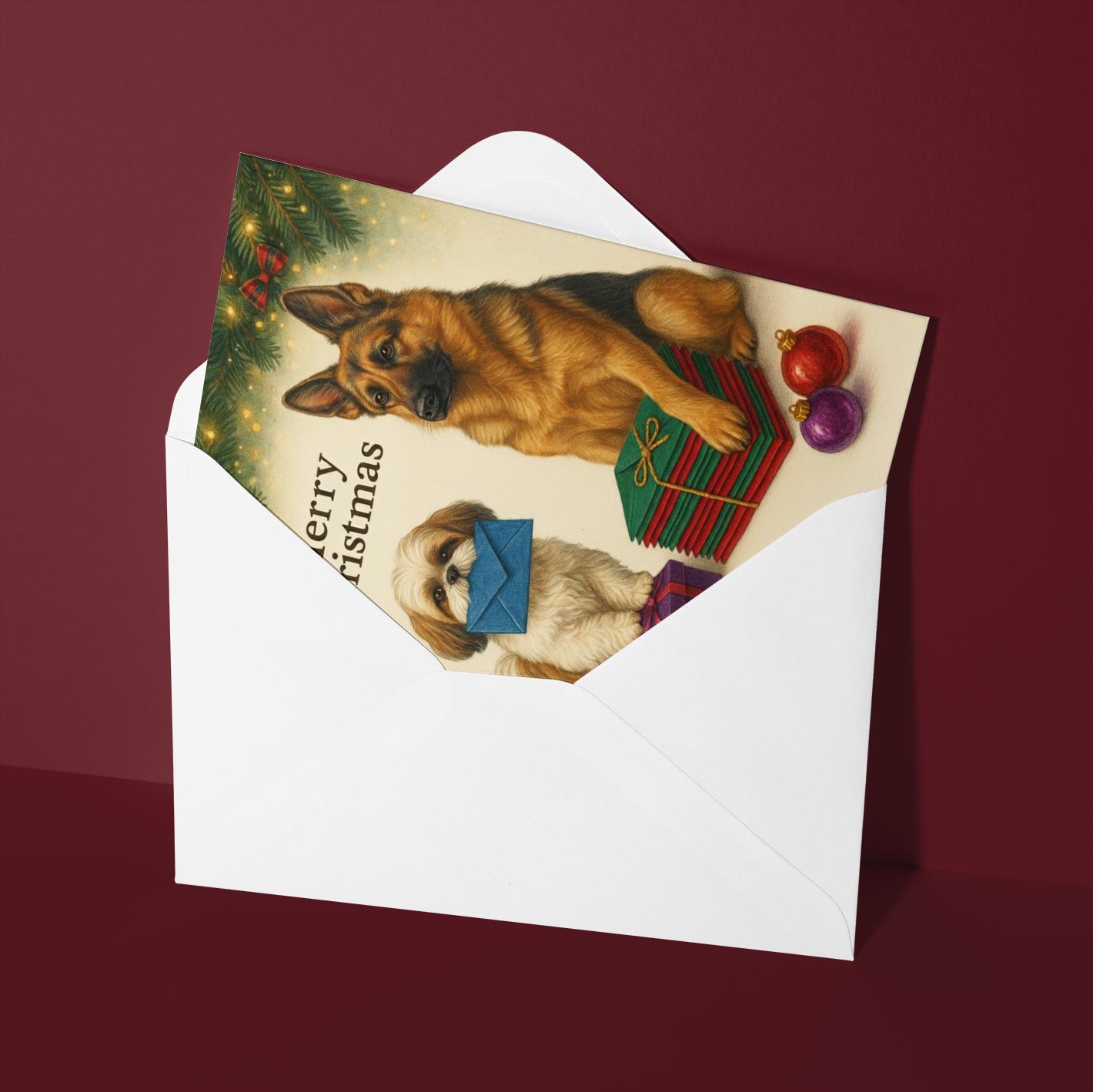 BLANK INTERIOR FOR A PERSONAL TOUCH: Part of the - Dog Breeds Collection - Santa’s Helpers Collection - German Shepherd and Shih Tzu Dogs Duo - Santas Best Pup Helpers - Merry Christmas! Card and other whimsical designs feature a blank interior, giving you ample space to write a personal message from the heart. Perfect for any occasion, each card comes with a matching white envelope, making it easy to send your unique sentiments to loved ones.