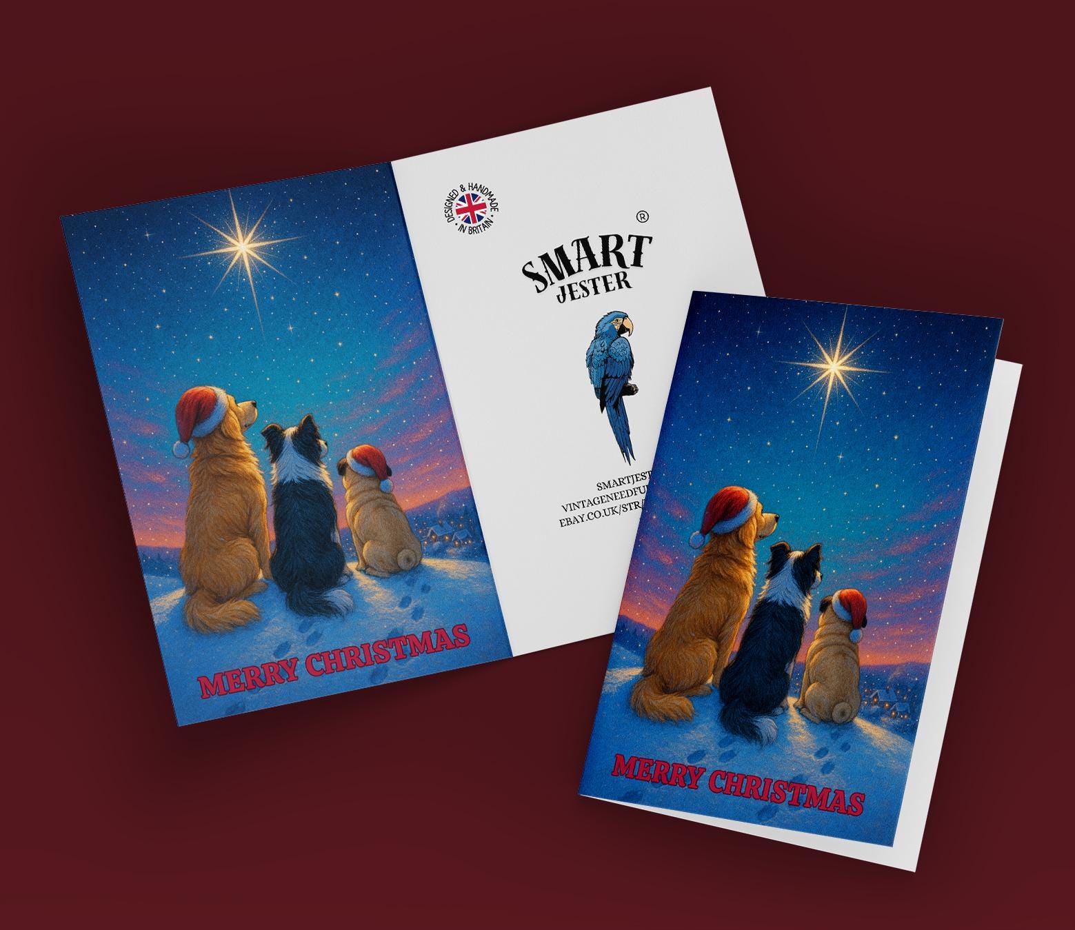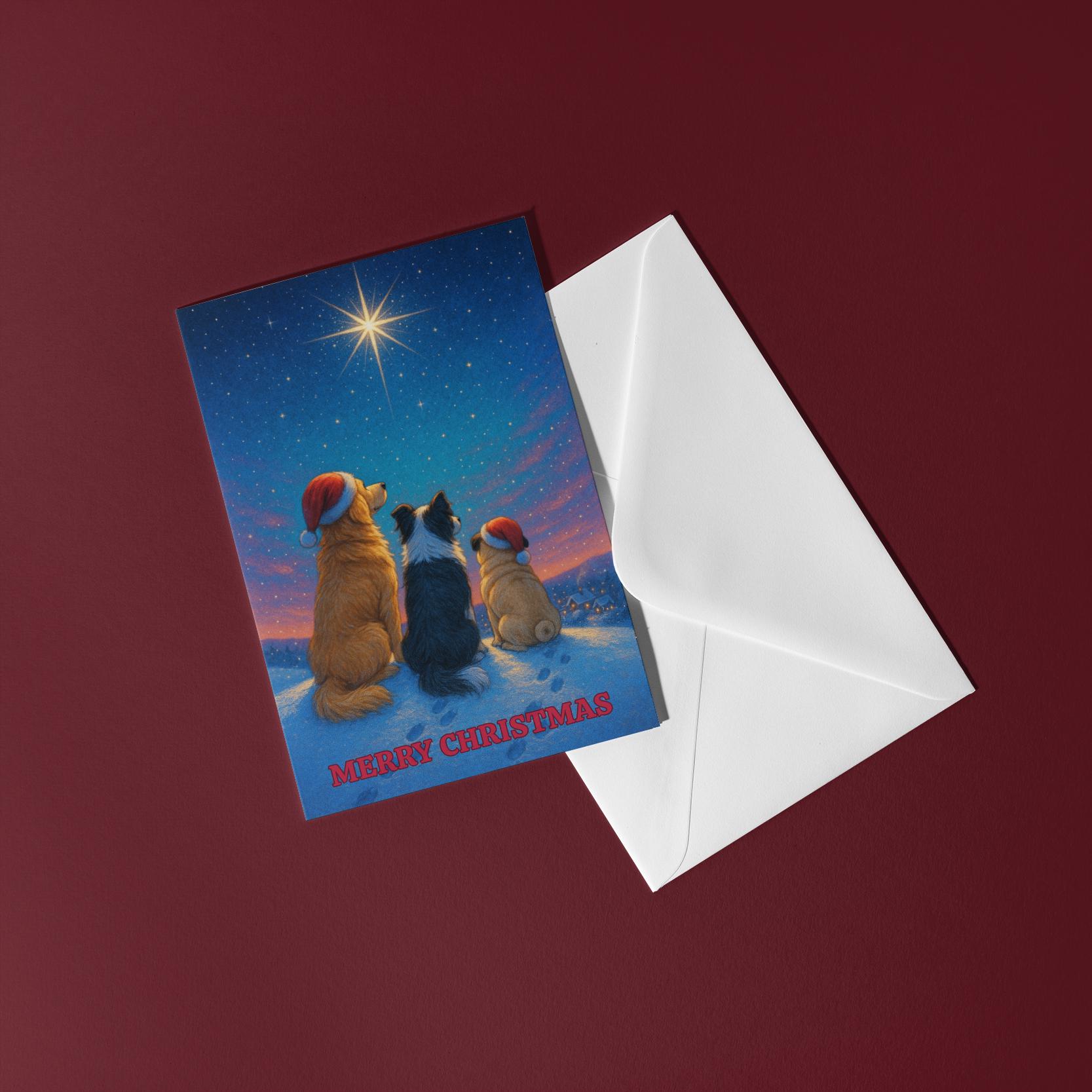 BLANK INTERIOR FOR A PERSONAL TOUCH: Part of the - Dog Breeds Collection - Santa’s Helpers Collection - Three Dogs One Star - Labrador and Border Collie and Pug - Merry Christmas! Card and other whimsical designs feature a blank interior, giving you ample space to write a personal message from the heart. Perfect for any occasion, each card comes with a matching white envelope, making it easy to send your unique sentiments to loved ones.