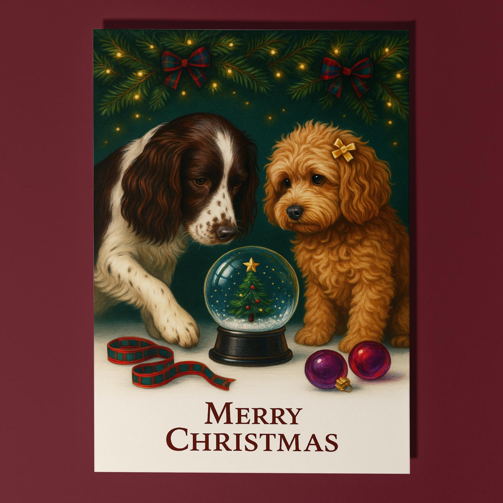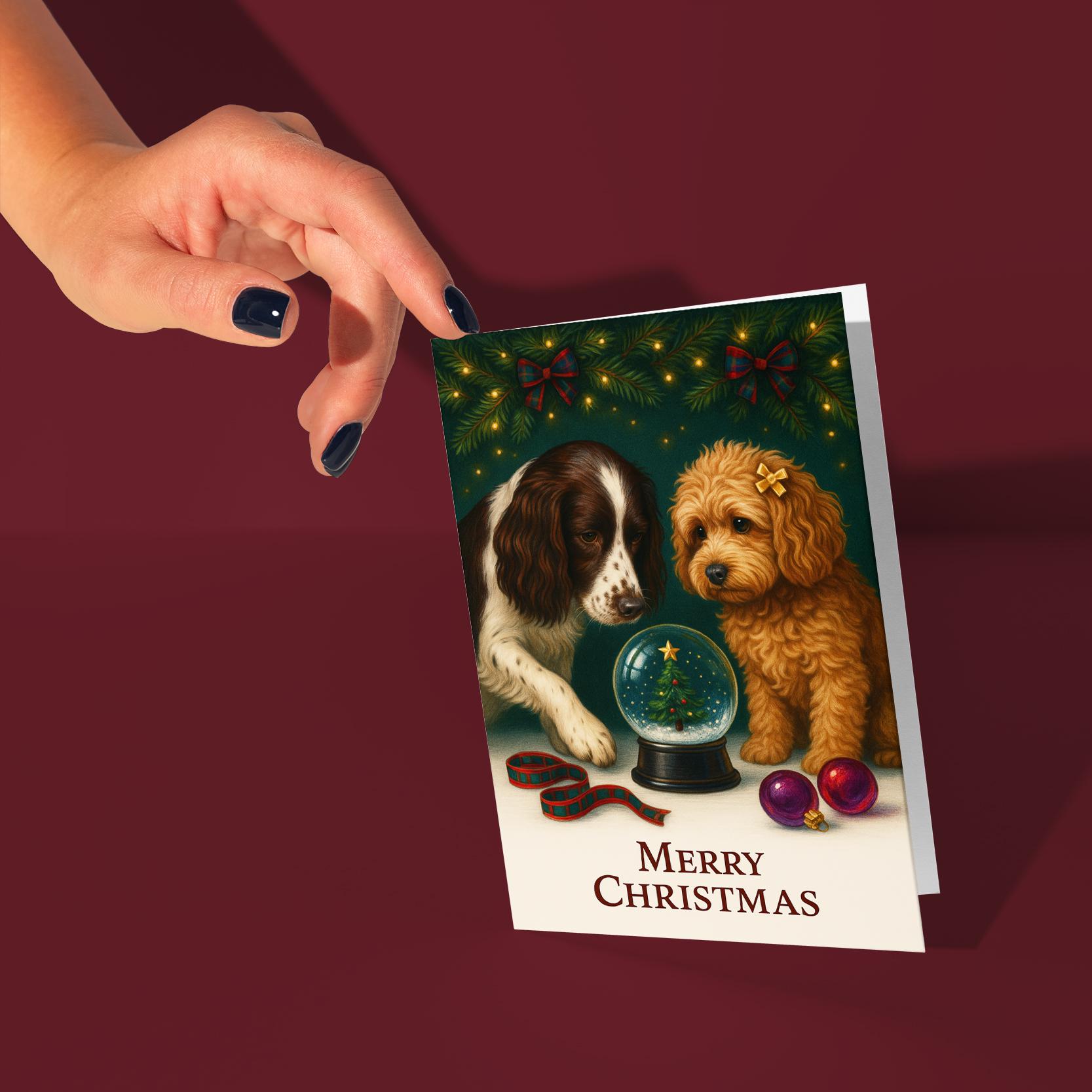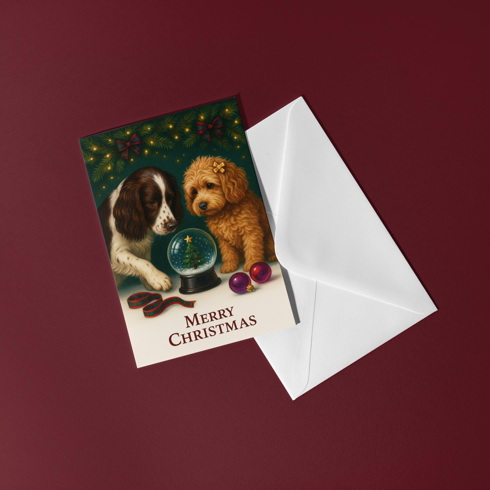 BLANK INTERIOR FOR A PERSONAL TOUCH: Part of the - Dog Breeds Collection - Santa’s Helpers Collection - Springer Spaniel and Cockapoo Dogs - Cozy Nose and Snow Globe - Merry Christmas! Card and other whimsical designs feature a blank interior, giving you ample space to write a personal message from the heart. Perfect for any occasion, each card comes with a matching white envelope, making it easy to send your unique sentiments to loved ones.