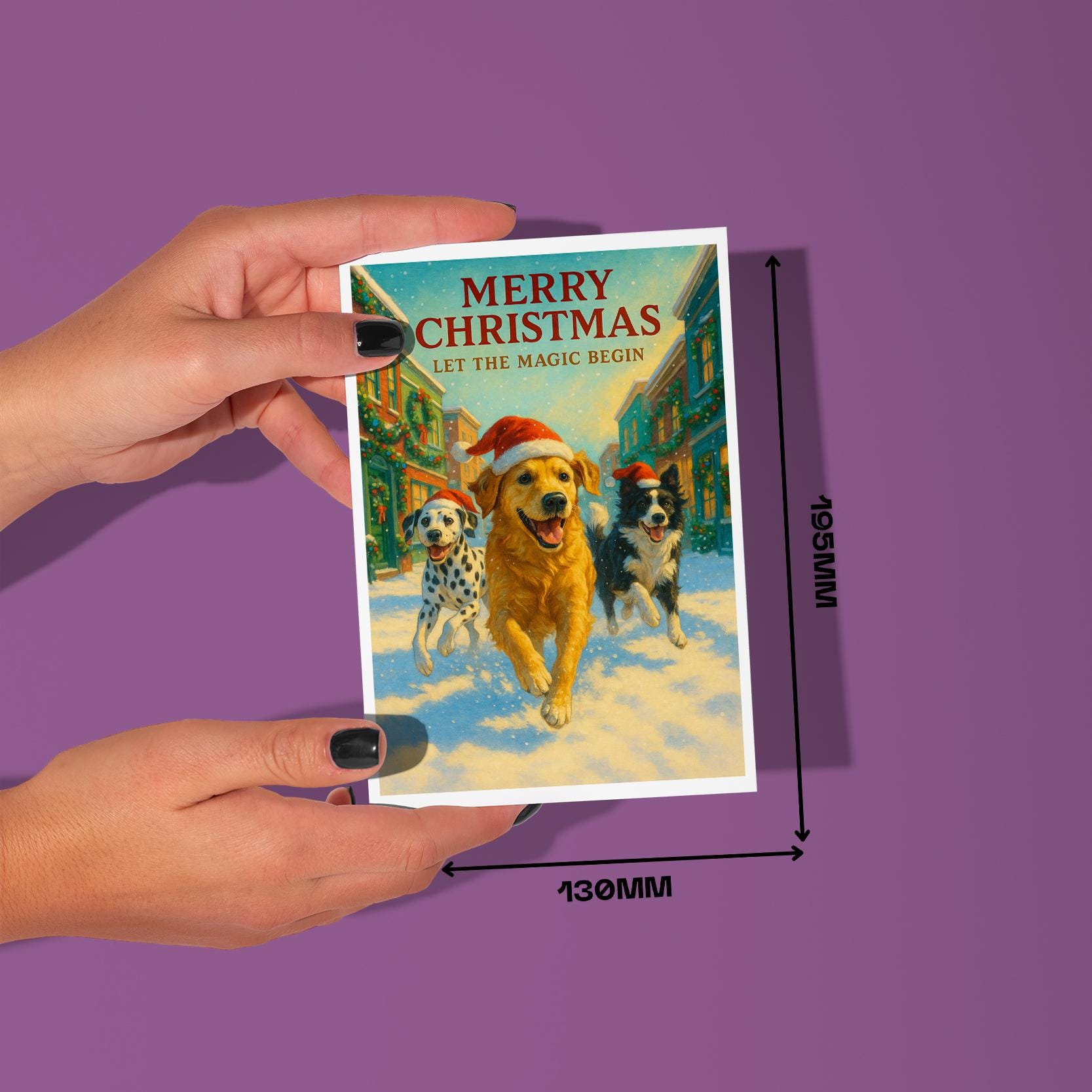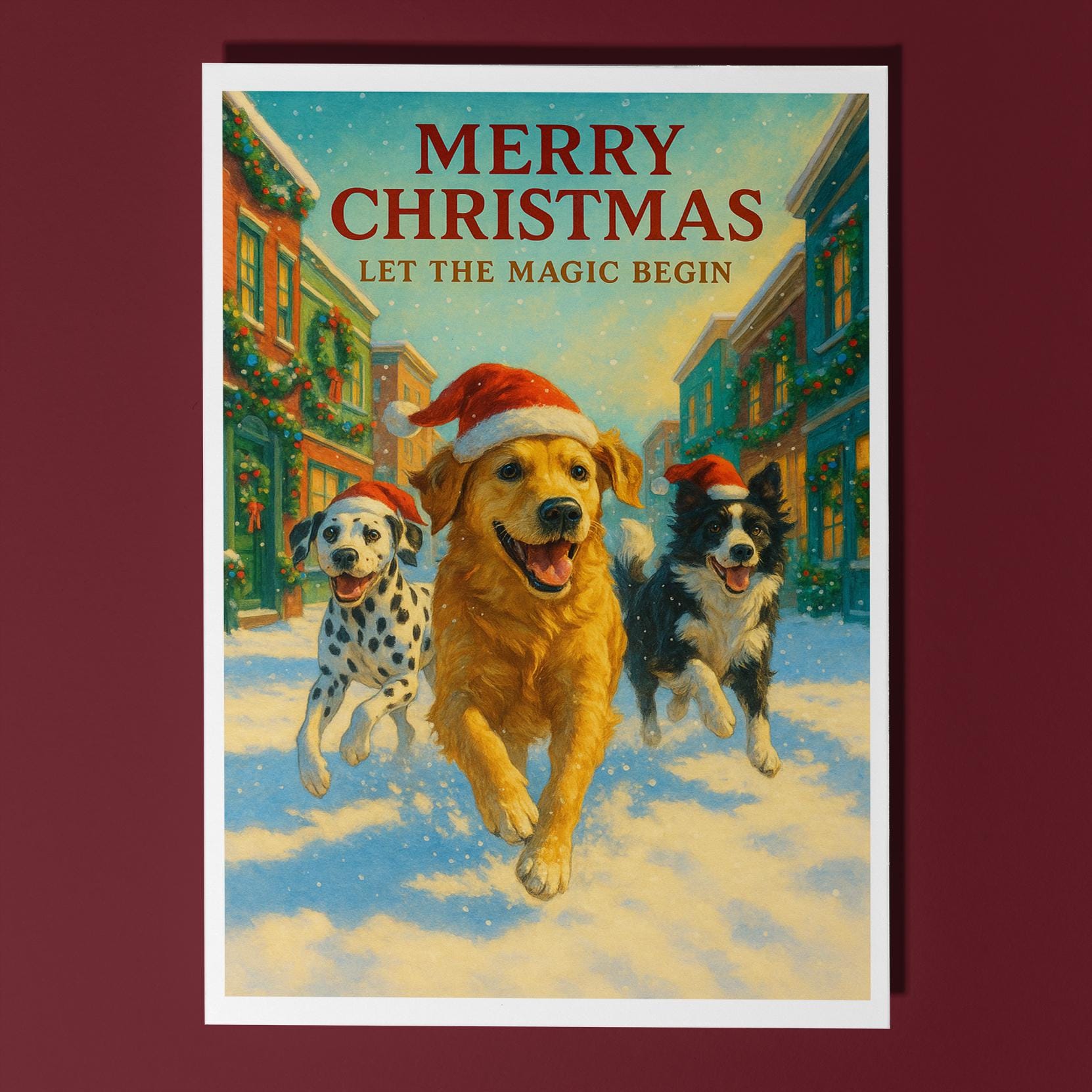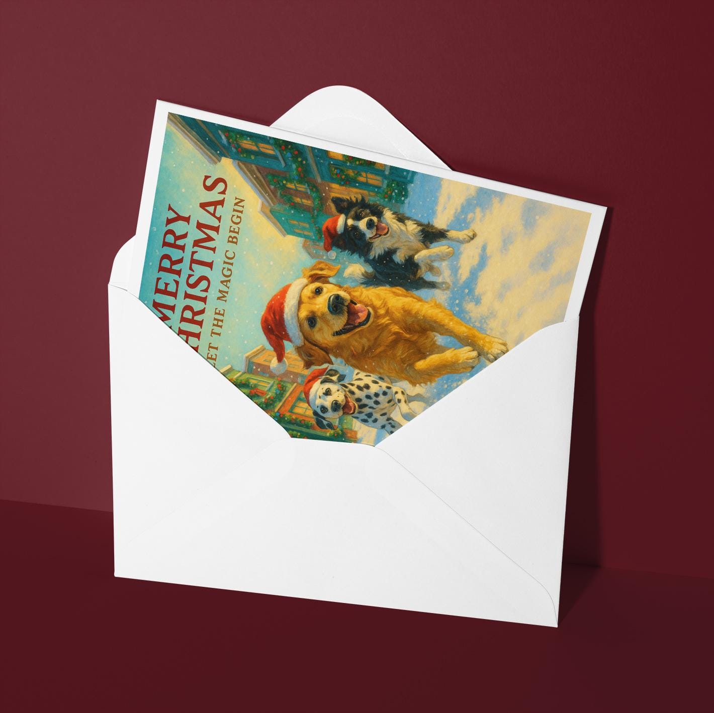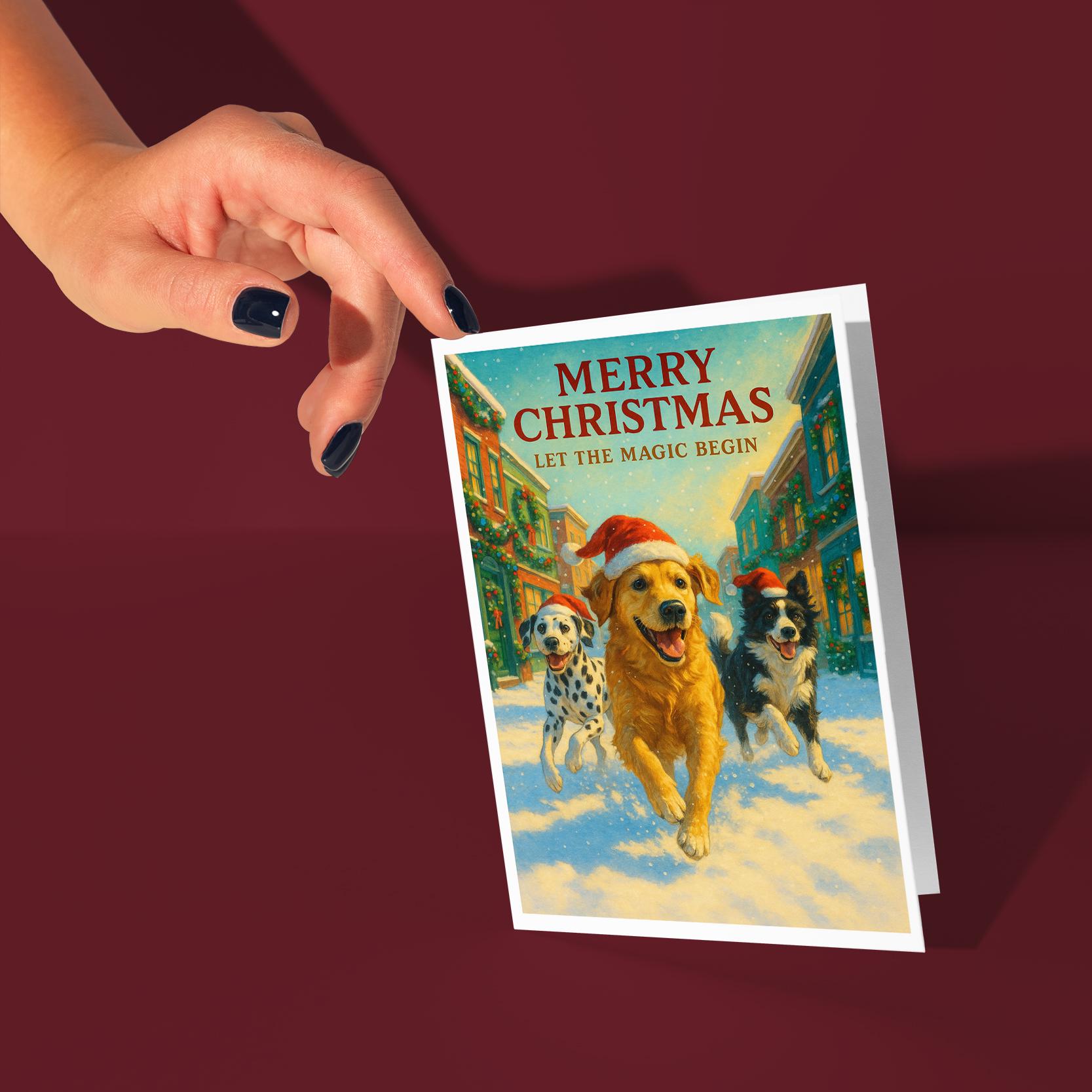 BLANK INTERIOR FOR A PERSONAL TOUCH: Part of the - Dog Breeds Collection - Santa’s Helpers Collection - Three Dogs One Joy - Golden Retriever Dalmatian and Border Collie running in Santa hats - Merry Christmas! Card and other whimsical designs feature a blank interior, giving you ample space to write a personal message from the heart. Perfect for any occasion, each card comes with a matching white envelope, making it easy to send your unique sentiments to loved ones.