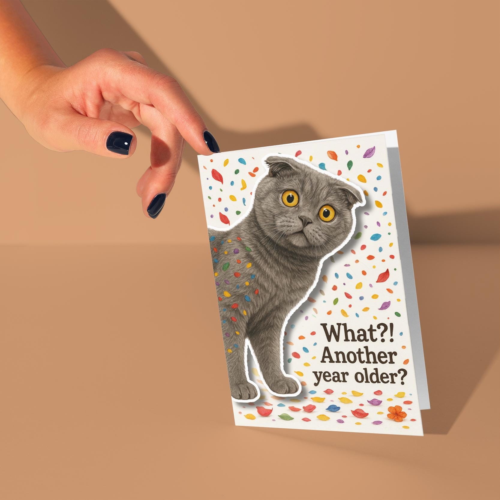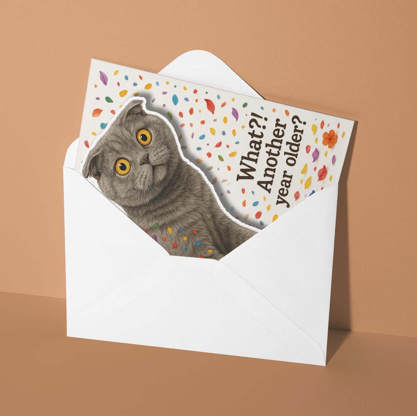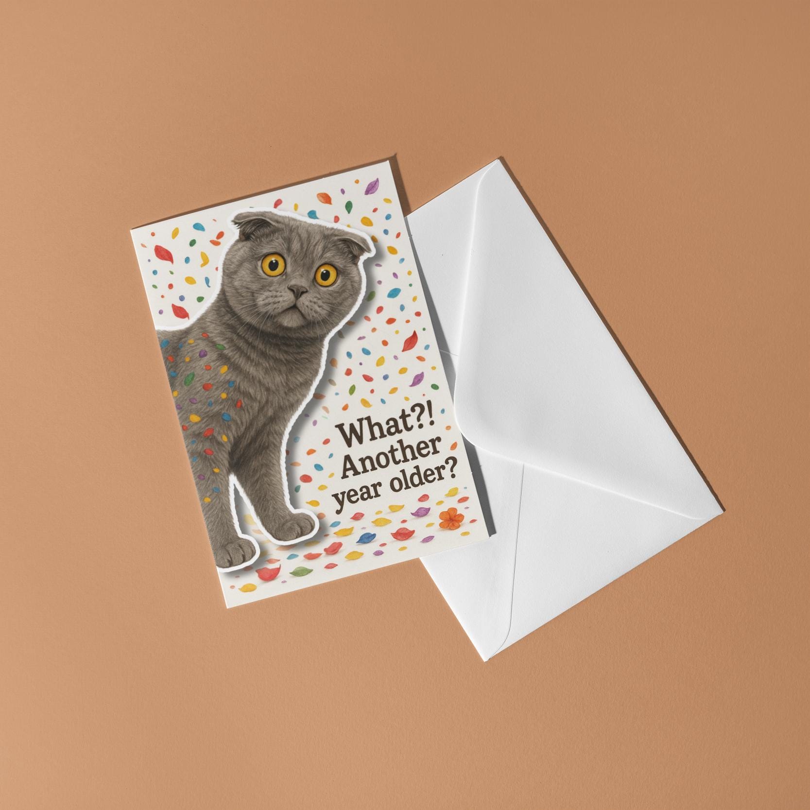 BLANK INTERIOR FOR A PERSONAL TOUCH: Part of the - Cat Breeds Collection - Pop Pets Collection – Don’t Look Away Collection – Scottish Fold Cat - What ?! Another year older? - and that “are you really going to eat that?” look - Happy Birthday! - card and other whimsical designs feature a blank interior, giving you ample space to write (front or inside) a personal message from the heart. Perfect for any occasion, each card comes with a matching white envelope, making it easy to send your unique sentiments to loved ones.