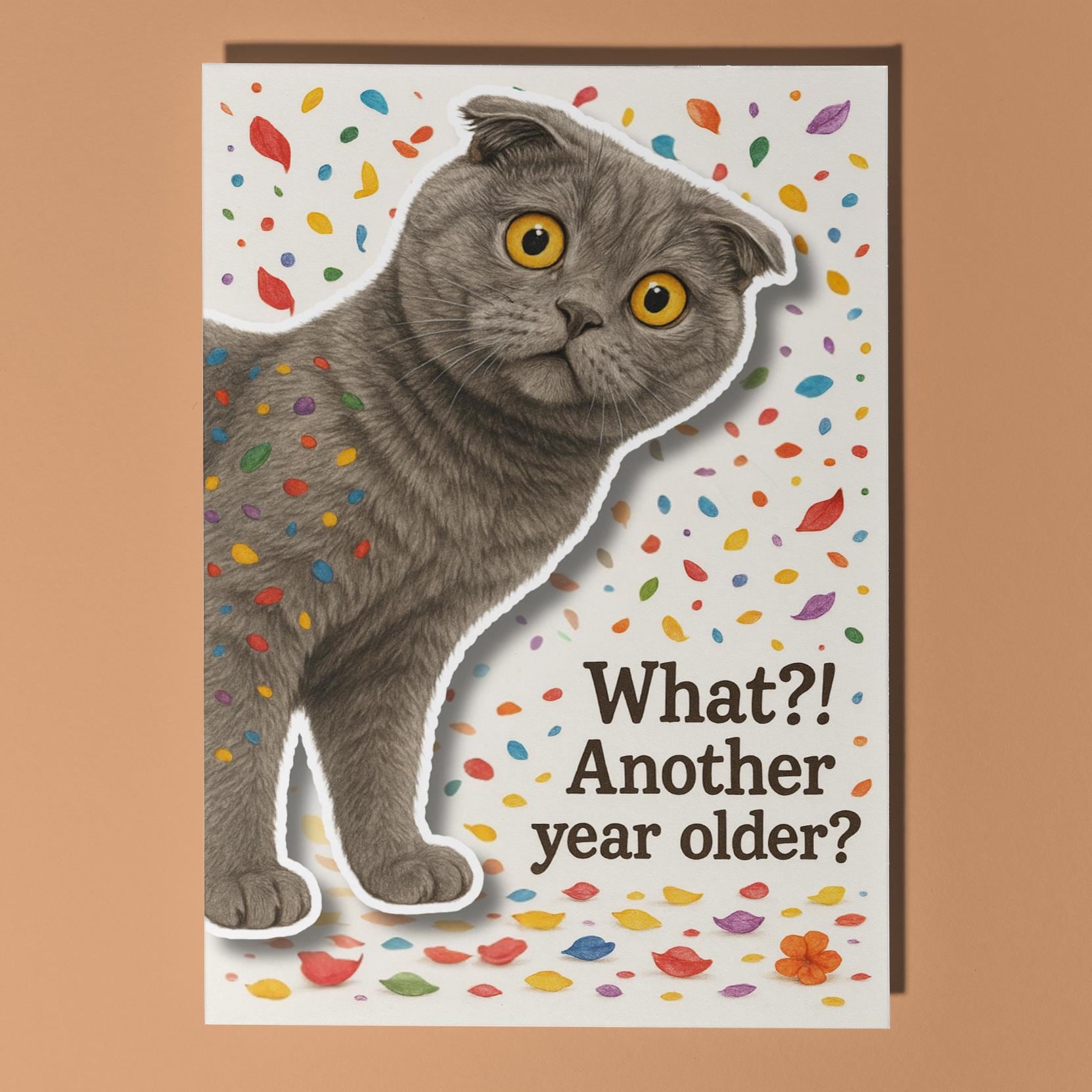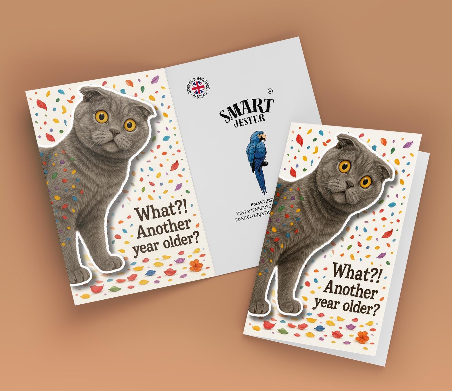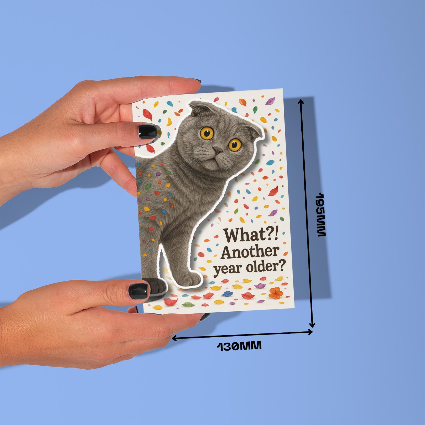 BLANK INTERIOR FOR A PERSONAL TOUCH: Part of the - Cat Breeds Collection - Pop Pets Collection – Don’t Look Away Collection – Scottish Fold Cat - What ?! Another year older? - and that “are you really going to eat that?” look - Happy Birthday! - card and other whimsical designs feature a blank interior, giving you ample space to write (front or inside) a personal message from the heart. Perfect for any occasion, each card comes with a matching white envelope, making it easy to send your unique sentiments to loved ones.