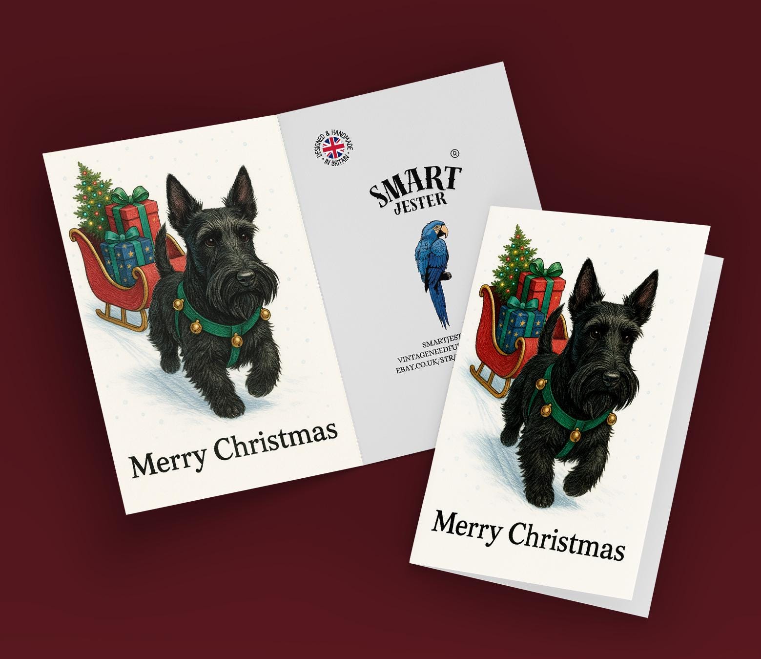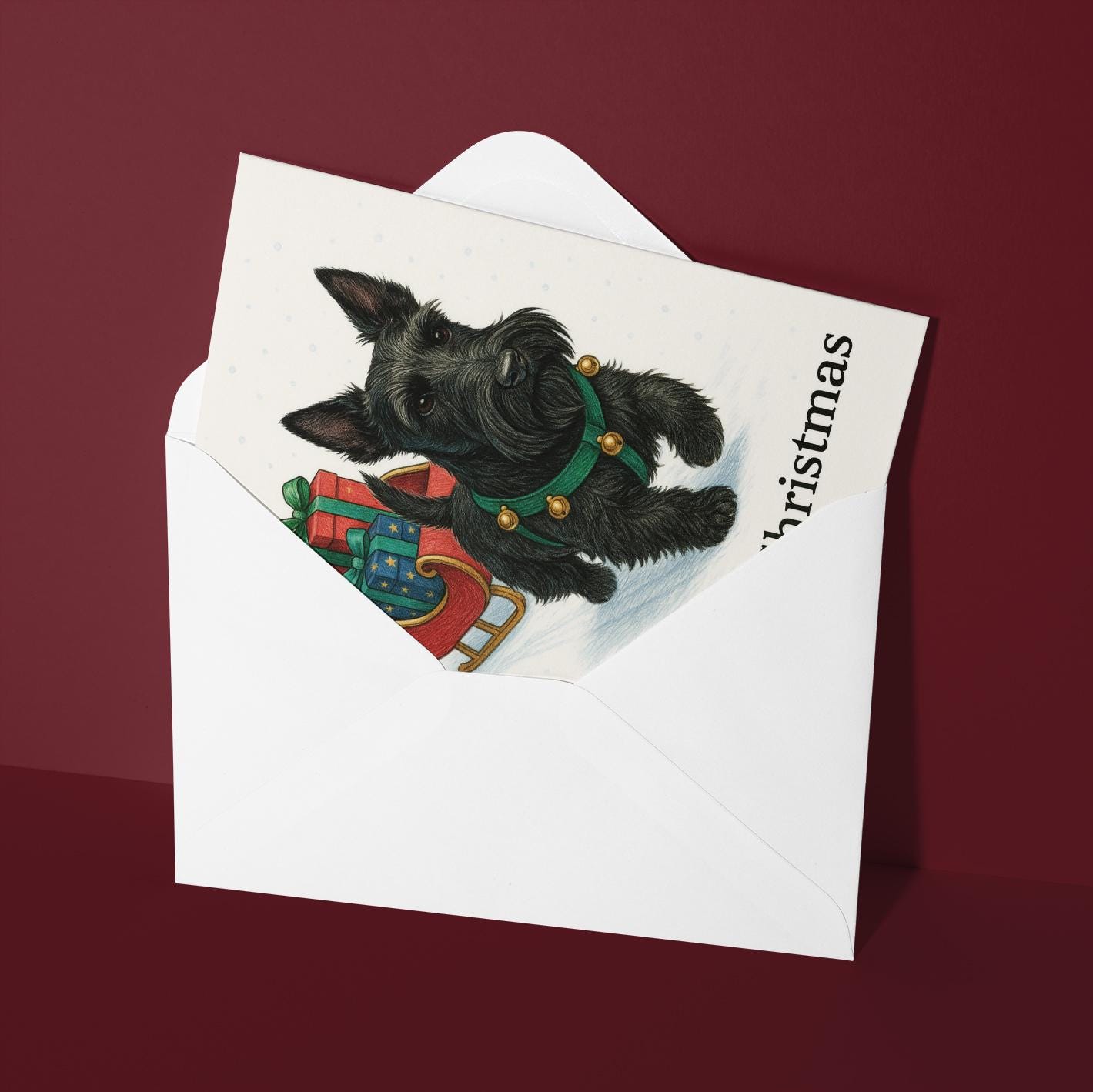 BLANK INTERIOR FOR A PERSONAL TOUCH: Part of the - Dog Breeds Collection - Santa’s Helpers Collection - Scottish Terrier Dog - Merry Christmas! Card and other whimsical designs feature a blank interior, giving you ample space to write a personal message from the heart. Perfect for any occasion, each card comes with a matching white envelope, making it easy to send your unique sentiments to loved ones.