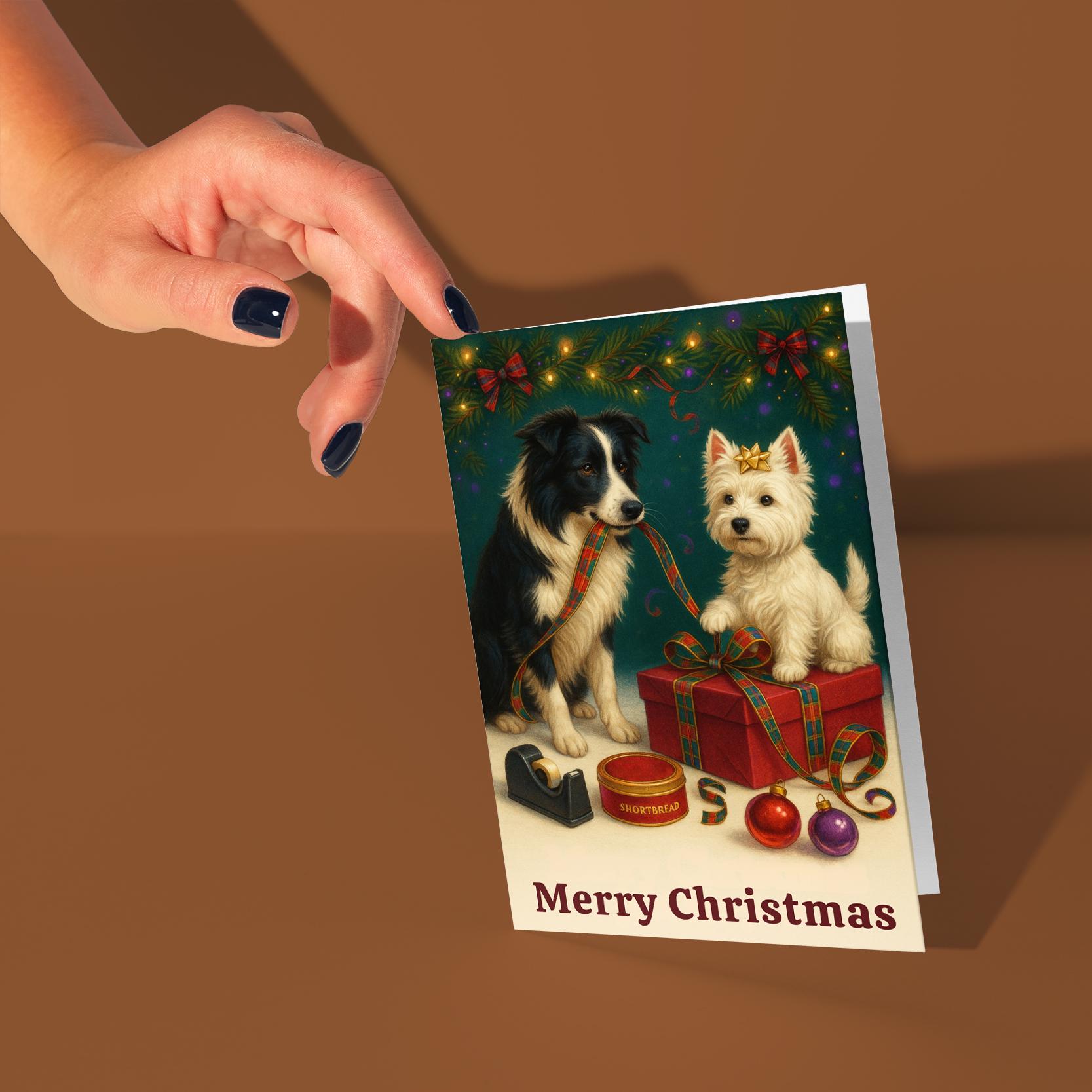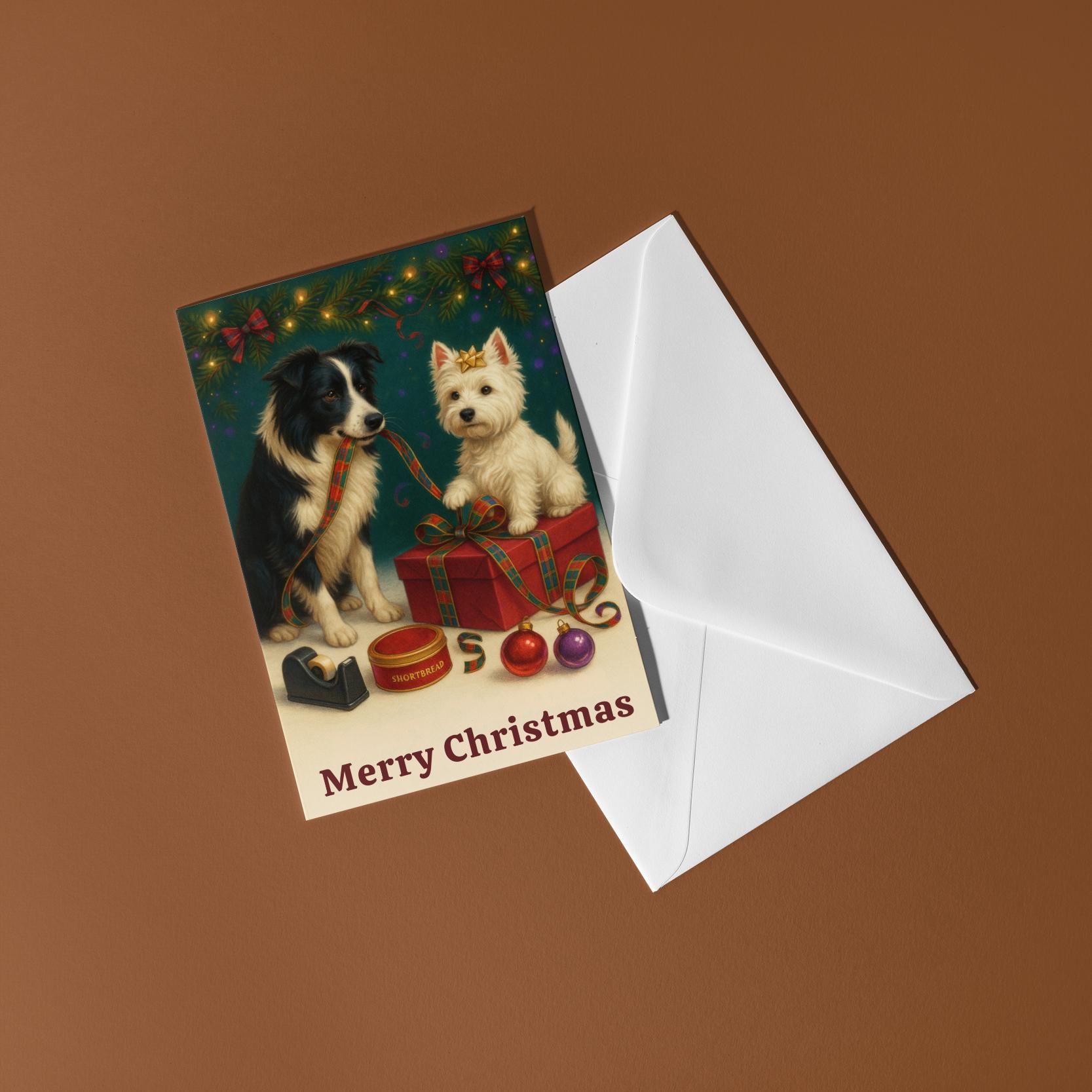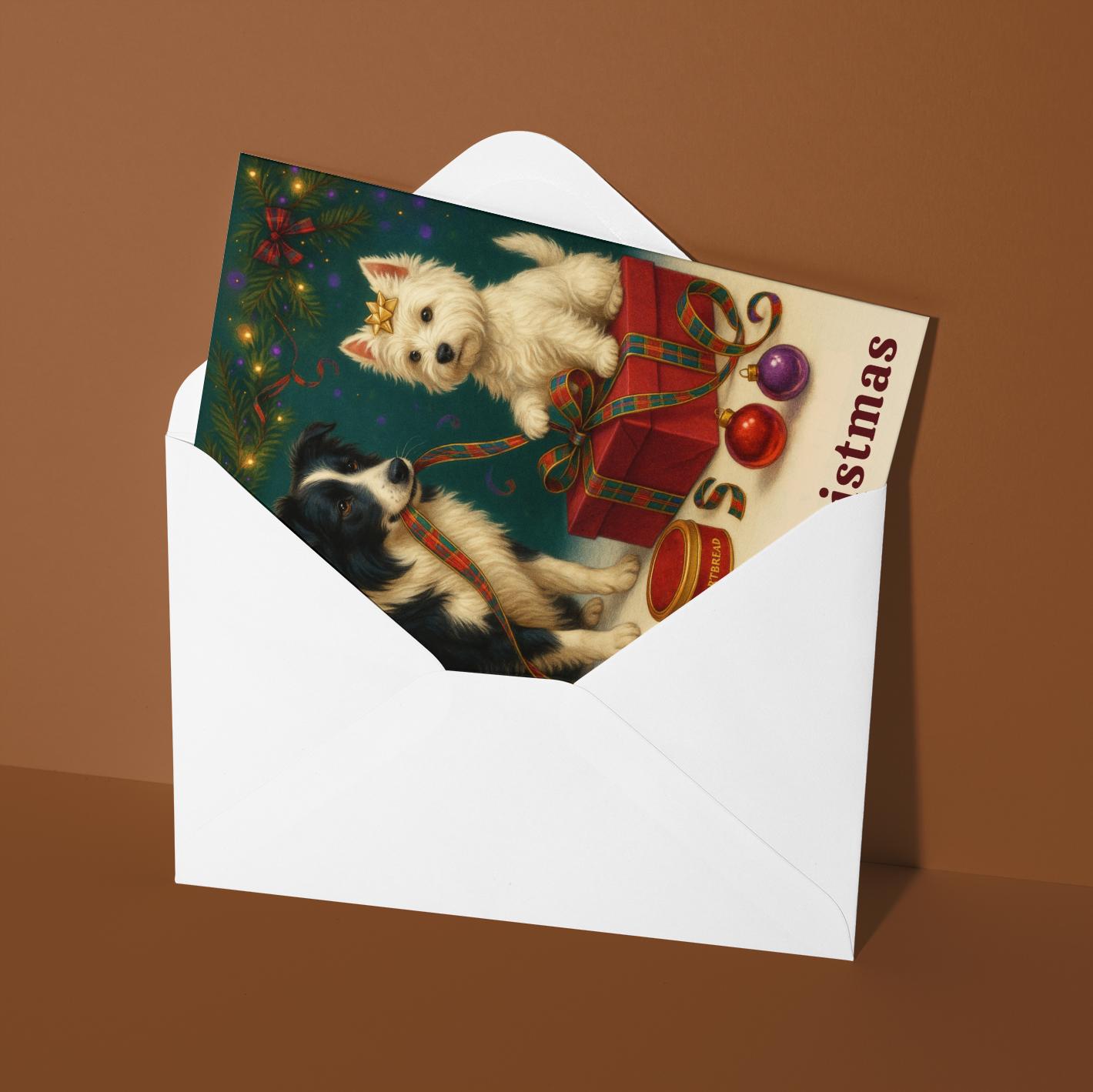 BLANK INTERIOR FOR A PERSONAL TOUCH: Part of the - Dog Breeds Collection - Santa’s Helpers Collection - West Highland White Terrier and Border Collie Dogs Duo - Santas Best Pup Helpers - Merry Christmas! Card and other whimsical designs feature a blank interior, giving you ample space to write a personal message from the heart. Perfect for any occasion, each card comes with a matching white envelope, making it easy to send your unique sentiments to loved ones.