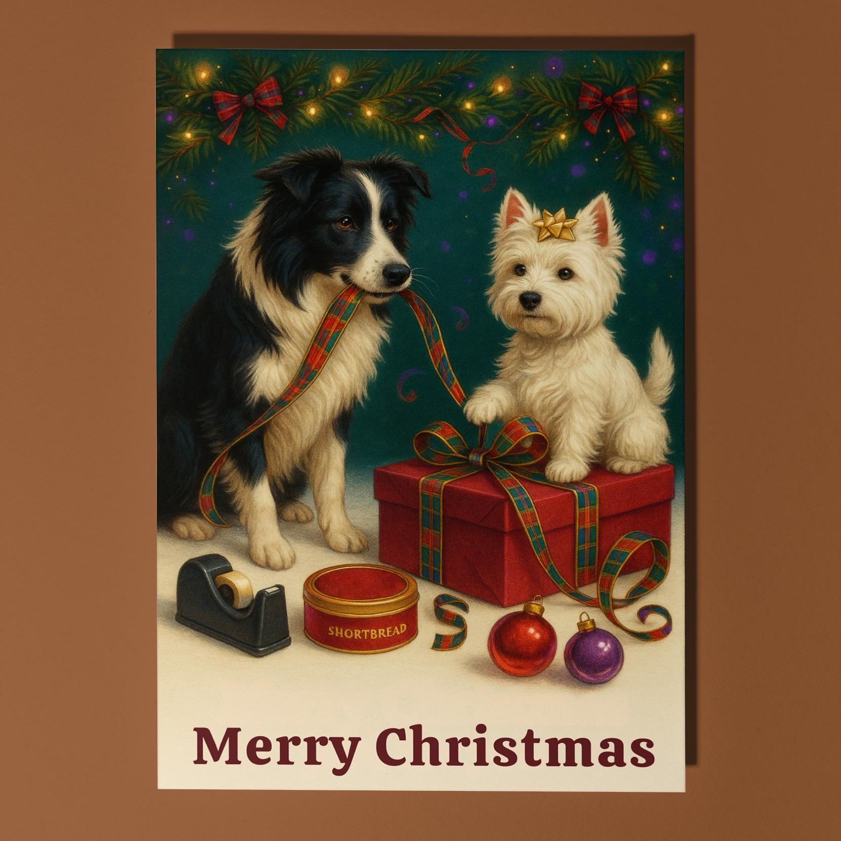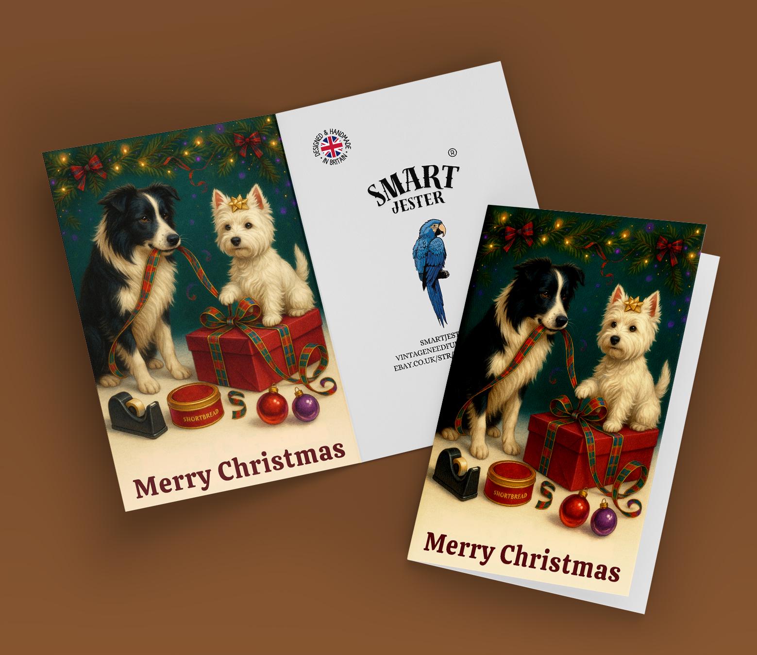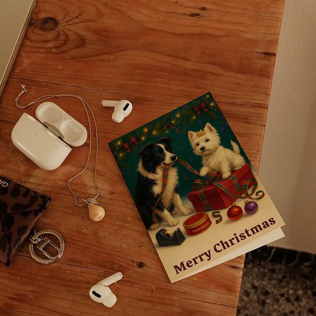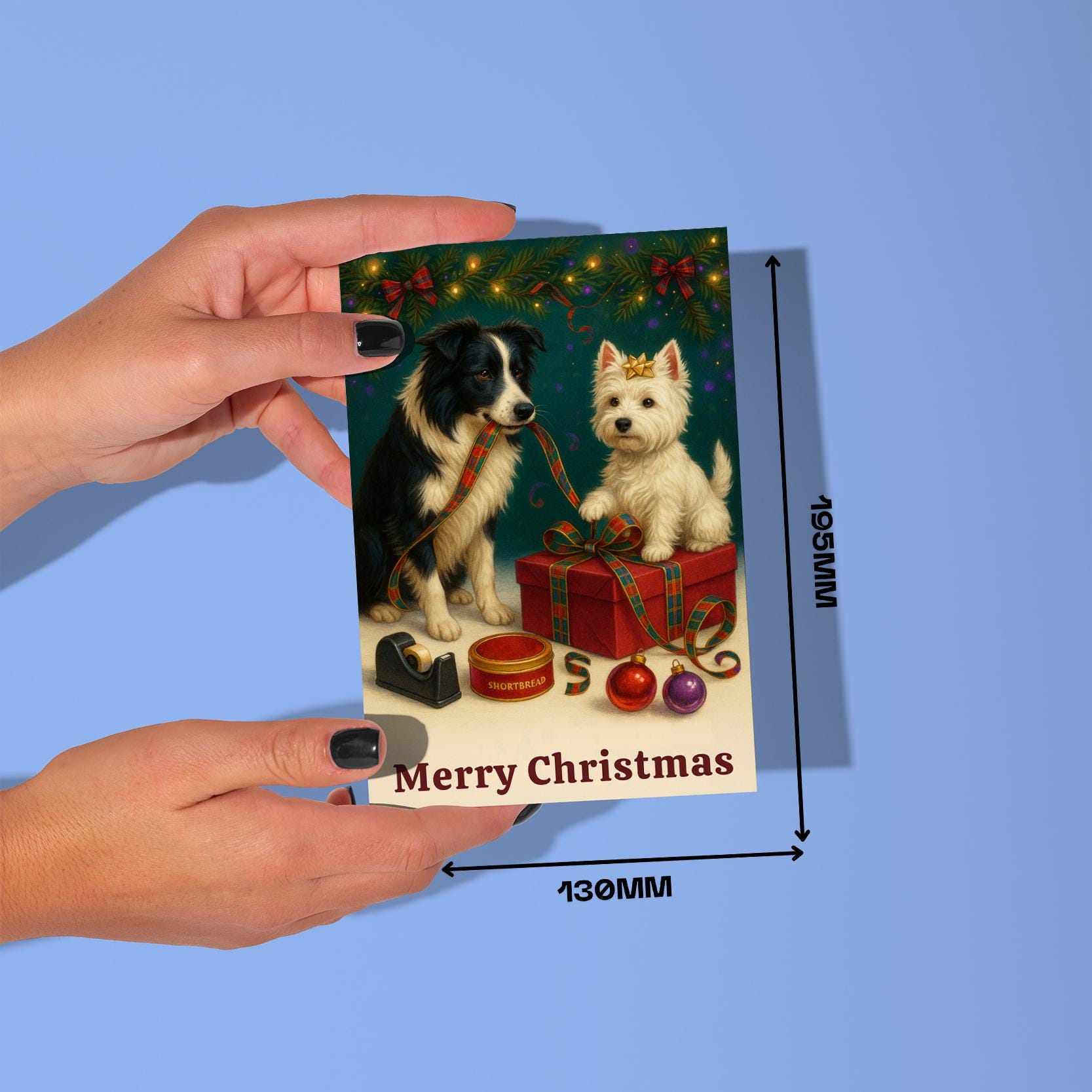 BLANK INTERIOR FOR A PERSONAL TOUCH: Part of the - Dog Breeds Collection - Santa’s Helpers Collection - West Highland White Terrier and Border Collie Dogs Duo - Santas Best Pup Helpers - Merry Christmas! Card and other whimsical designs feature a blank interior, giving you ample space to write a personal message from the heart. Perfect for any occasion, each card comes with a matching white envelope, making it easy to send your unique sentiments to loved ones.