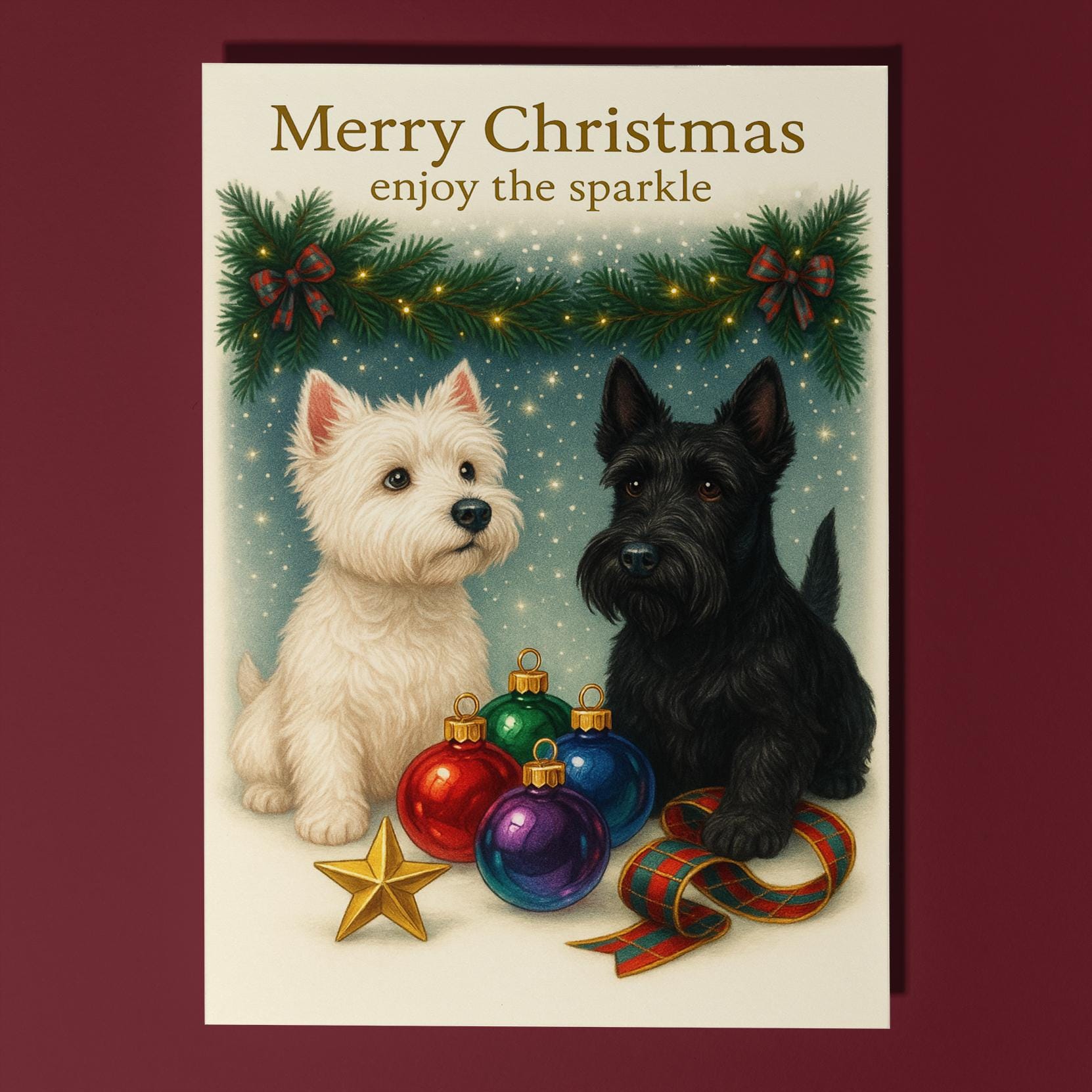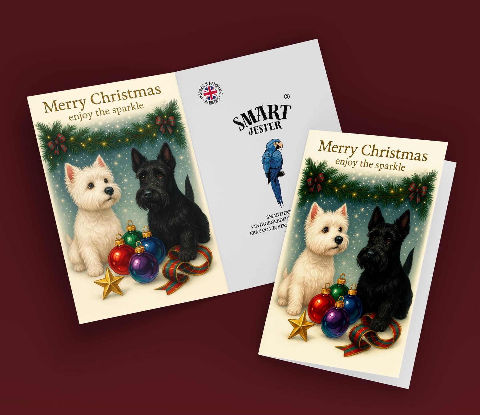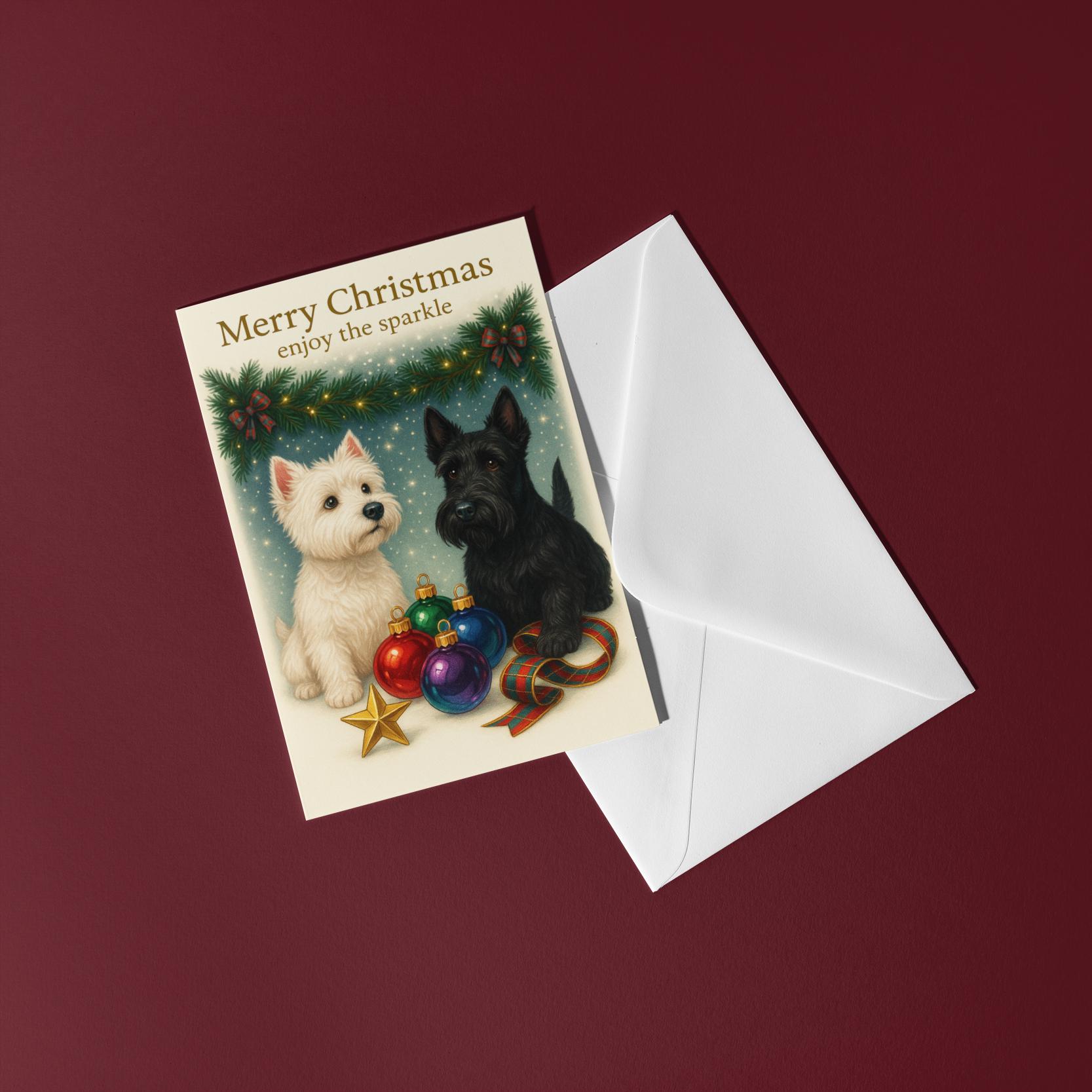 BLANK INTERIOR FOR A PERSONAL TOUCH: Part of the - Dog Breeds Collection - Santa’s Helpers Collection - West Highland White Terrier and Scottish Terrier Dogs Duo - Santas Best Pup Helpers - Merry Christmas! Card and other whimsical designs feature a blank interior, giving you ample space to write a personal message from the heart. Perfect for any occasion, each card comes with a matching white envelope, making it easy to send your unique sentiments to loved ones.