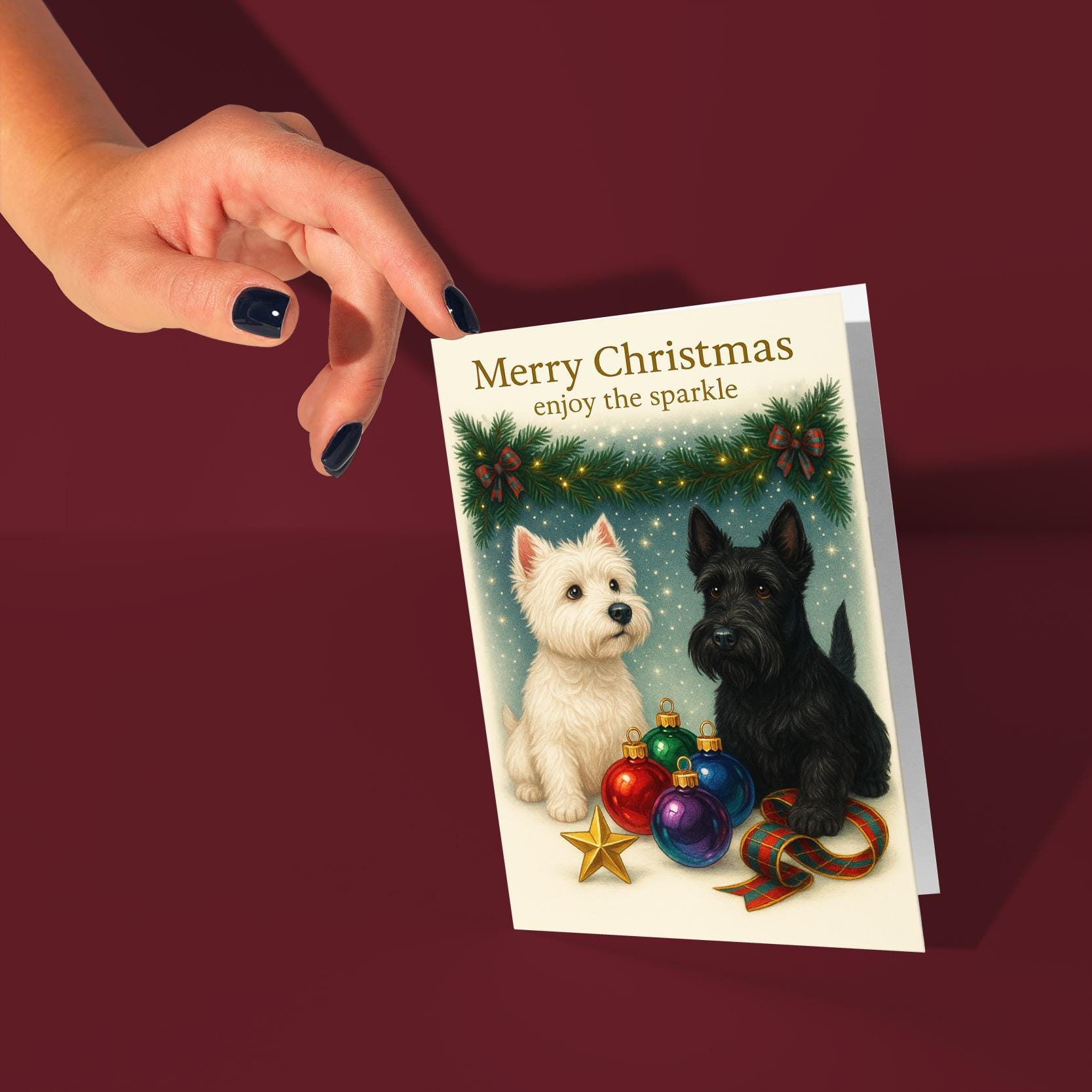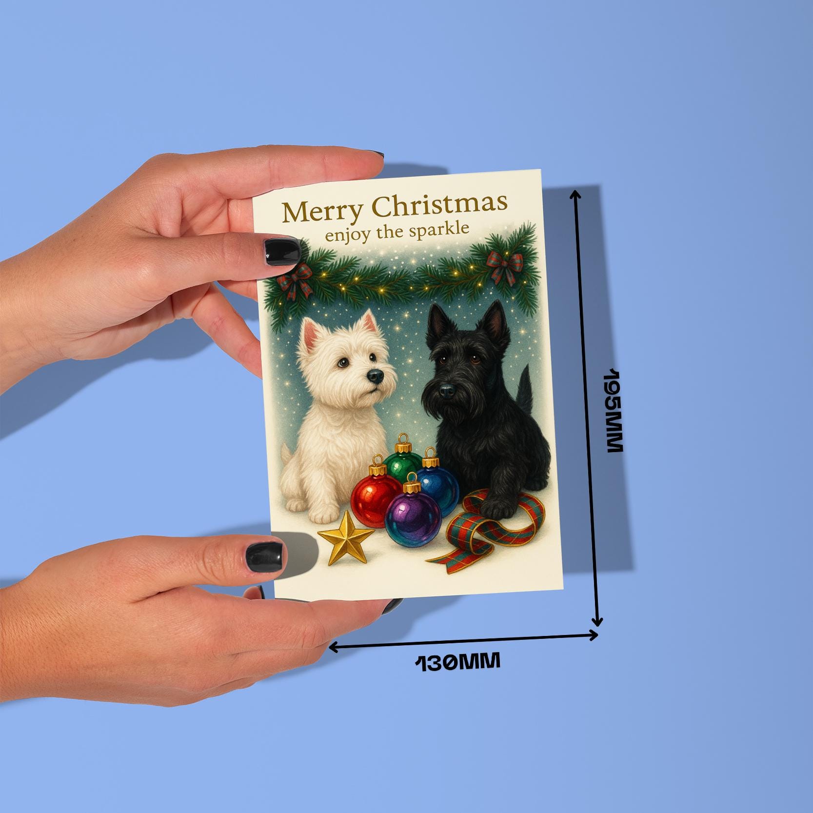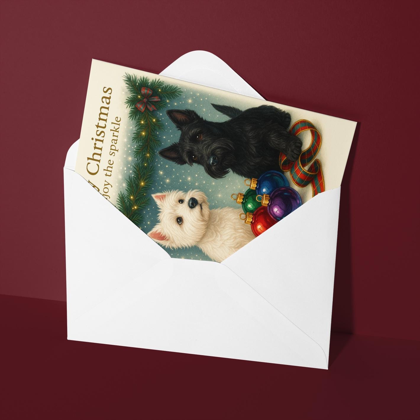 BLANK INTERIOR FOR A PERSONAL TOUCH: Part of the - Dog Breeds Collection - Santa’s Helpers Collection - West Highland White Terrier and Scottish Terrier Dogs Duo - Santas Best Pup Helpers - Merry Christmas! Card and other whimsical designs feature a blank interior, giving you ample space to write a personal message from the heart. Perfect for any occasion, each card comes with a matching white envelope, making it easy to send your unique sentiments to loved ones.