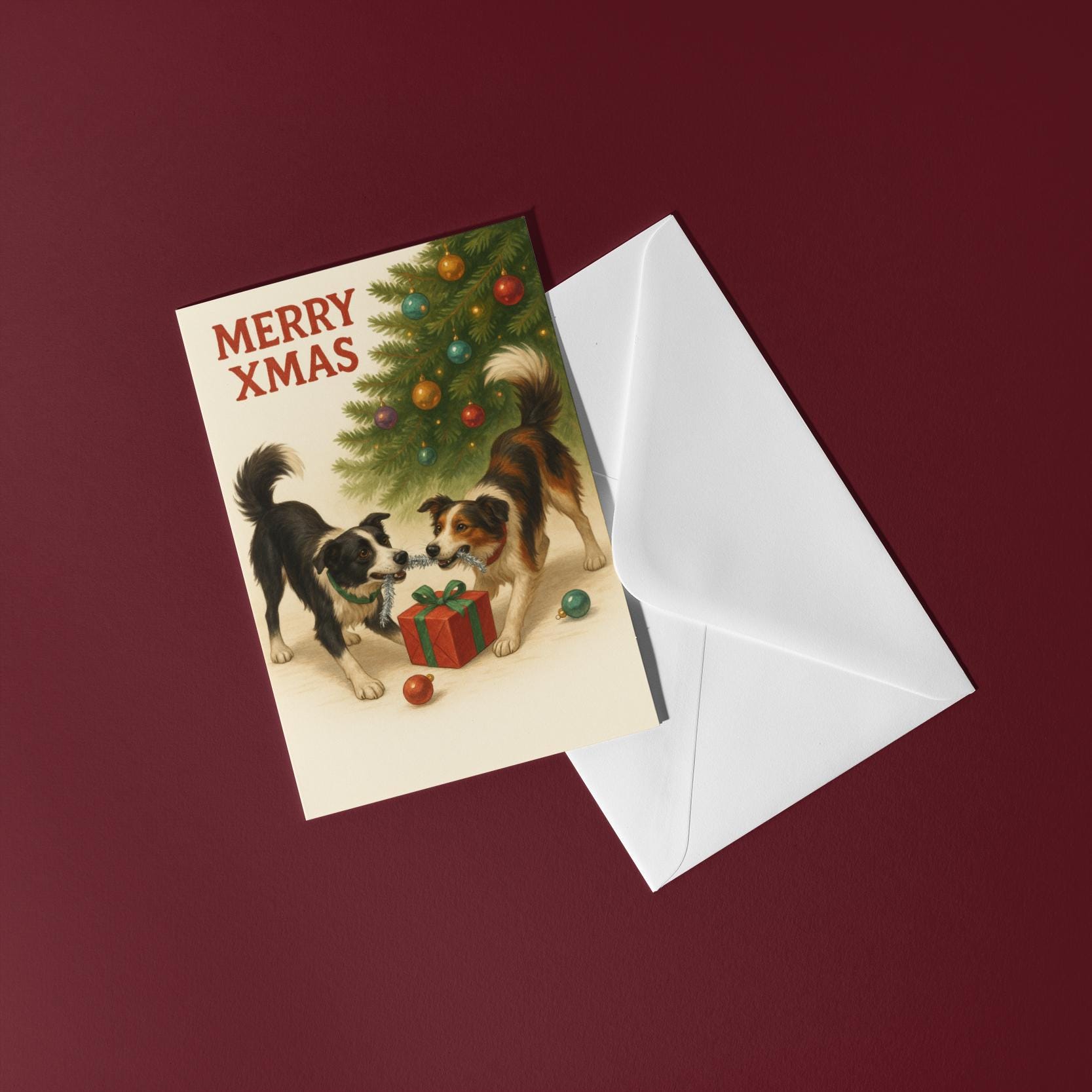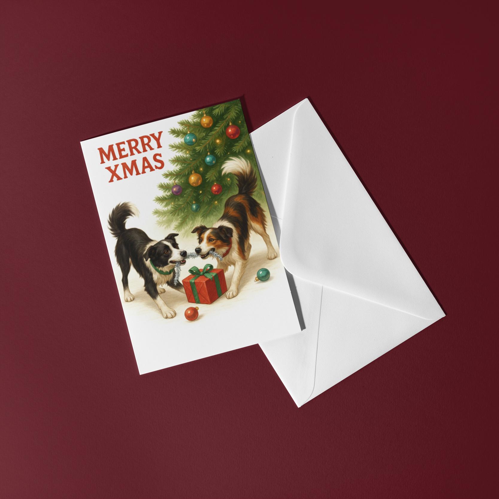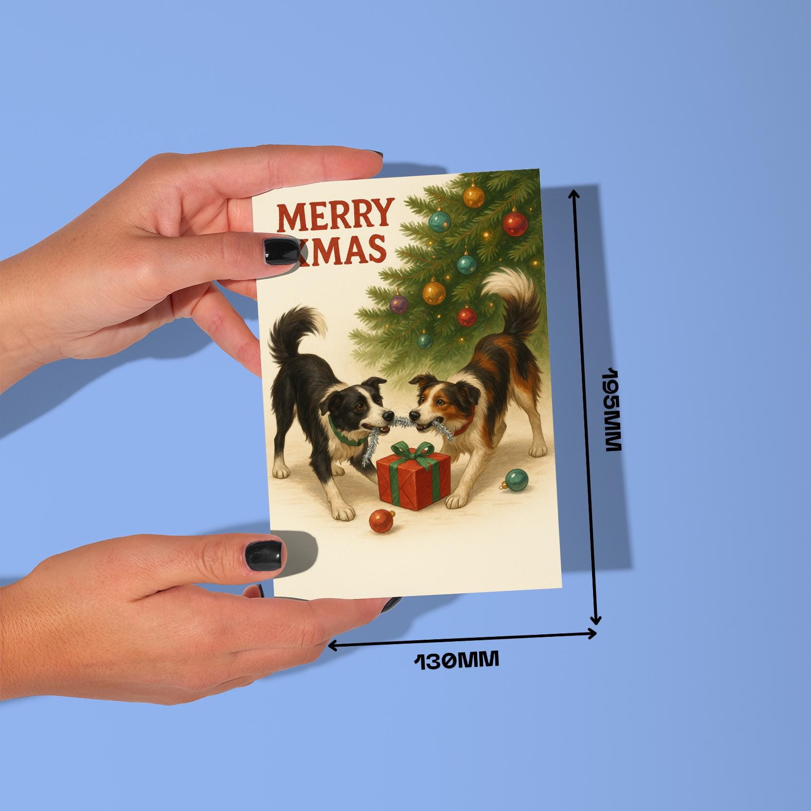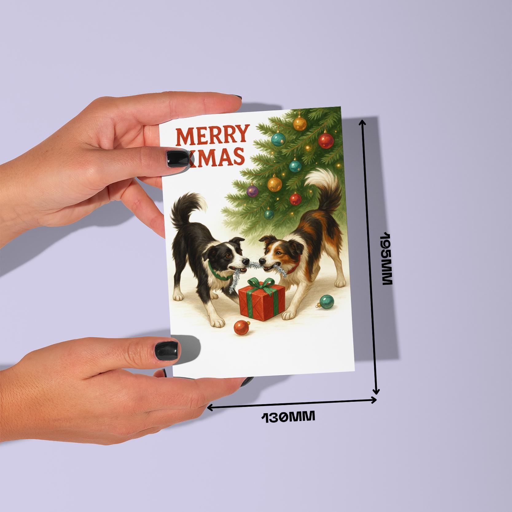 BLANK INTERIOR FOR A PERSONAL TOUCH: Part of the - Dog Breeds Collection - Santa’s Helpers Collection - Border Collie Festive Tug of Joy - Merry Xmas Card and other whimsical designs feature a blank interior, giving you ample space to write a personal message from the heart. Perfect for any occasion, each card comes with a matching white envelope, making it easy to send your unique sentiments to loved ones.