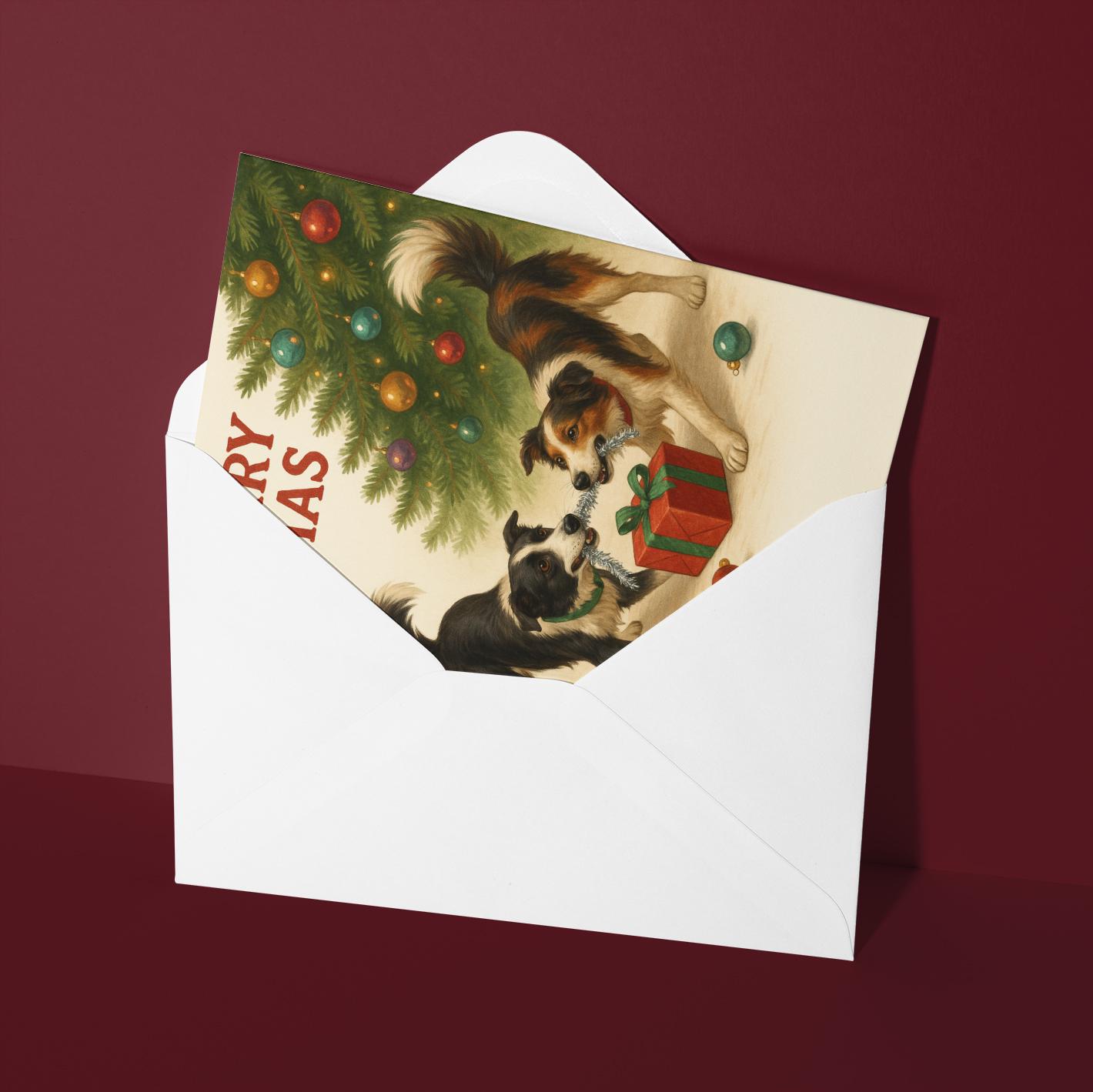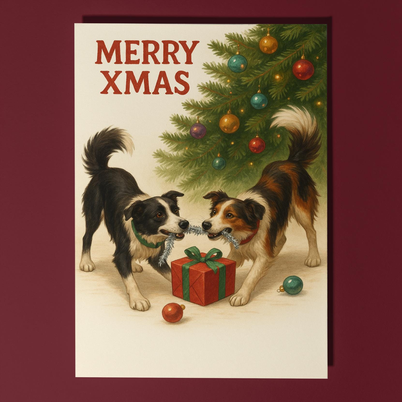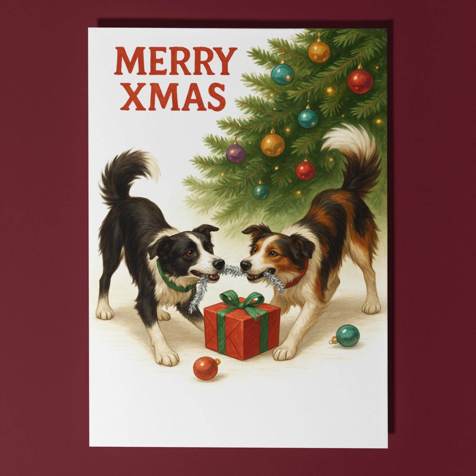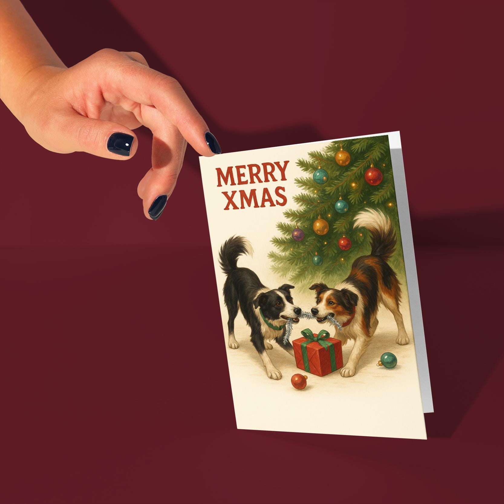 BLANK INTERIOR FOR A PERSONAL TOUCH: Part of the - Dog Breeds Collection - Santa’s Helpers Collection - Border Collie Festive Tug of Joy - Merry Xmas Card and other whimsical designs feature a blank interior, giving you ample space to write a personal message from the heart. Perfect for any occasion, each card comes with a matching white envelope, making it easy to send your unique sentiments to loved ones.