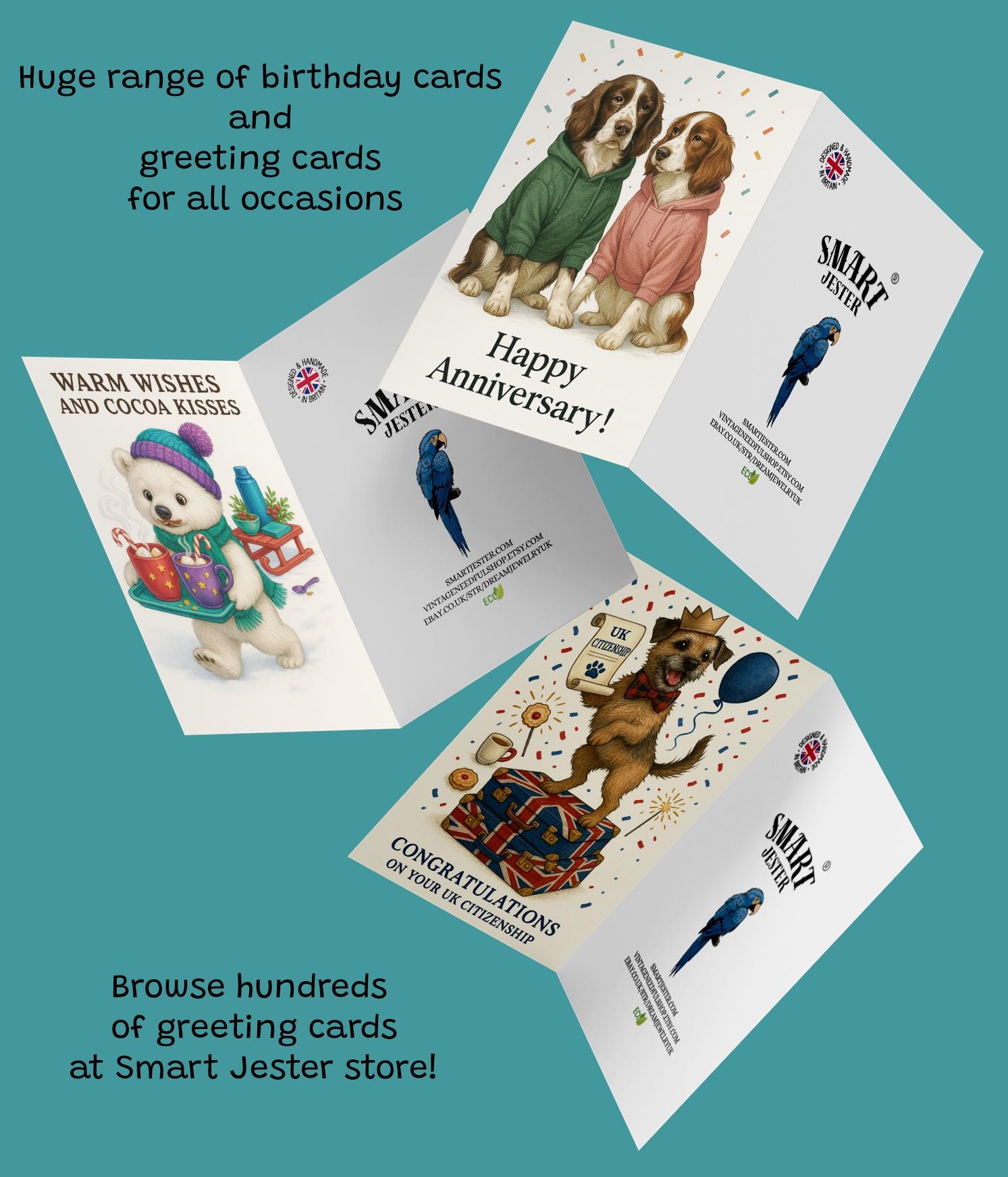 PROUDLY MADE IN THE UK: Designed and handmade in Britain using locally sourced materials, our greeting cards reflect UK craftsmanship and creativity. Suitable for Christmas, Mother’s Day, Father’s Day, thank-you notes, new baby announcements, and even LGBTQ+ cards, Smart Jester’s unique cards offer more than just greetings—they’re moments meant to share smiles!