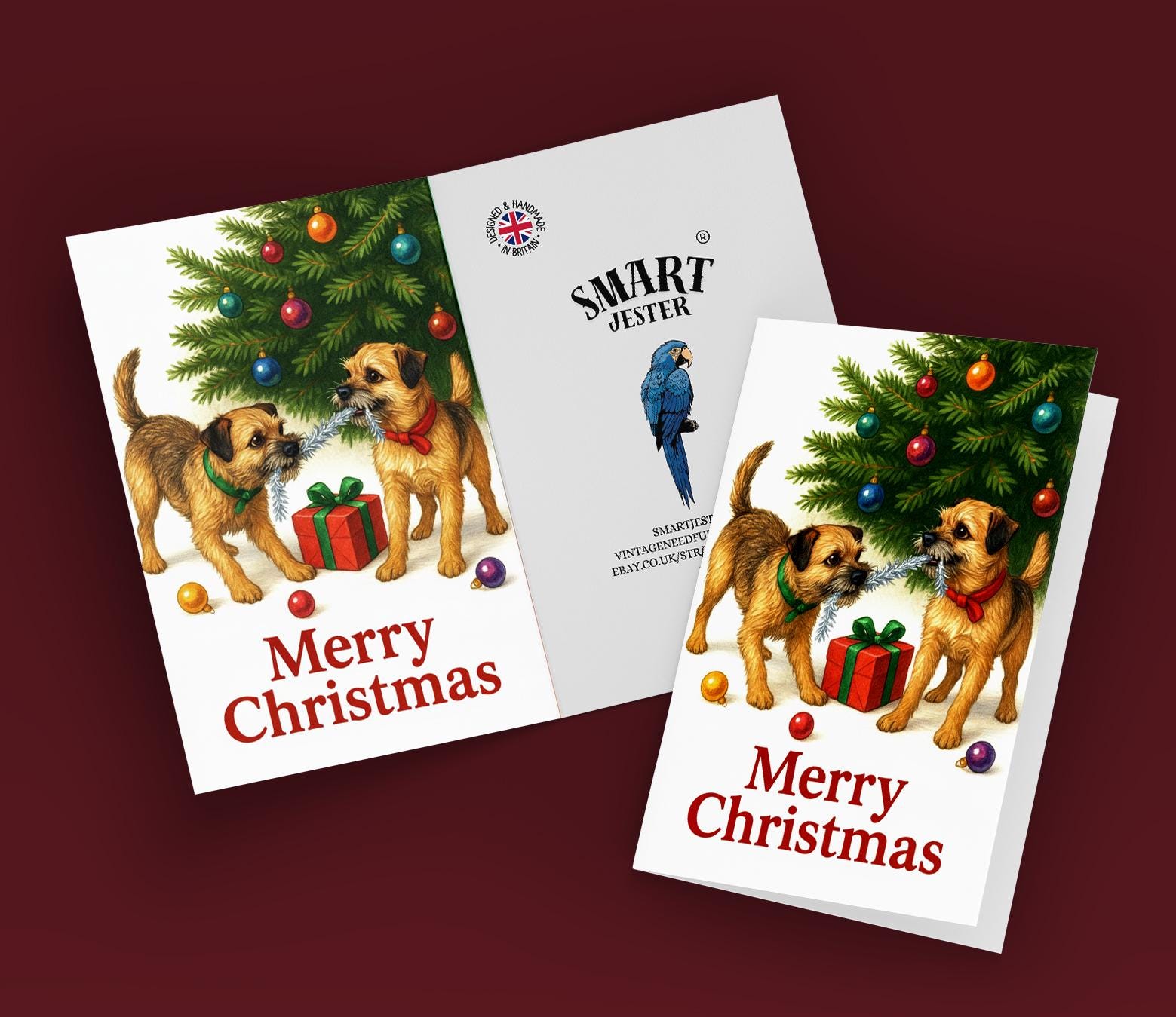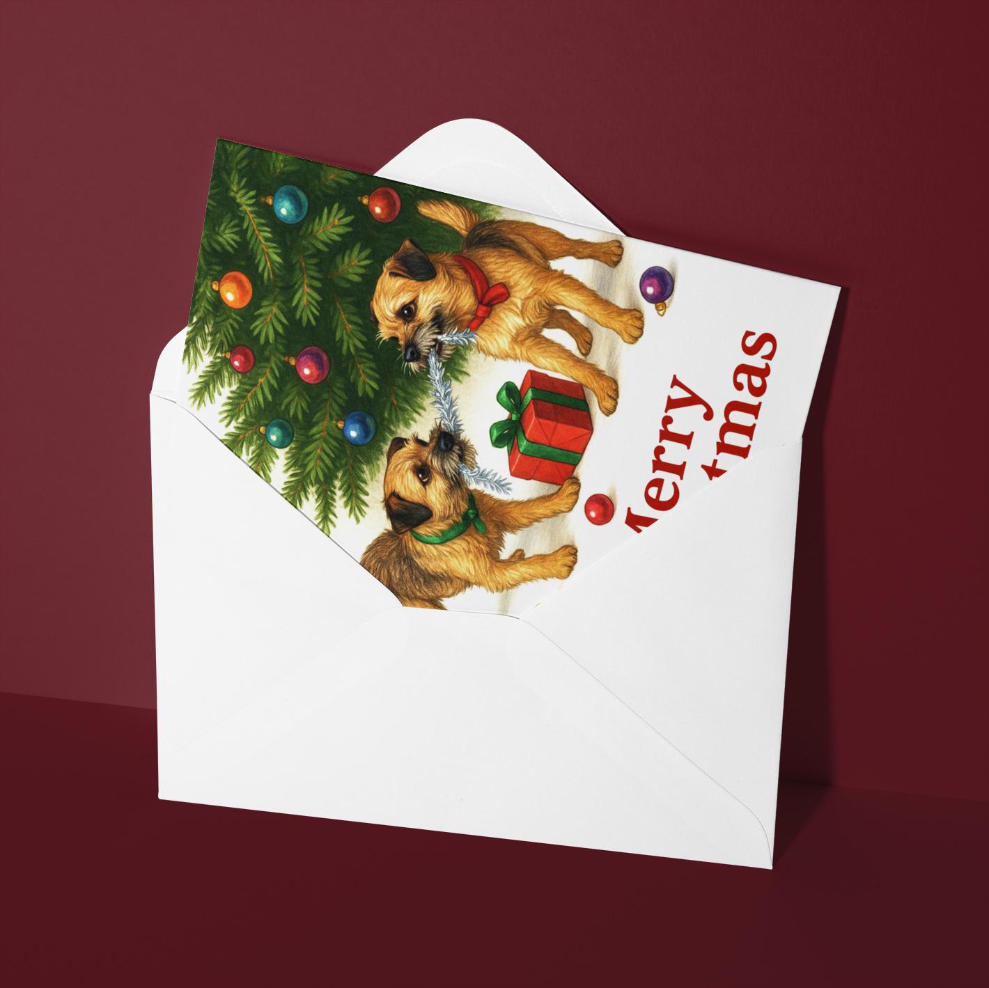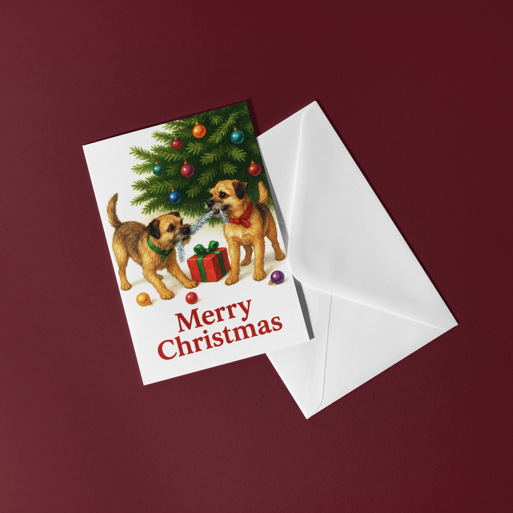 BLANK INTERIOR FOR A PERSONAL TOUCH: Part of the - Dog Breeds Collection - Santa’s Helpers Collection - Border Terrier Dogs Duo - Festive Tug of Joy - Merry Christmas Card and other whimsical designs feature a blank interior, giving you ample space to write a personal message from the heart. Perfect for any occasion, each card comes with a matching white envelope, making it easy to send your unique sentiments to loved ones.