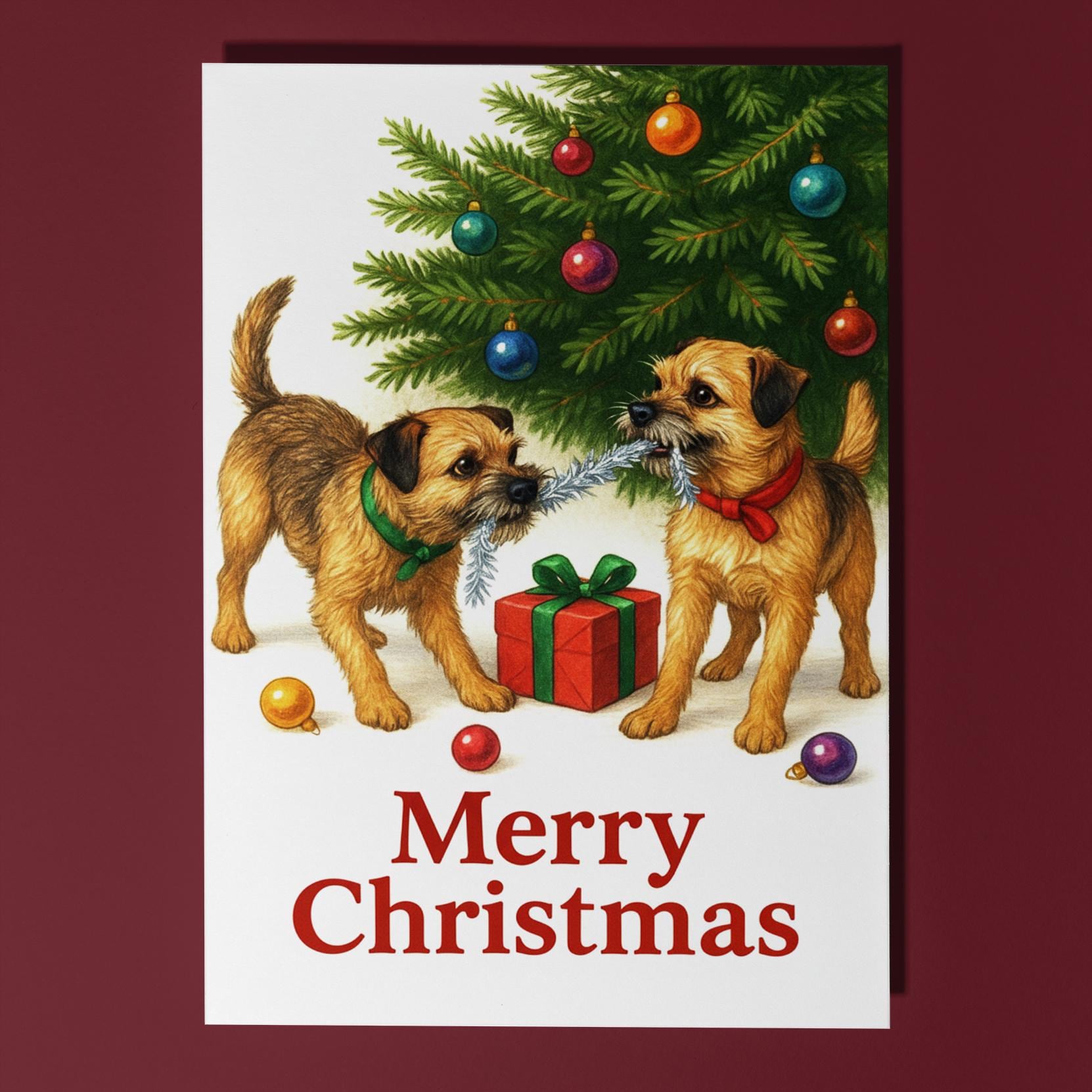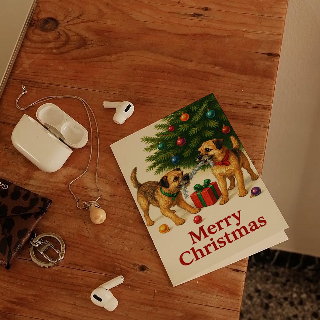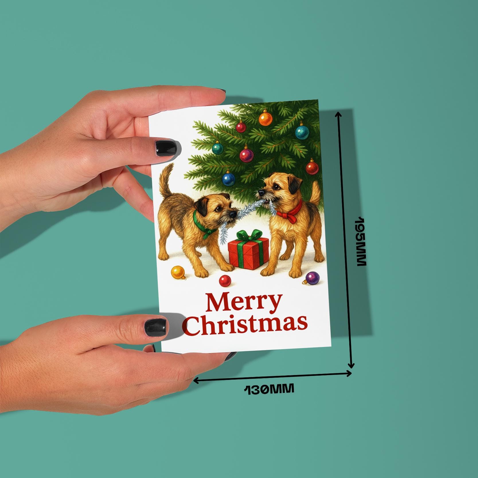 BLANK INTERIOR FOR A PERSONAL TOUCH: Part of the - Dog Breeds Collection - Santa’s Helpers Collection - Border Terrier Dogs Duo - Festive Tug of Joy - Merry Christmas Card and other whimsical designs feature a blank interior, giving you ample space to write a personal message from the heart. Perfect for any occasion, each card comes with a matching white envelope, making it easy to send your unique sentiments to loved ones.