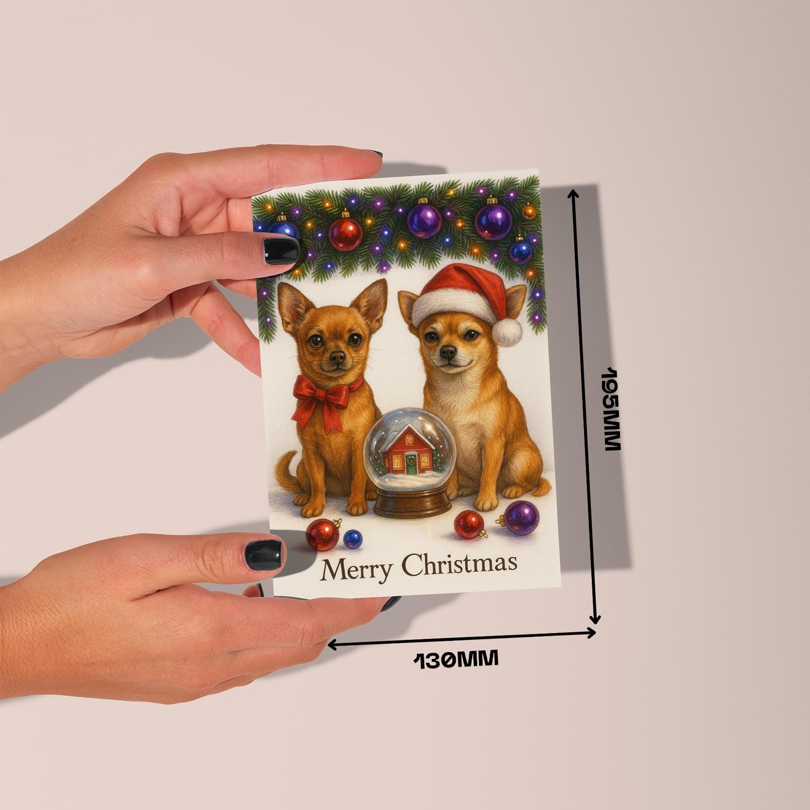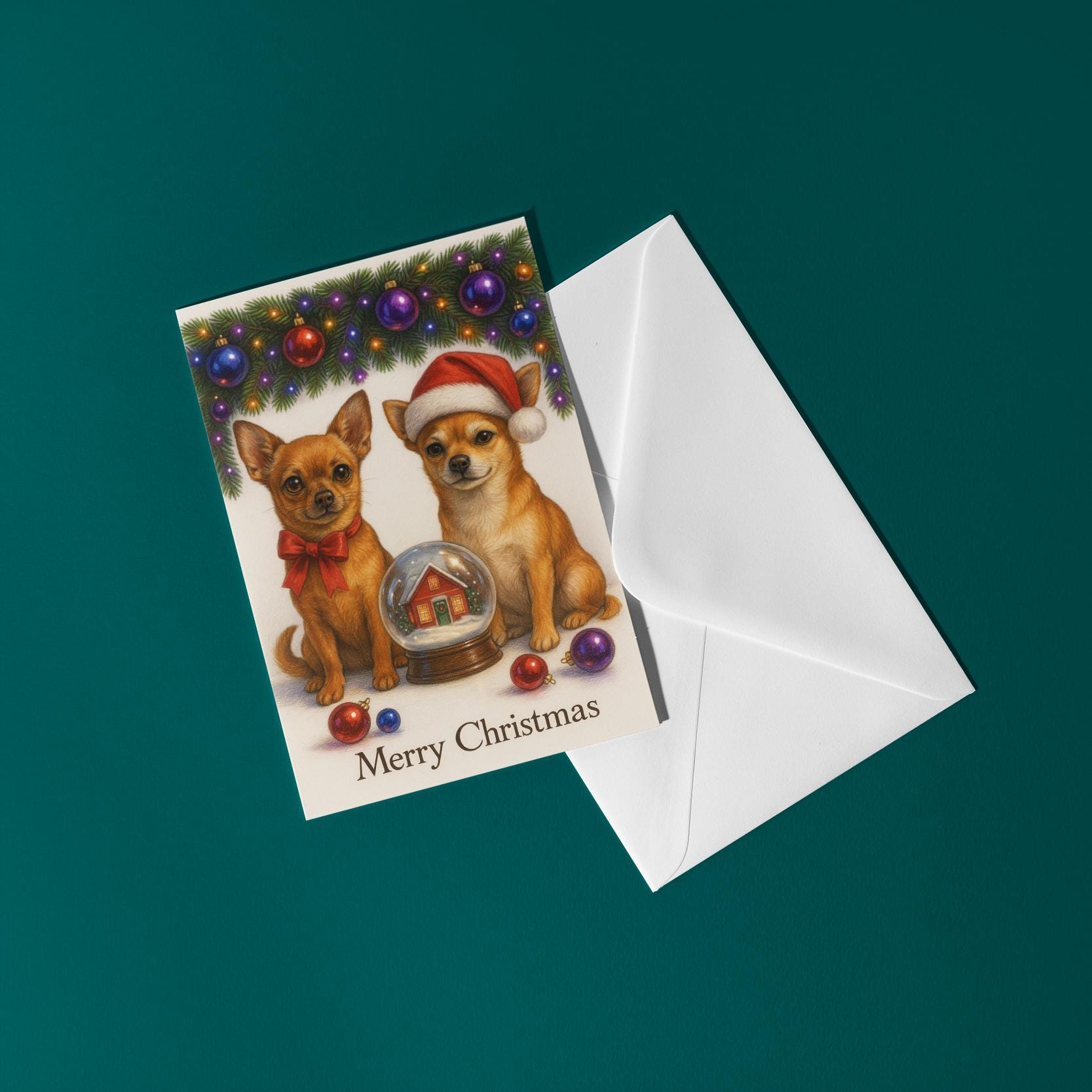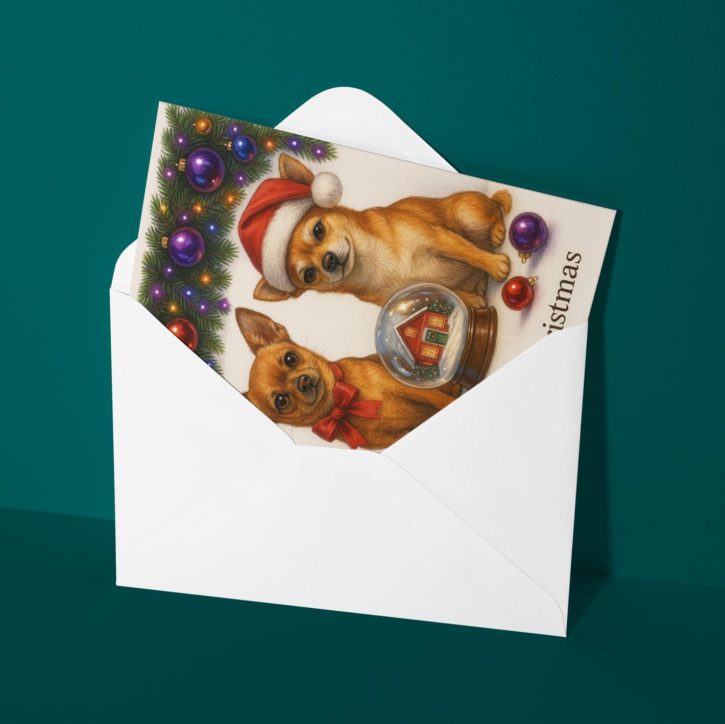 BLANK INTERIOR FOR A PERSONAL TOUCH: Part of the - Dog Breeds Collection - Santa’s Helpers Collection - Chihuahua Dogs - Cozy Nose and Snow Globe - Merry Christmas! Card and other whimsical designs feature a blank interior, giving you ample space to write a personal message from the heart. Perfect for any occasion, each card comes with a matching white envelope, making it easy to send your unique sentiments to loved ones.