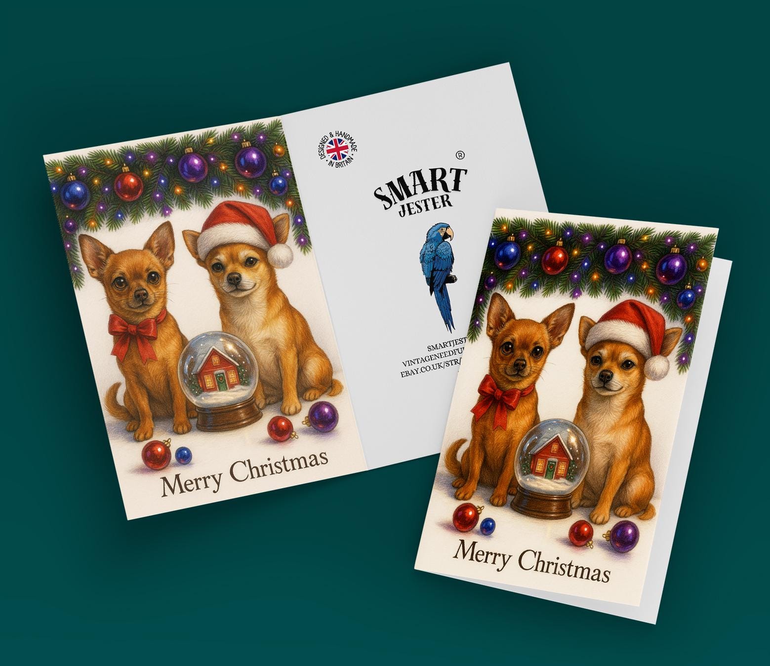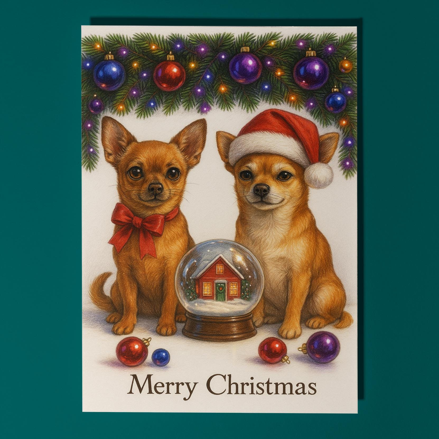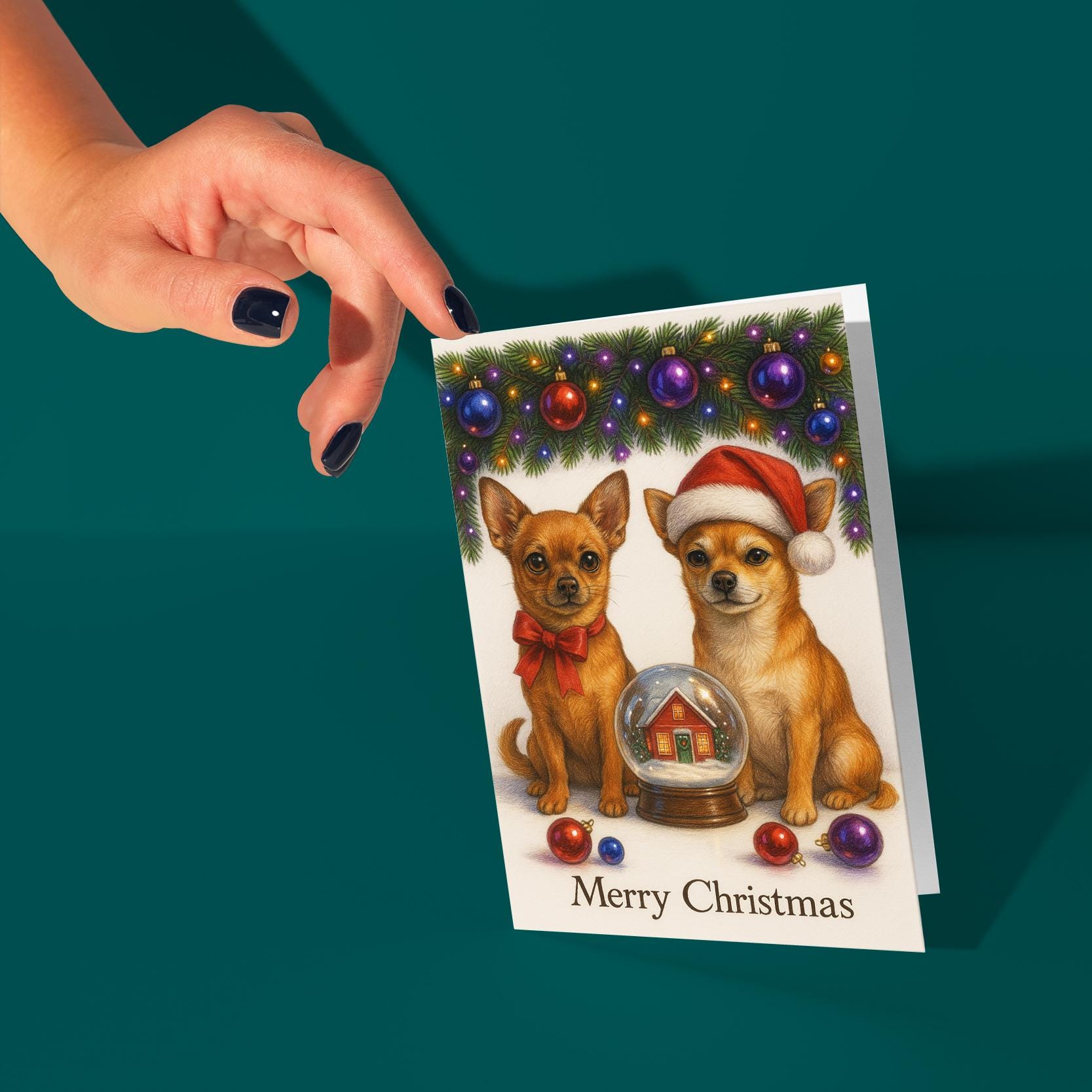 BLANK INTERIOR FOR A PERSONAL TOUCH: Part of the - Dog Breeds Collection - Santa’s Helpers Collection - Chihuahua Dogs - Cozy Nose and Snow Globe - Merry Christmas! Card and other whimsical designs feature a blank interior, giving you ample space to write a personal message from the heart. Perfect for any occasion, each card comes with a matching white envelope, making it easy to send your unique sentiments to loved ones.