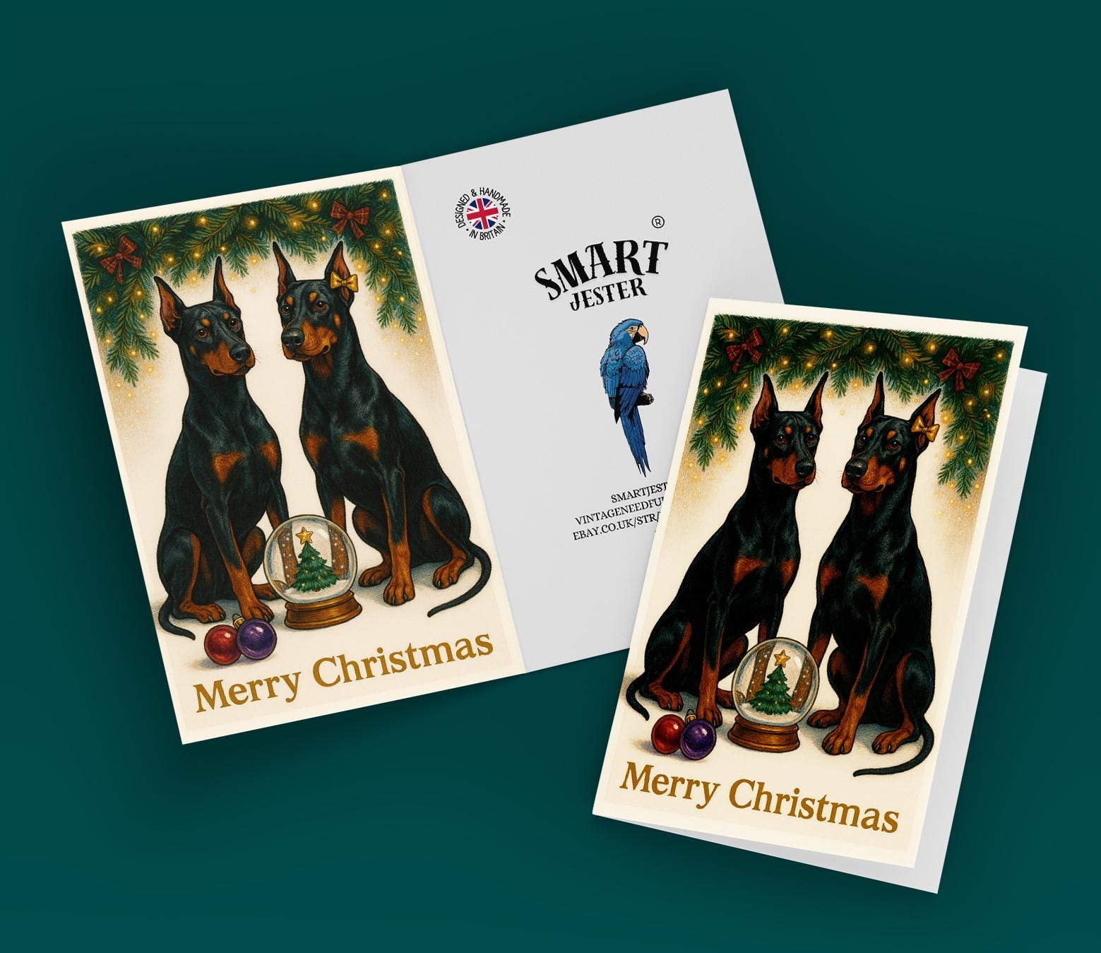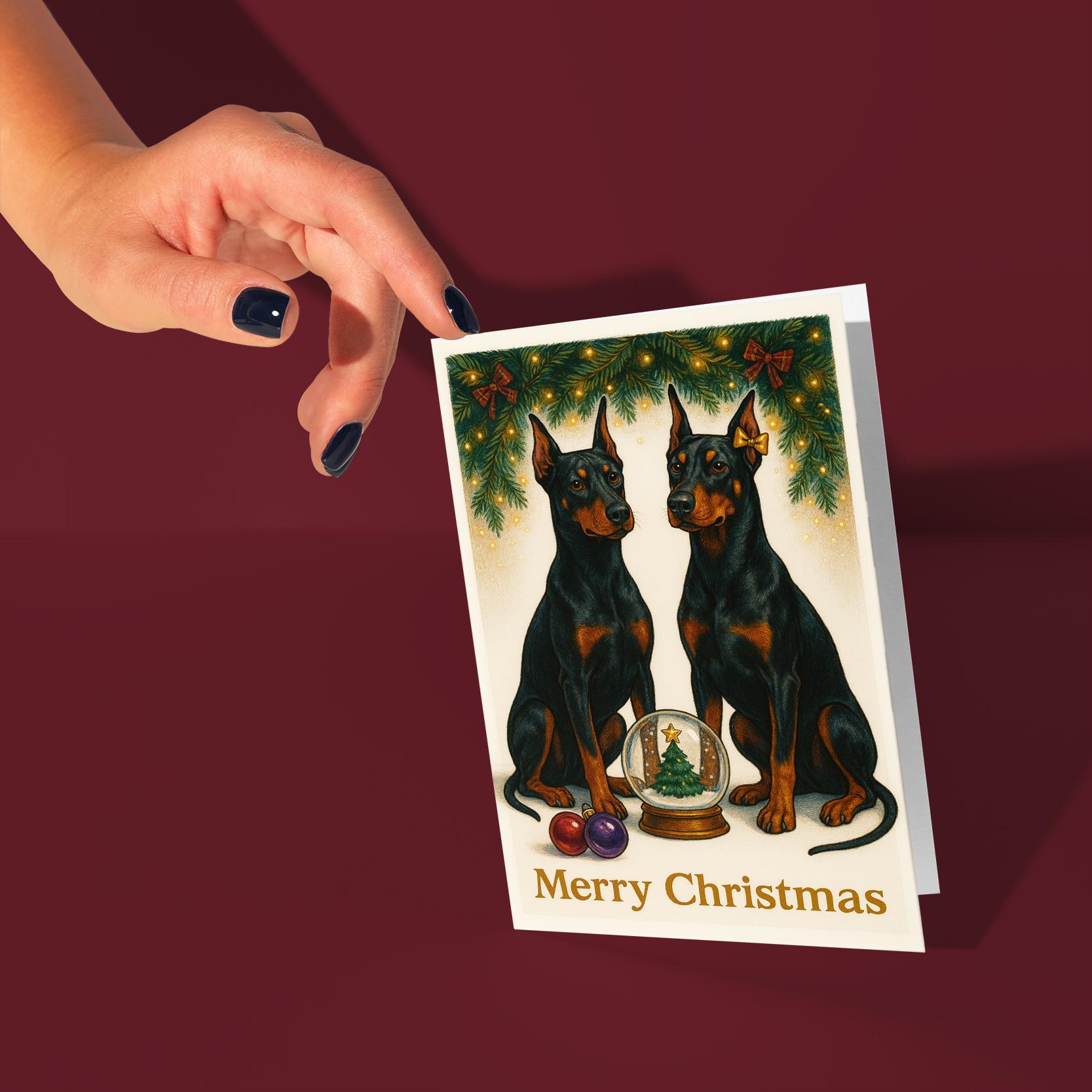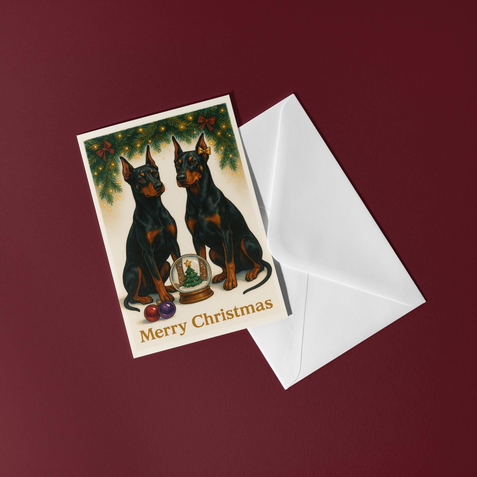 BLANK INTERIOR FOR A PERSONAL TOUCH: Part of the - Dog Breeds Collection - Santa’s Helpers Collection - Doberman Dogs Duo - Cozy Nose and Snow Globe - Merry Christmas! Card and other whimsical designs feature a blank interior, giving you ample space to write a personal message from the heart. Perfect for any occasion, each card comes with a matching white envelope, making it easy to send your unique sentiments to loved ones.