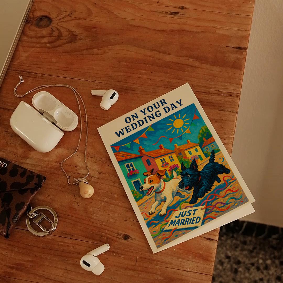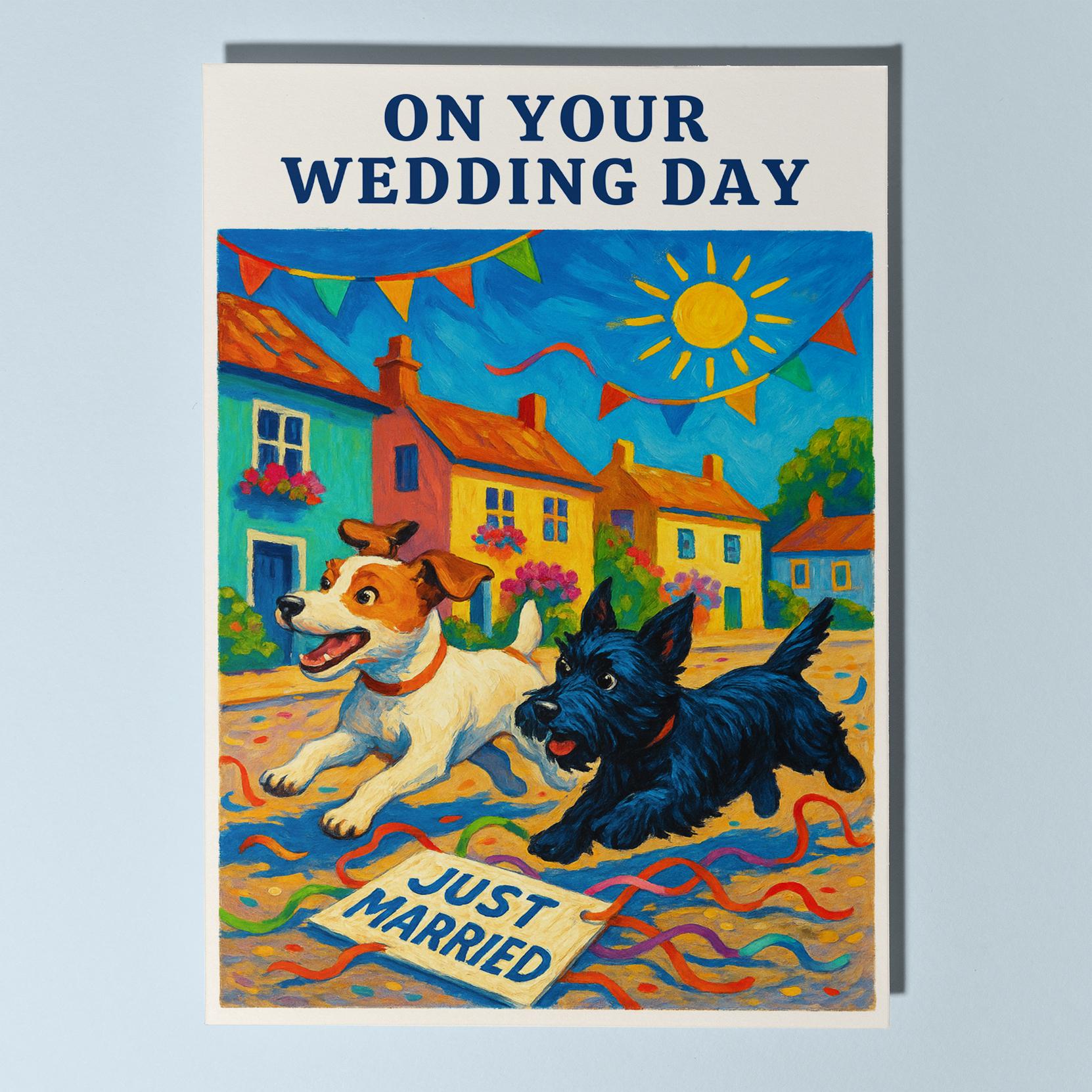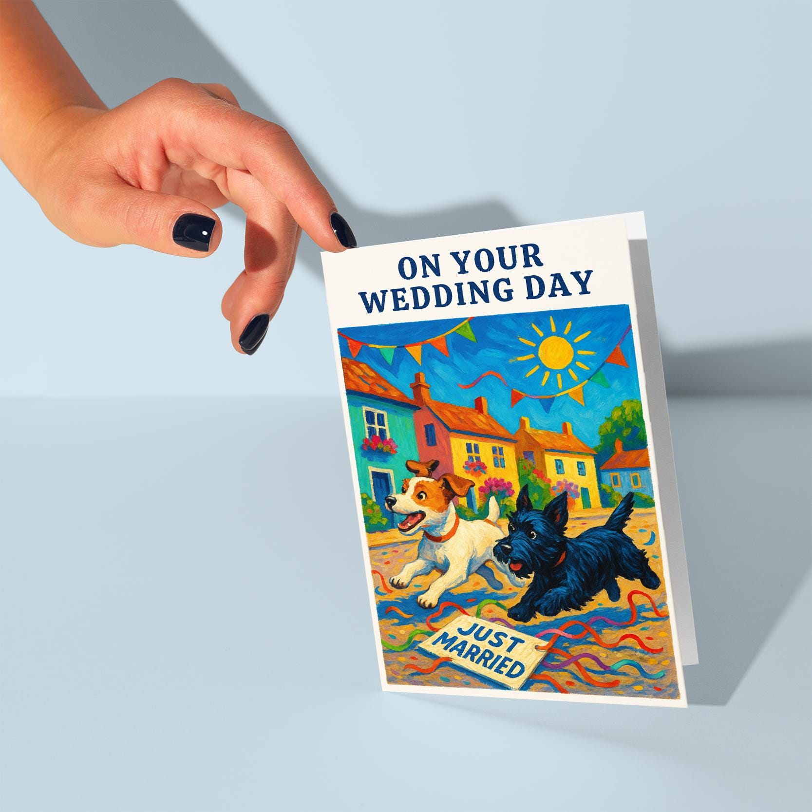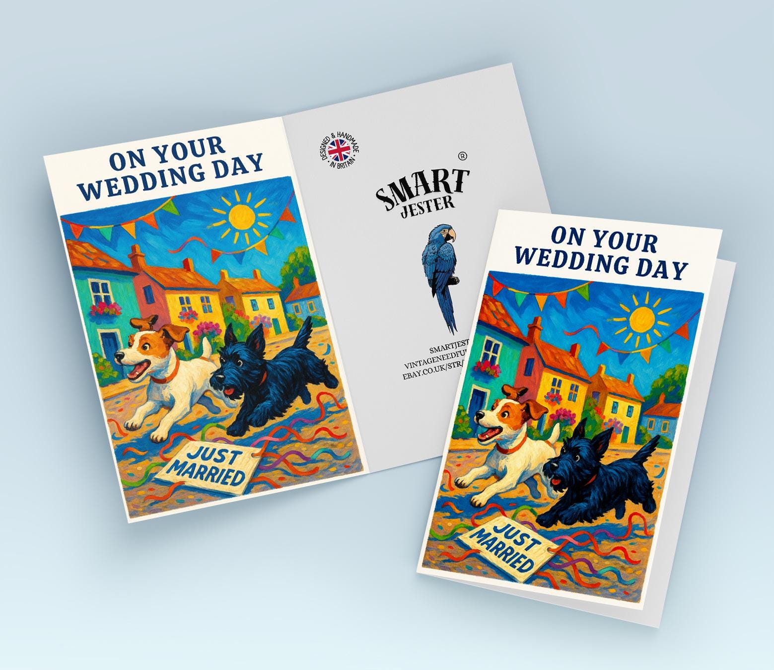 BLANK INTERIOR FOR A PERSONAL TOUCH: Our Dogs breeds collection - Wedding Edition - Jack Russell & Scottish Terrier - Just Married - On Your Wedding Day Card and other whimsical designs feature a blank interior, giving you ample space to write a personal message from the heart. Perfect for any occasion, each card comes with a matching white envelope, making it easy to send your unique sentiments to loved ones.
