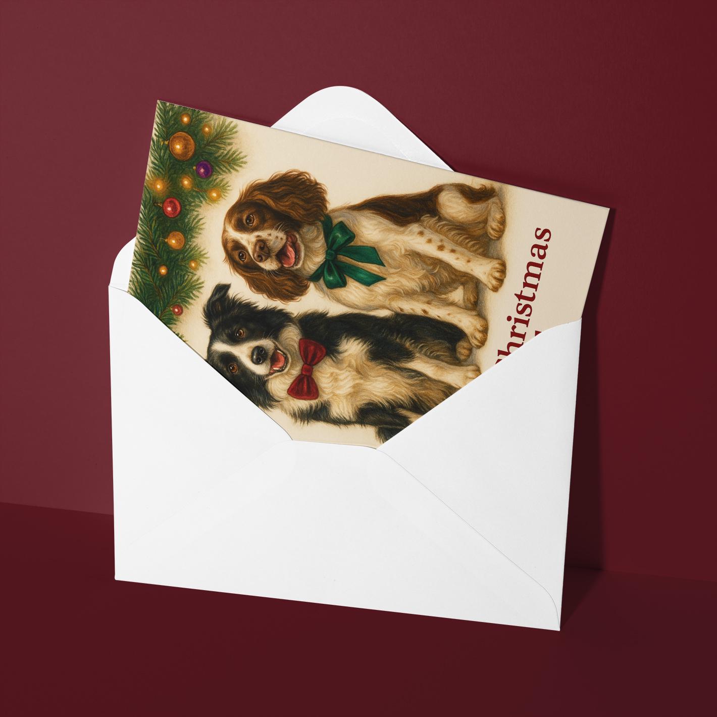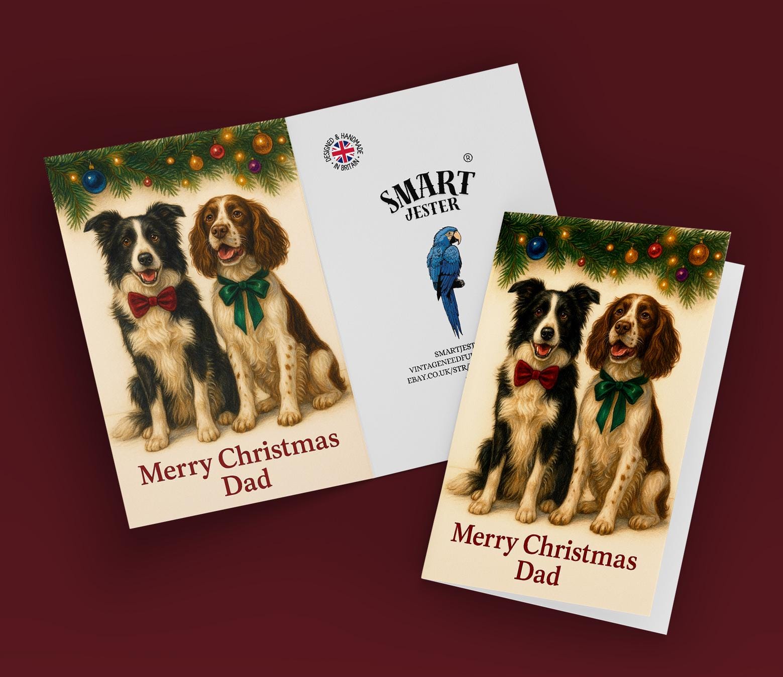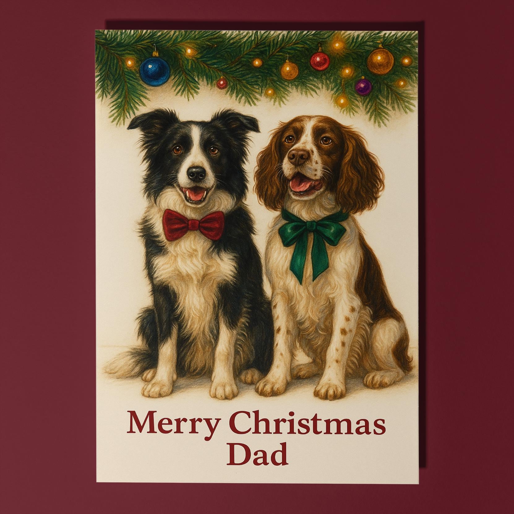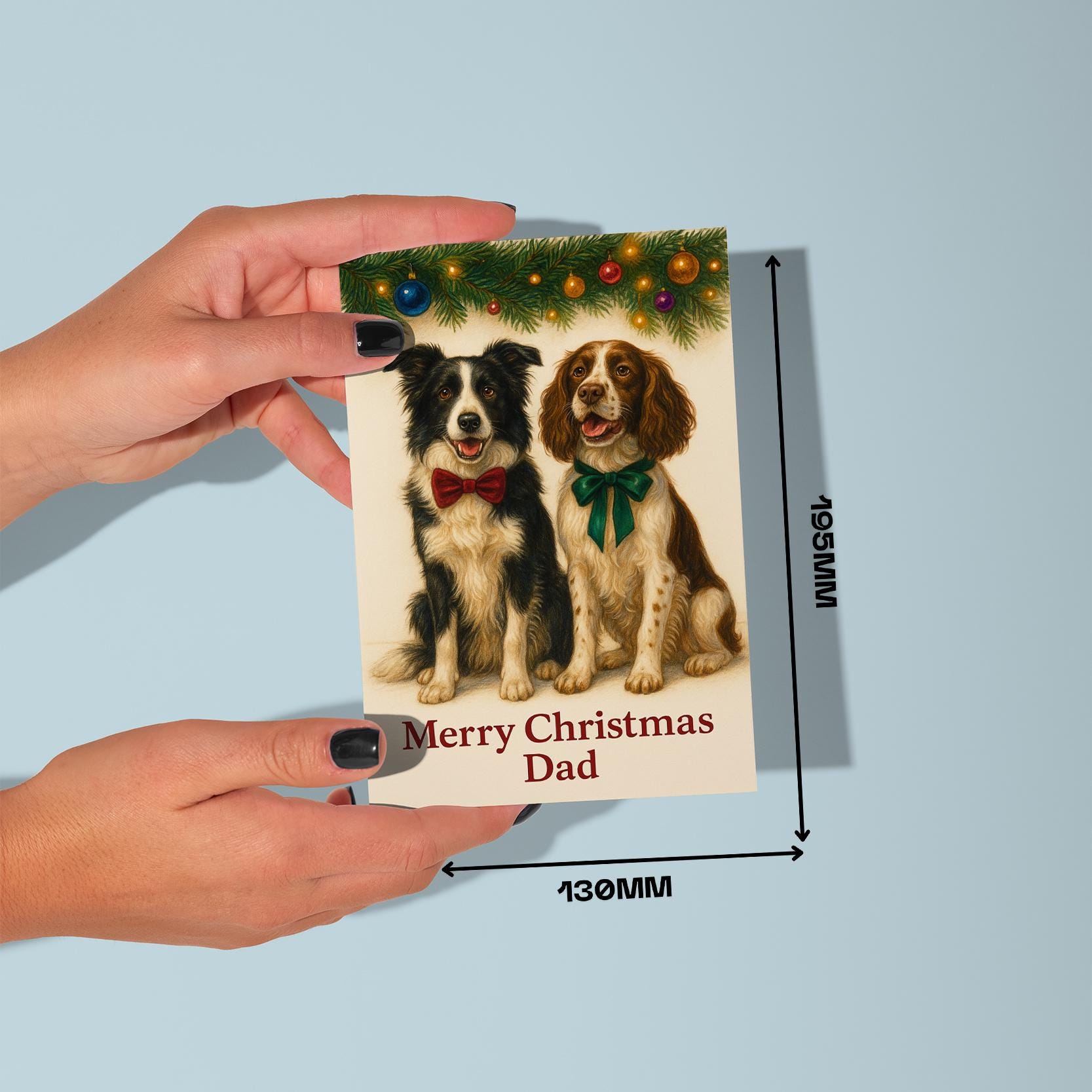 BLANK INTERIOR FOR A PERSONAL TOUCH: Part of the - Dog Breeds Collection - Santa’s Helpers Collection - Border Collie and Spaniel Dogs Duo - Merry Christmas Dad Card and other whimsical designs feature a blank interior, giving you ample space to write a personal message from the heart. Perfect for any occasion, each card comes with a matching white envelope, making it easy to send your unique sentiments to loved ones.