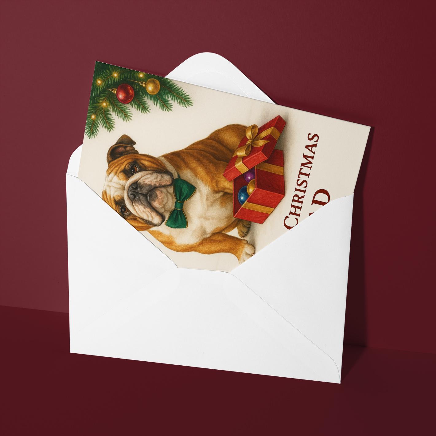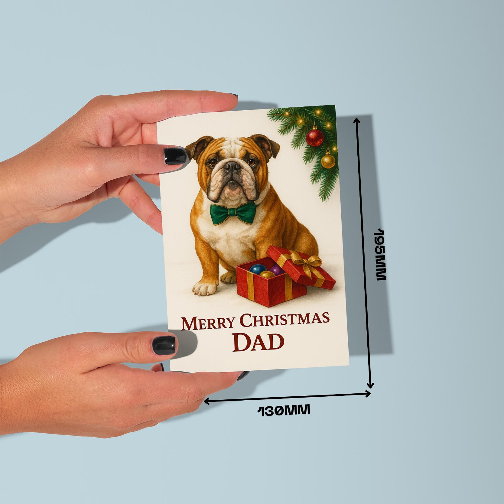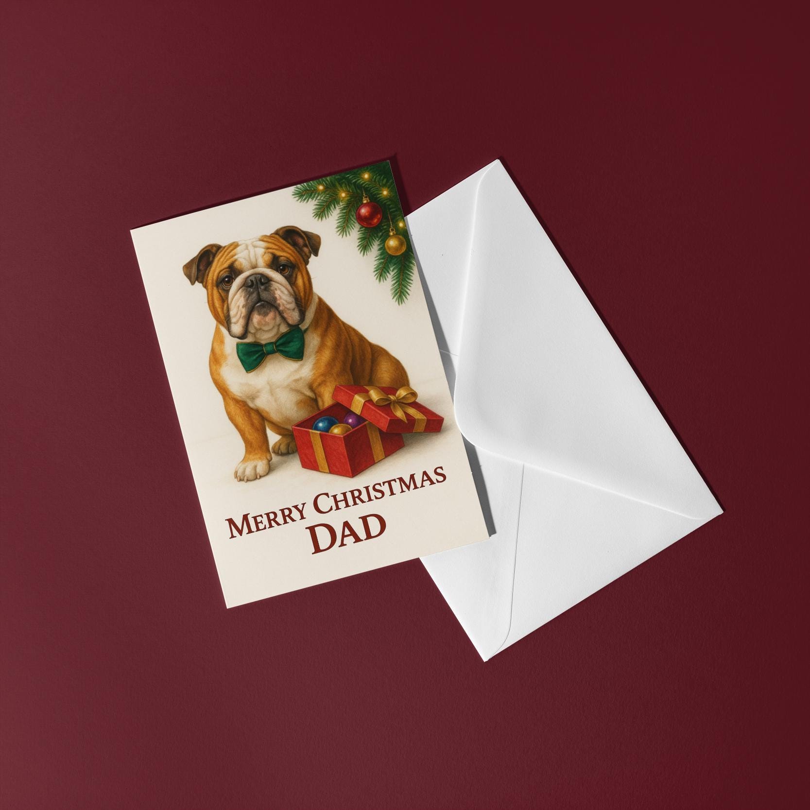 BLANK INTERIOR FOR A PERSONAL TOUCH: Part of the - Dog Breeds Collection - Santa’s Helpers Collection - English Bulldog Dog - Christmas Gentleman - Merry Christmas Dad Card and other whimsical designs feature a blank interior, giving you ample space to write a personal message from the heart. Perfect for any occasion, each card comes with a matching white envelope, making it easy to send your unique sentiments to loved ones.