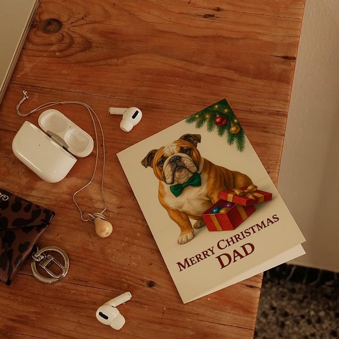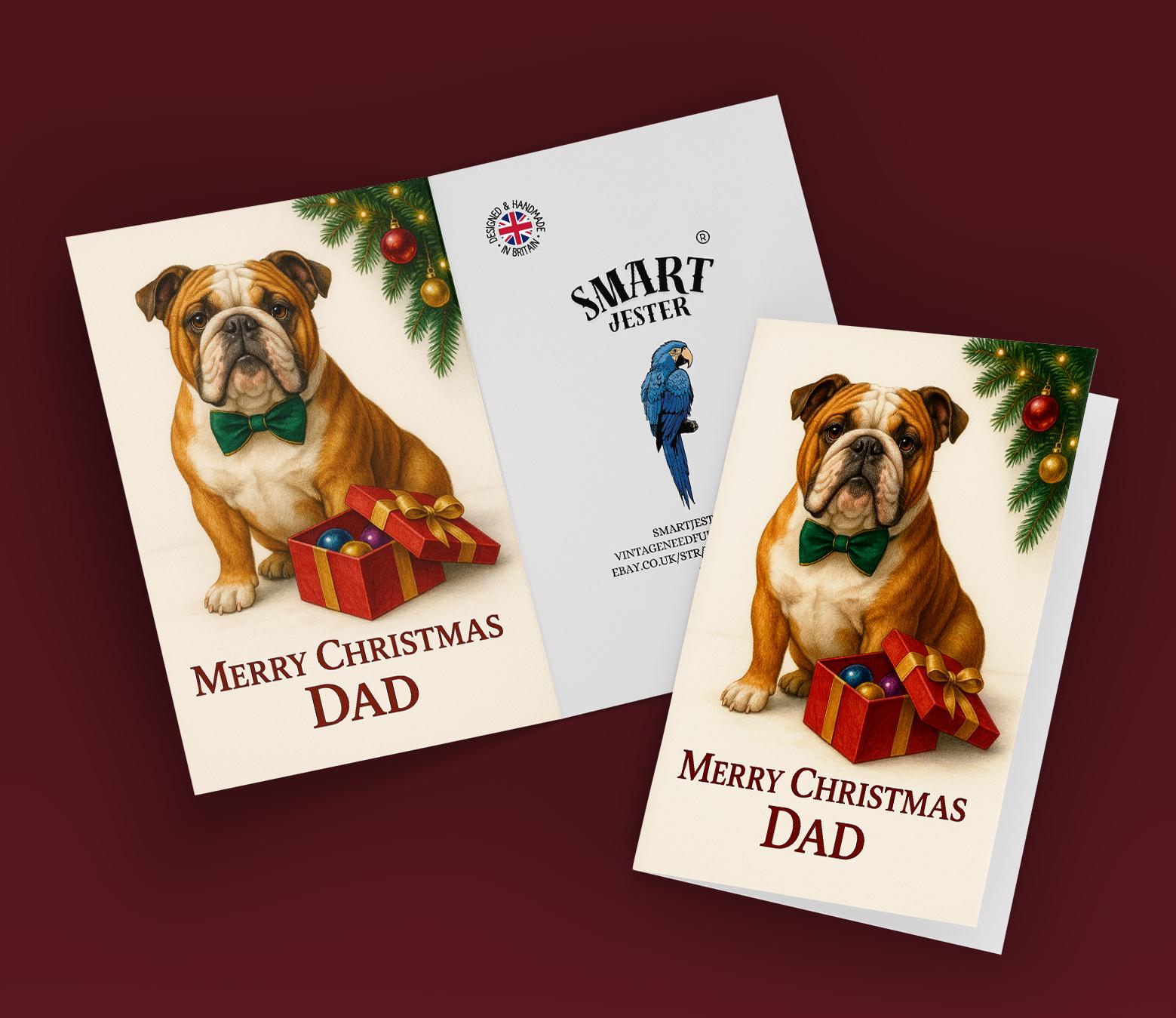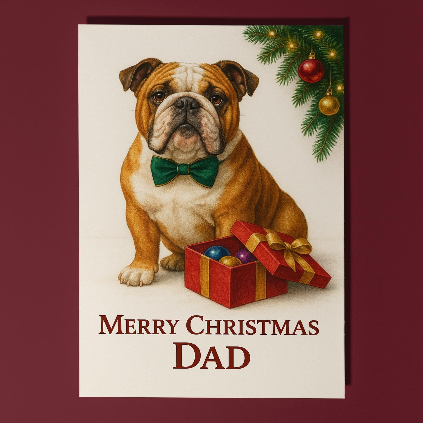 BLANK INTERIOR FOR A PERSONAL TOUCH: Part of the - Dog Breeds Collection - Santa’s Helpers Collection - English Bulldog Dog - Christmas Gentleman - Merry Christmas Dad Card and other whimsical designs feature a blank interior, giving you ample space to write a personal message from the heart. Perfect for any occasion, each card comes with a matching white envelope, making it easy to send your unique sentiments to loved ones.