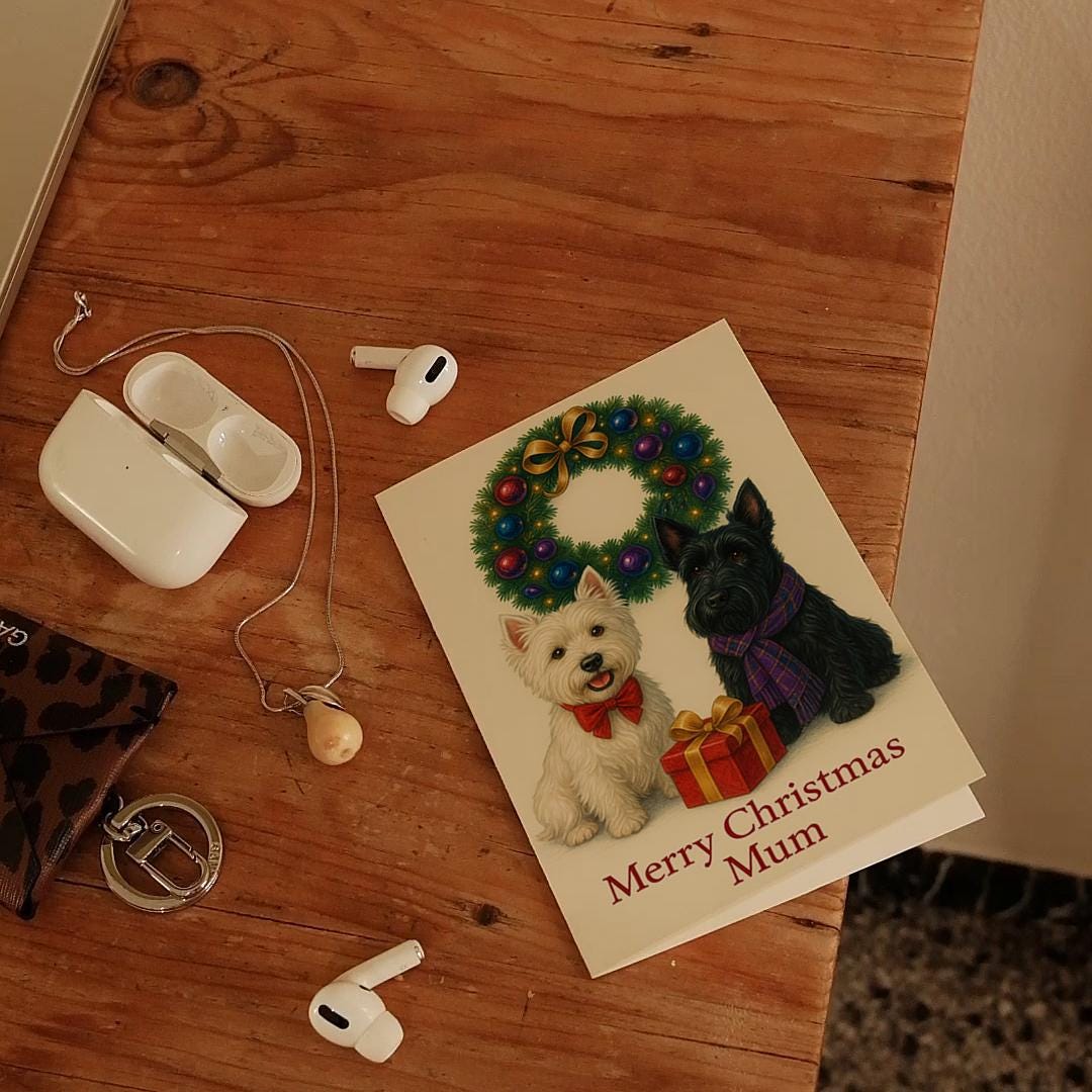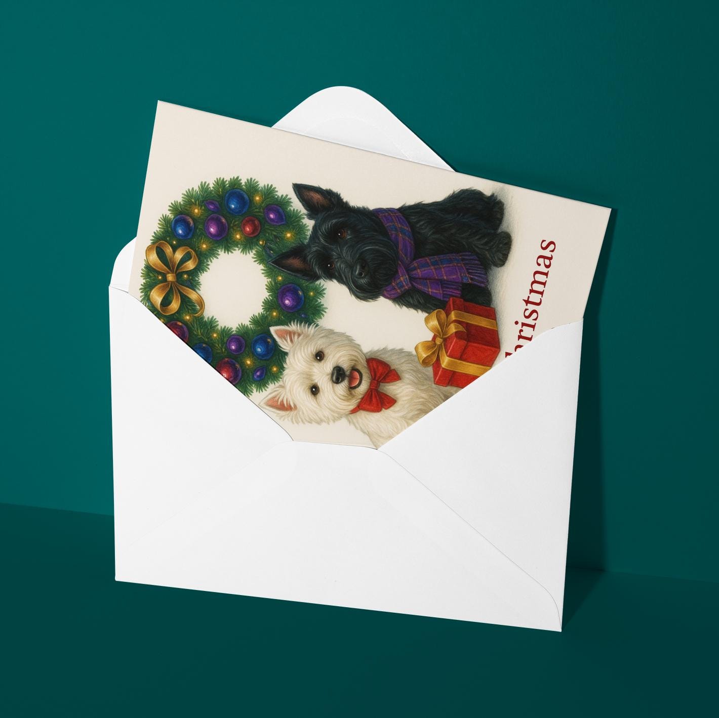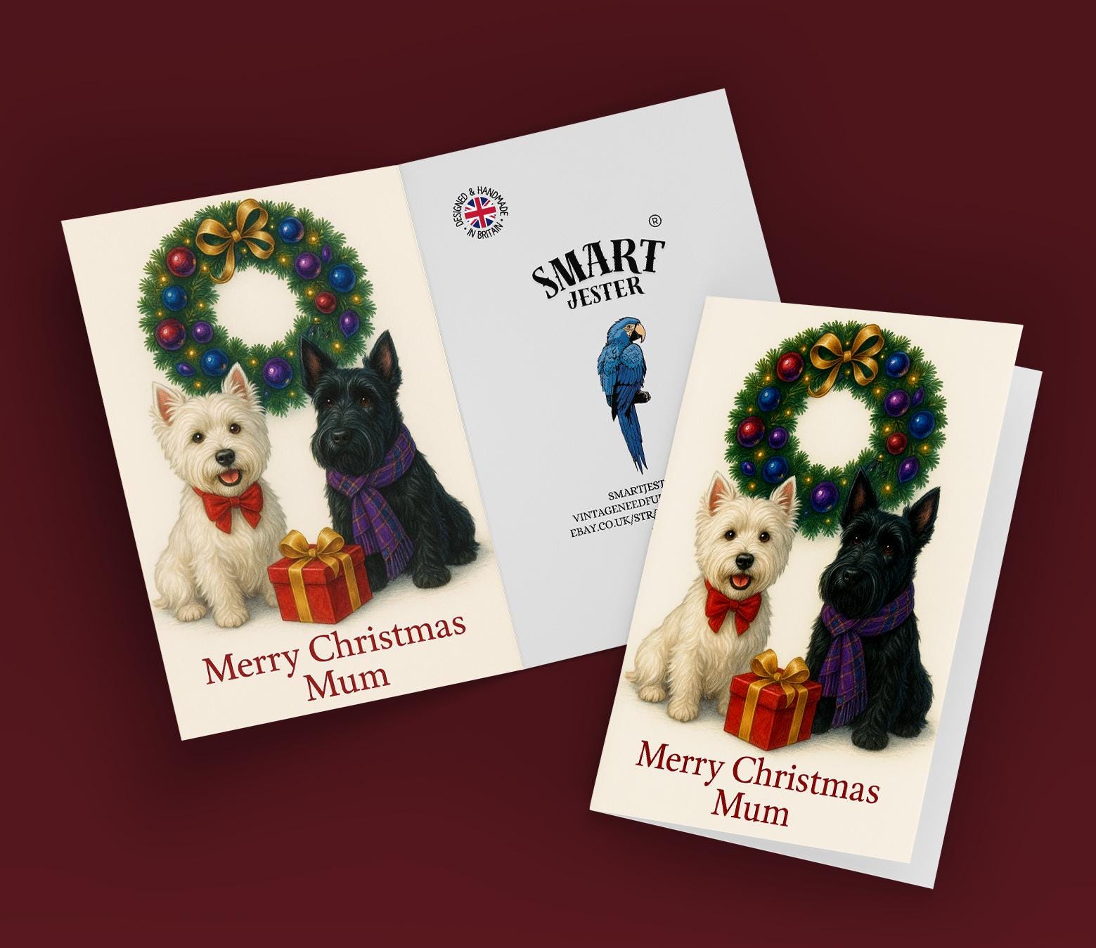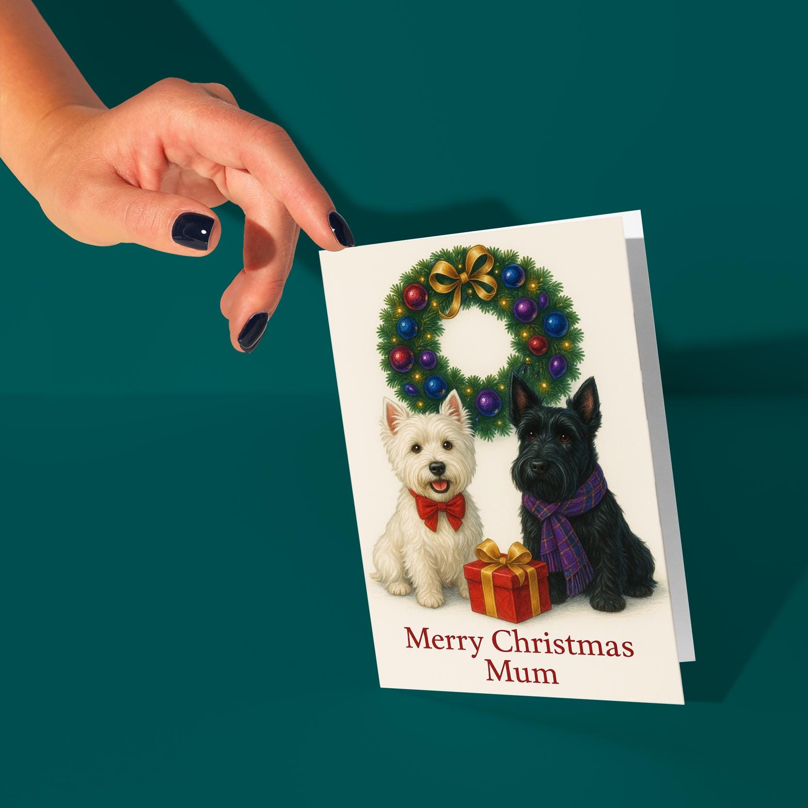 BLANK INTERIOR FOR A PERSONAL TOUCH: Part of the - Dog Breeds Collection - Santa’s Helpers Collection - West Highland White Terrier and Scottish Terrier Dogs Duo - Merry Christmas Mum Card and other whimsical designs feature a blank interior, giving you ample space to write a personal message from the heart. Perfect for any occasion, each card comes with a matching white envelope, making it easy to send your unique sentiments to loved ones.