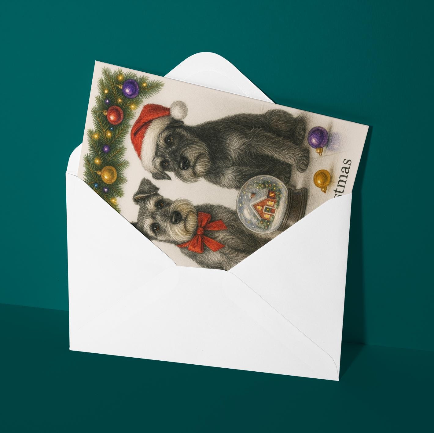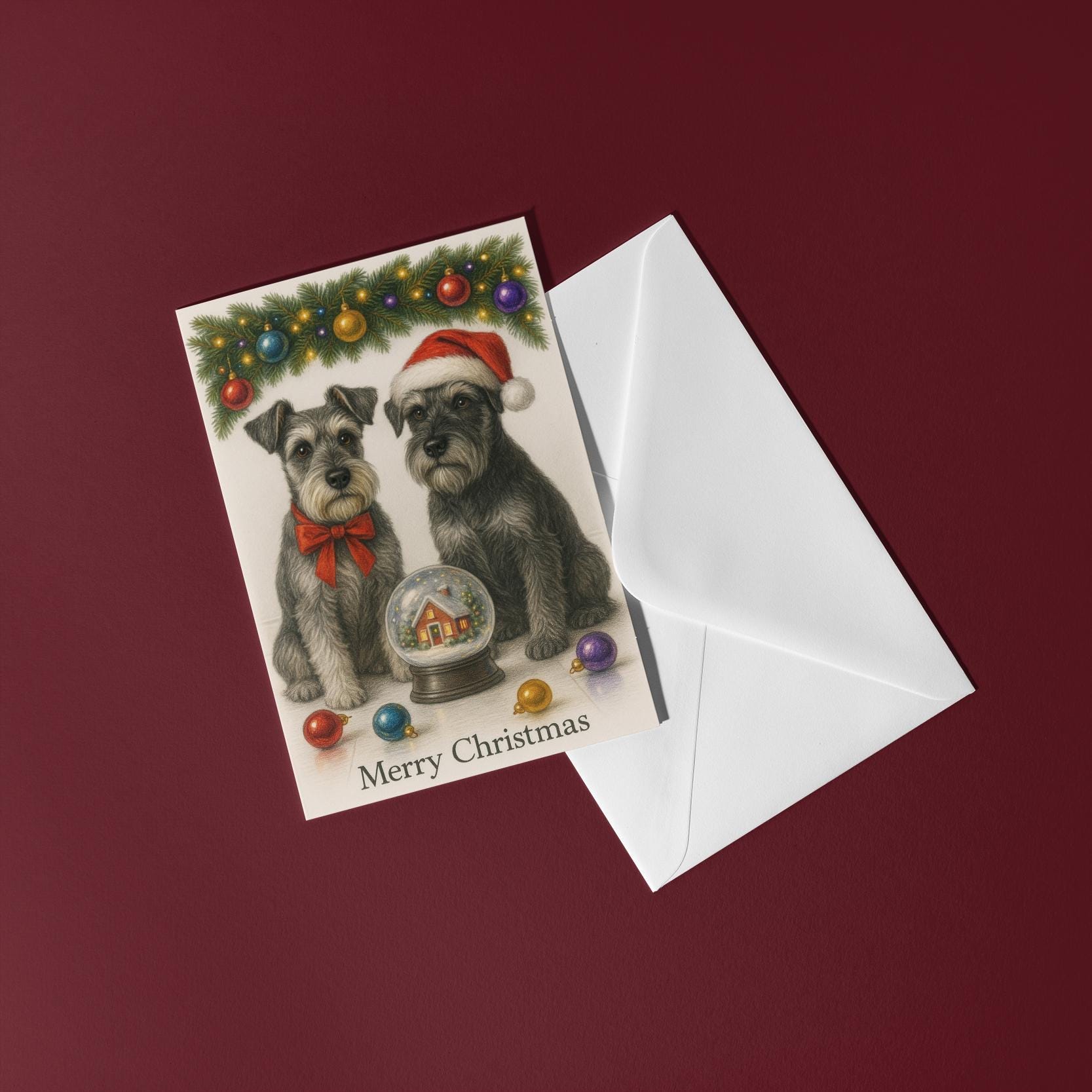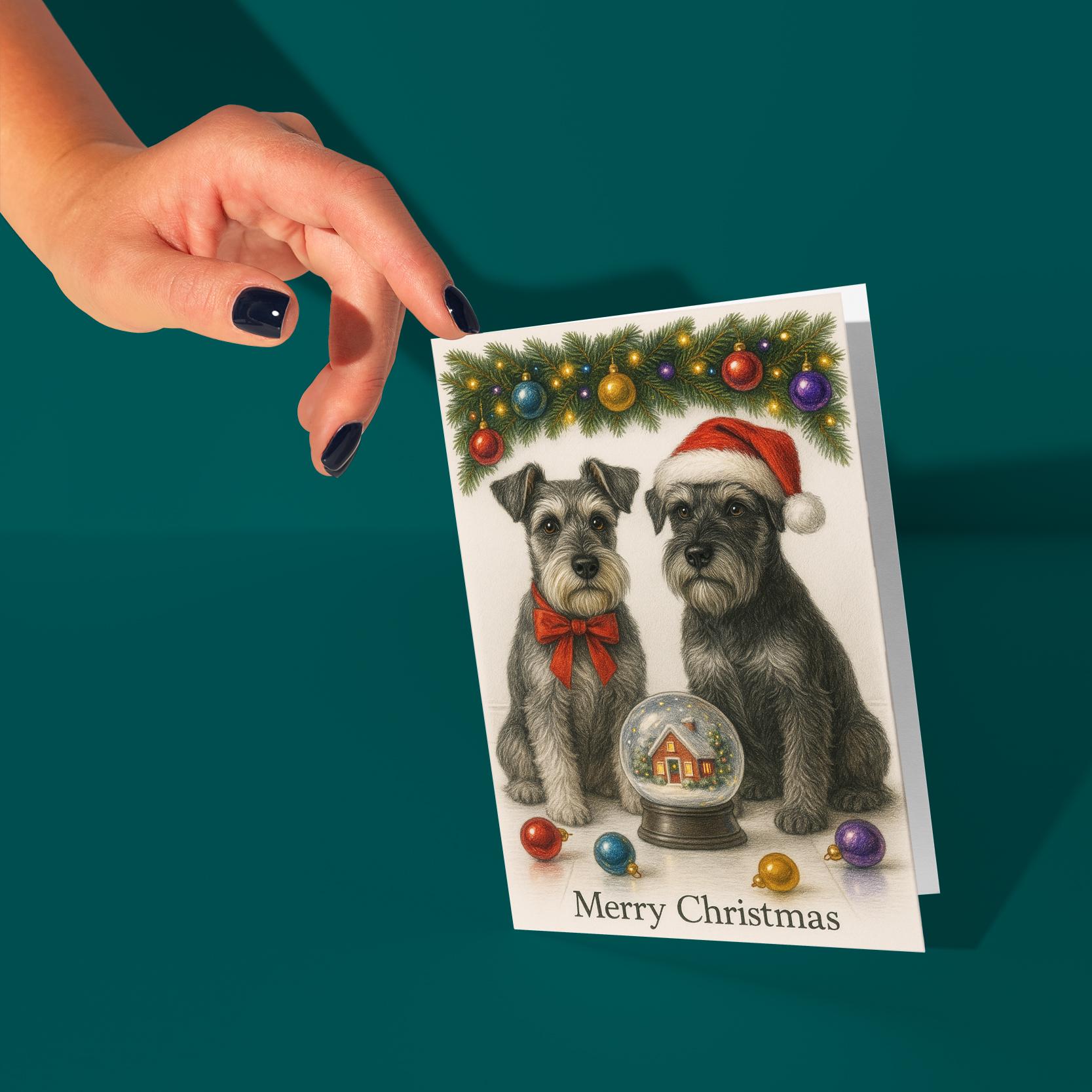 BLANK INTERIOR FOR A PERSONAL TOUCH: Part of the - Dog Breeds Collection - Santa’s Helpers Collection - Schnauzer Dogs Duo - Cozy Nose and Snow Globe - Merry Christmas! Card and other whimsical designs feature a blank interior, giving you ample space to write a personal message from the heart. Perfect for any occasion, each card comes with a matching white envelope, making it easy to send your unique sentiments to loved ones.