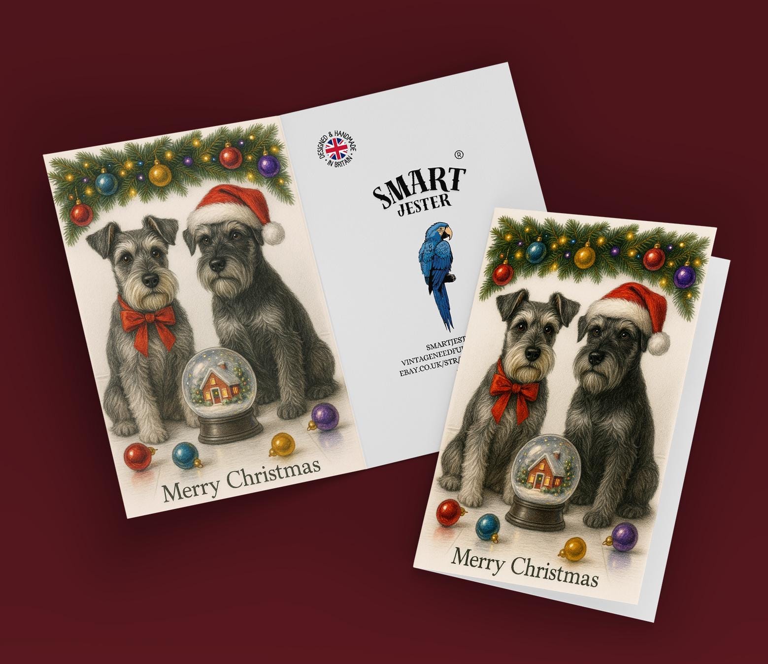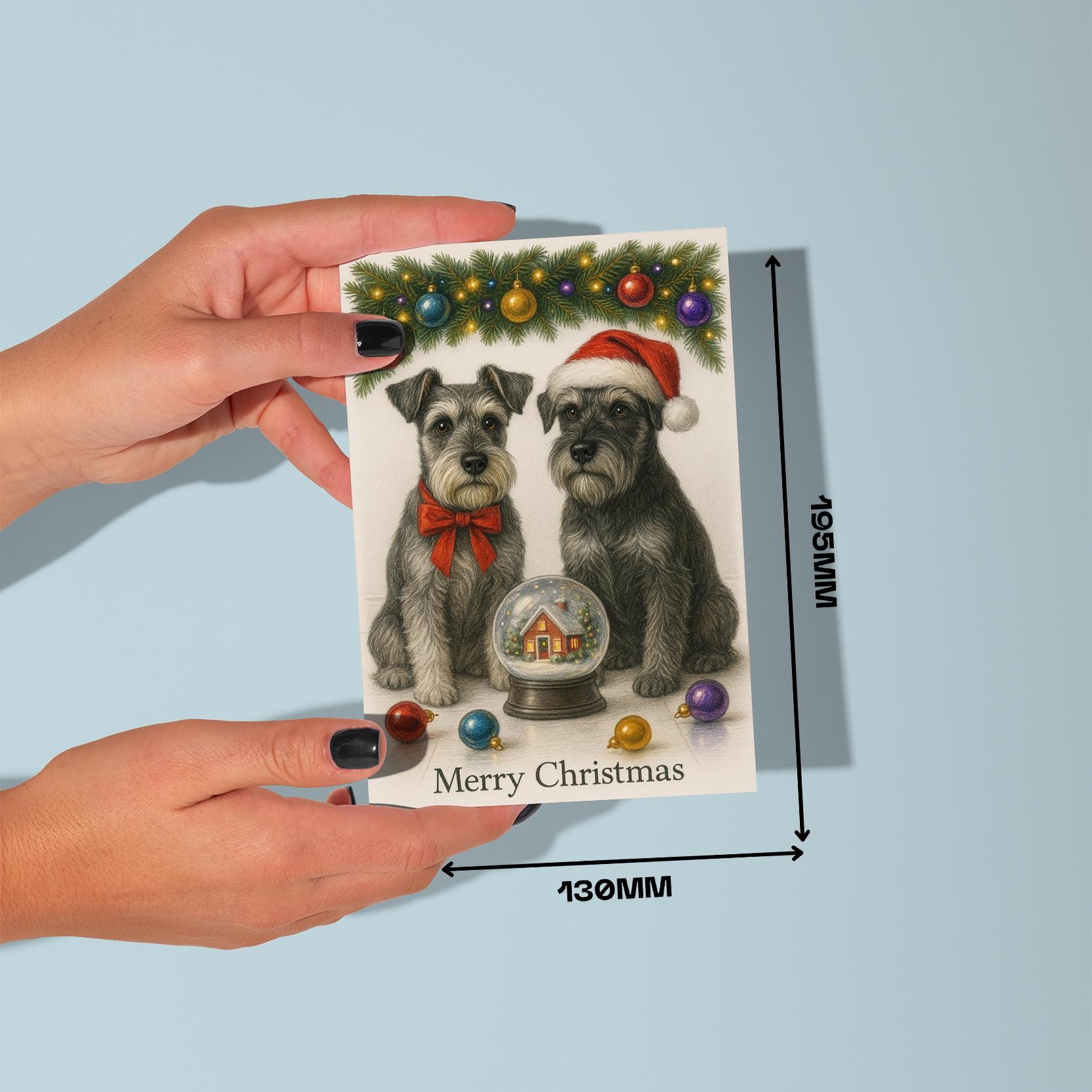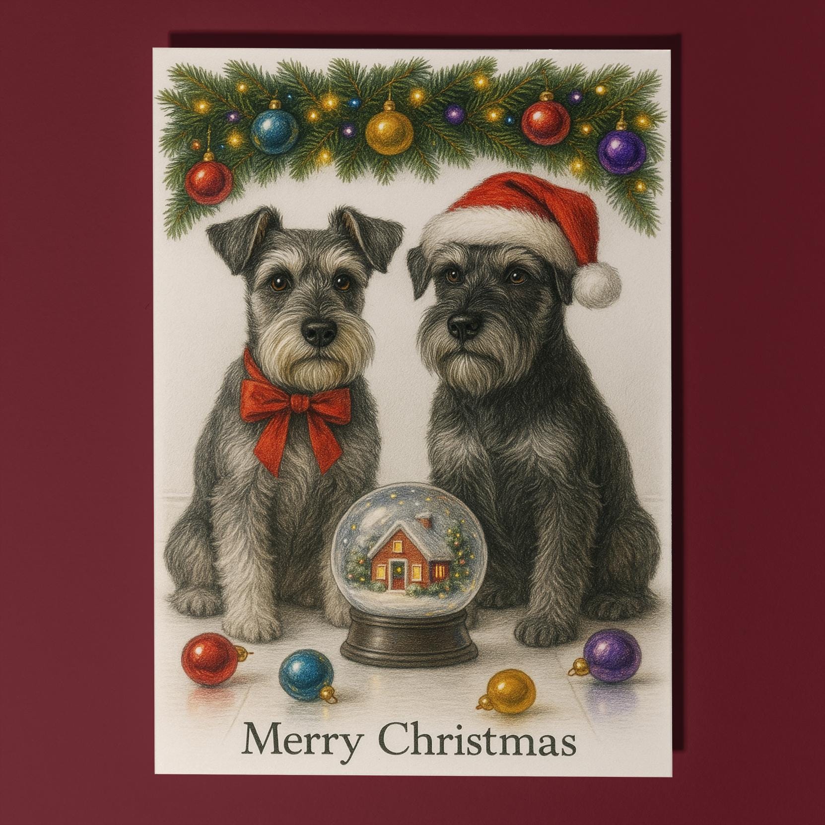 BLANK INTERIOR FOR A PERSONAL TOUCH: Part of the - Dog Breeds Collection - Santa’s Helpers Collection - Schnauzer Dogs Duo - Cozy Nose and Snow Globe - Merry Christmas! Card and other whimsical designs feature a blank interior, giving you ample space to write a personal message from the heart. Perfect for any occasion, each card comes with a matching white envelope, making it easy to send your unique sentiments to loved ones.
