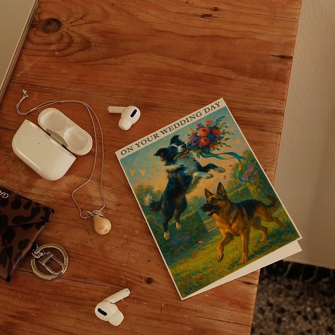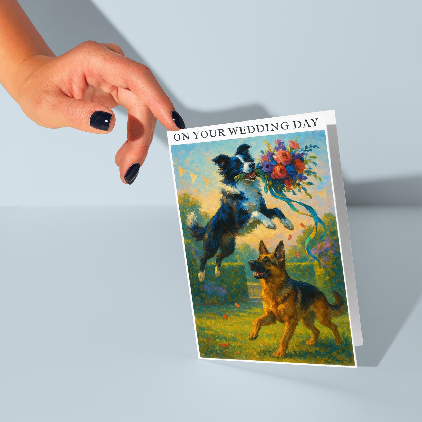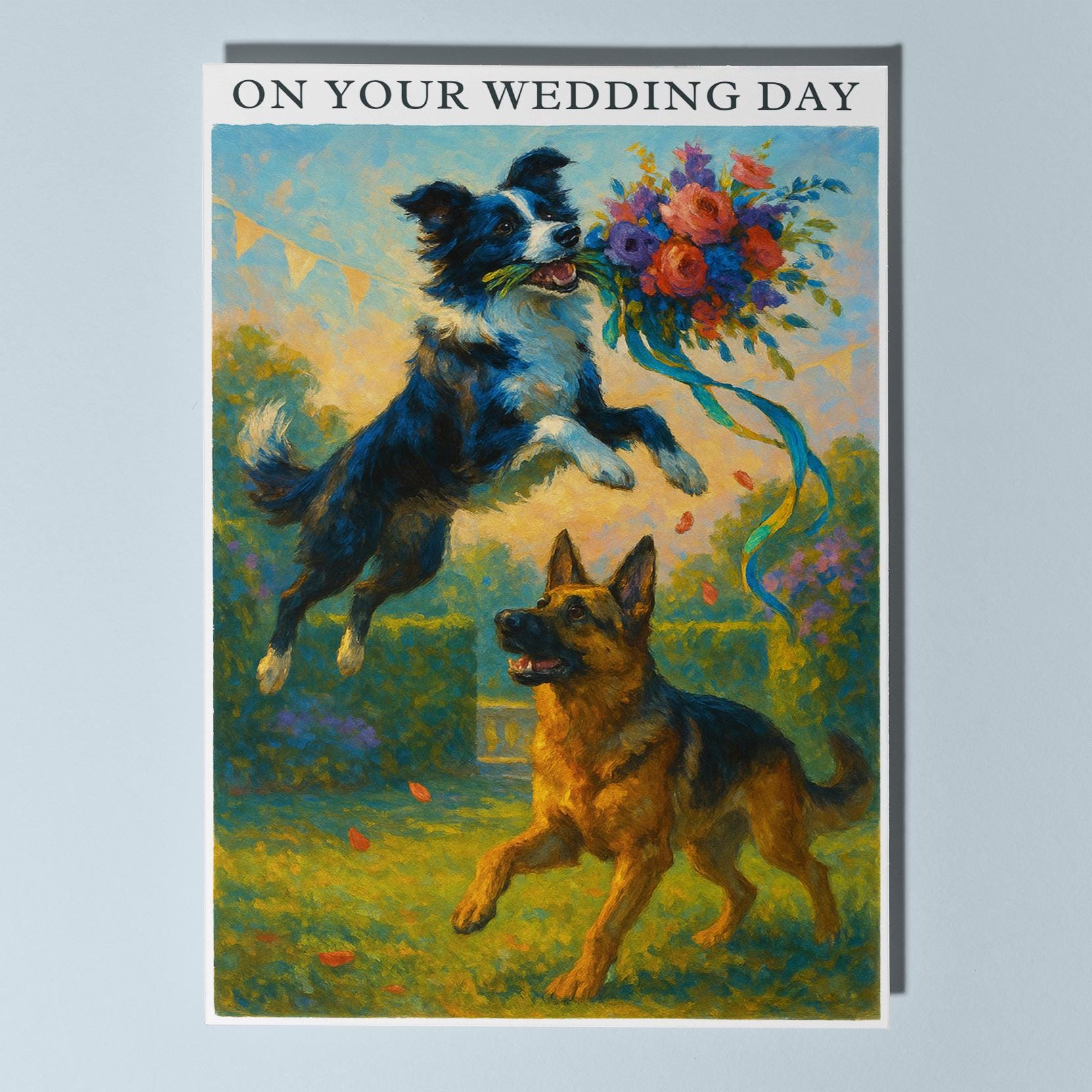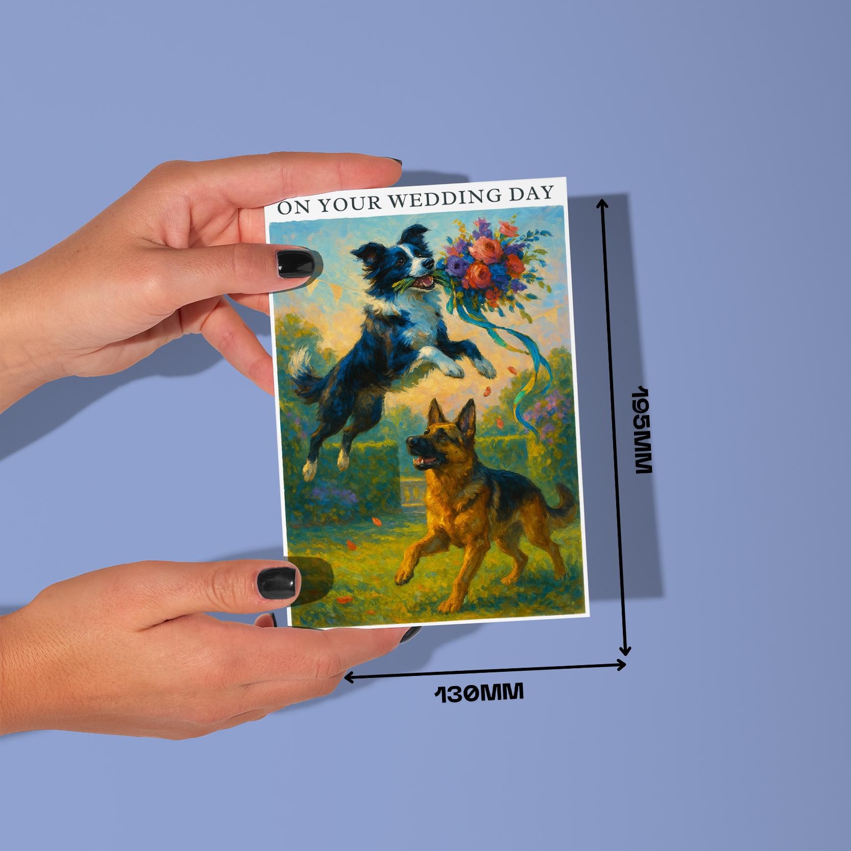 BLANK INTERIOR FOR A PERSONAL TOUCH: Our Dogs breeds collection - Wedding Edition - Border collie and German Shepherd Dog Duo - Bouquet Chase - On your wedding day Card and other whimsical designs feature a blank interior, giving you ample space to write a personal message from the heart. Perfect for any occasion, each card comes with a matching white envelope, making it easy to send your unique sentiments to loved ones.