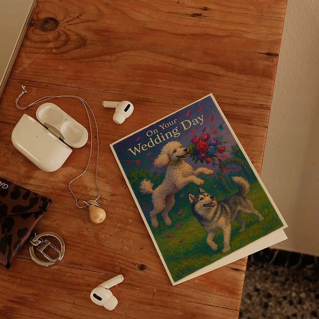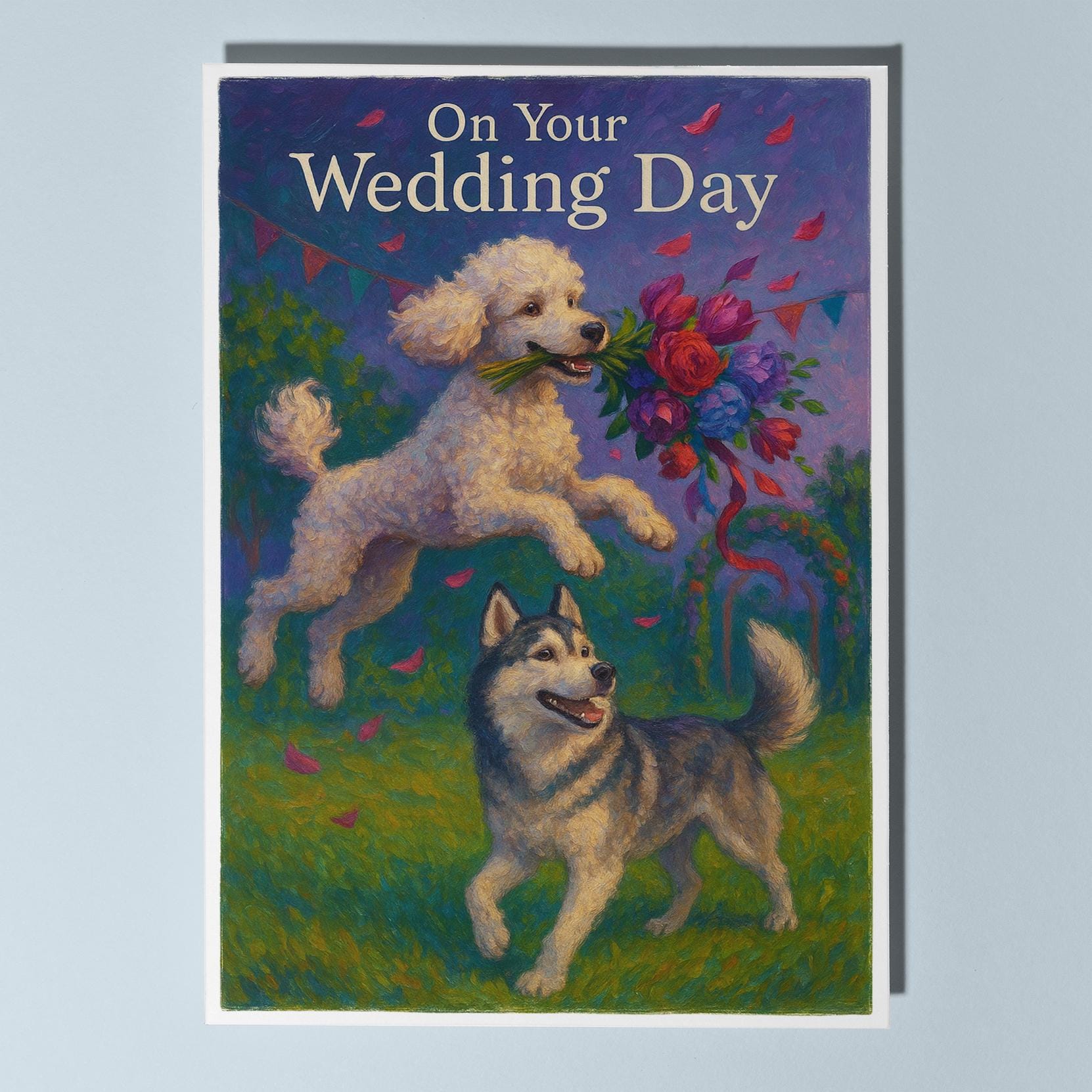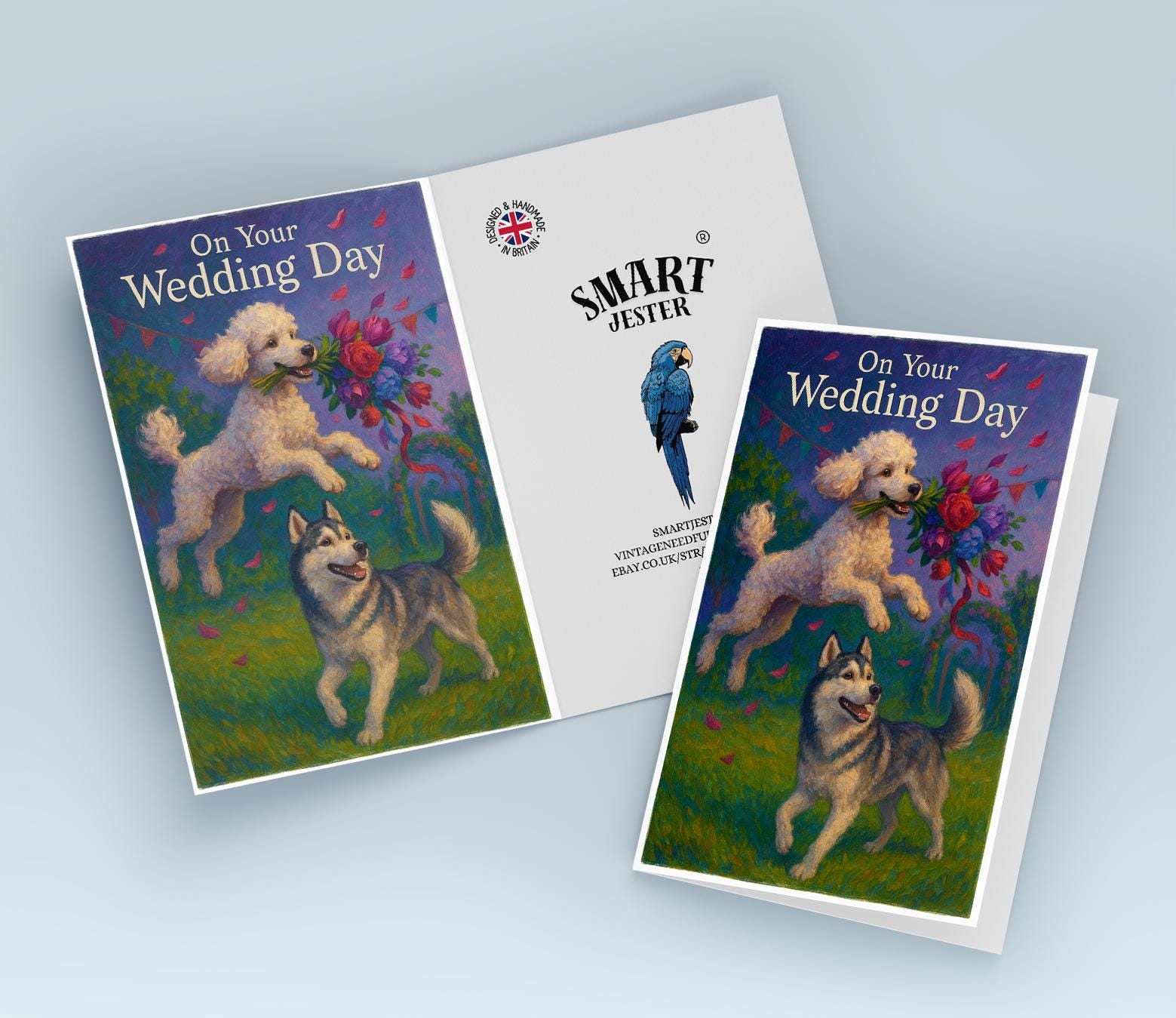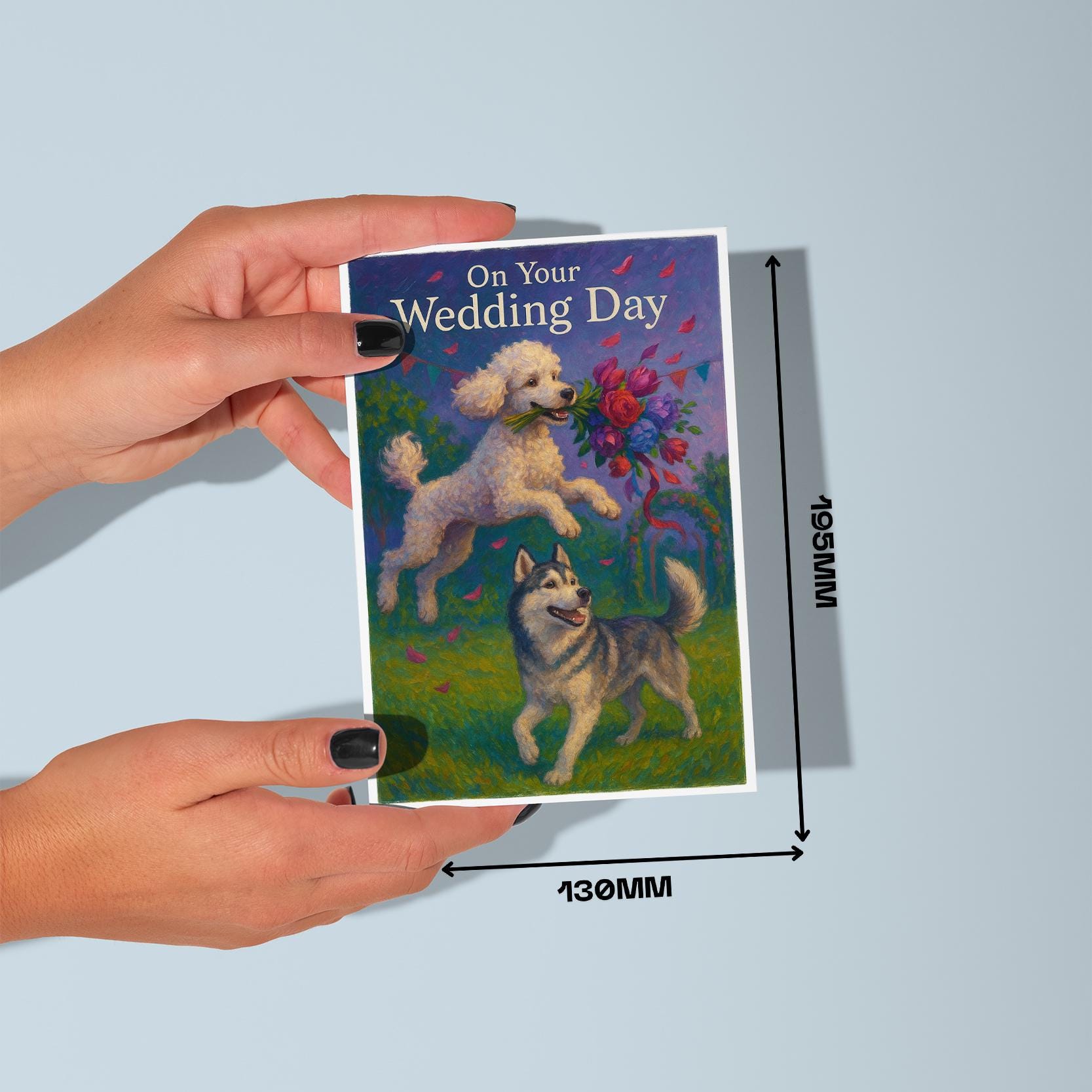 BLANK INTERIOR FOR A PERSONAL TOUCH: Our Dogs breeds collection - Wedding Edition - Poodle and Husky Dogs Duo - Bouquet Chase - On your wedding day Card and other whimsical designs feature a blank interior, giving you ample space to write a personal message from the heart. Perfect for any occasion, each card comes with a matching white envelope, making it easy to send your unique sentiments to loved ones.