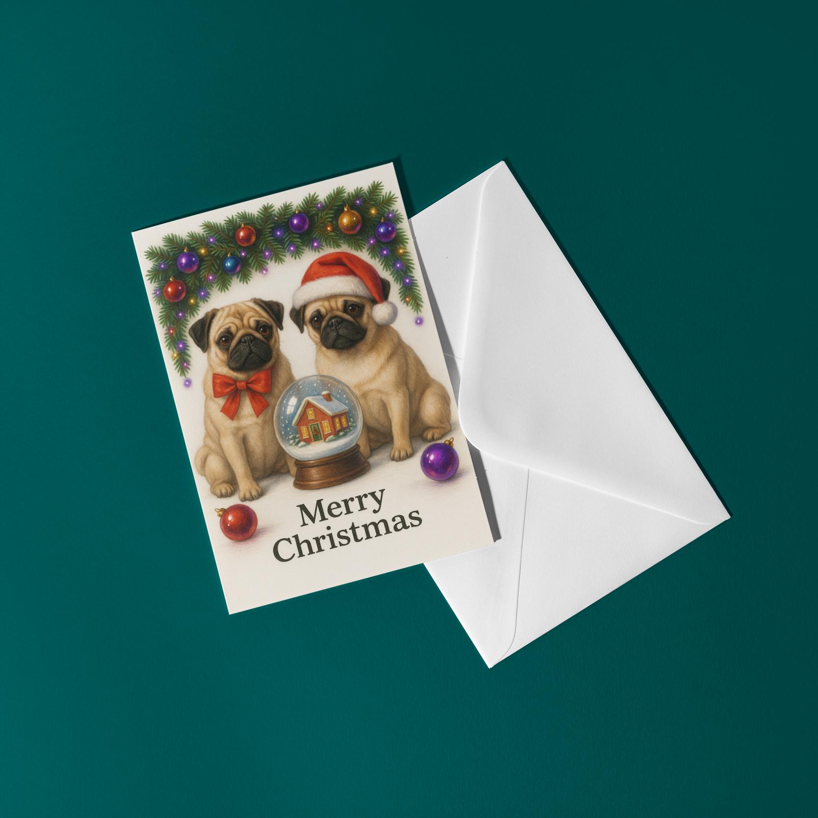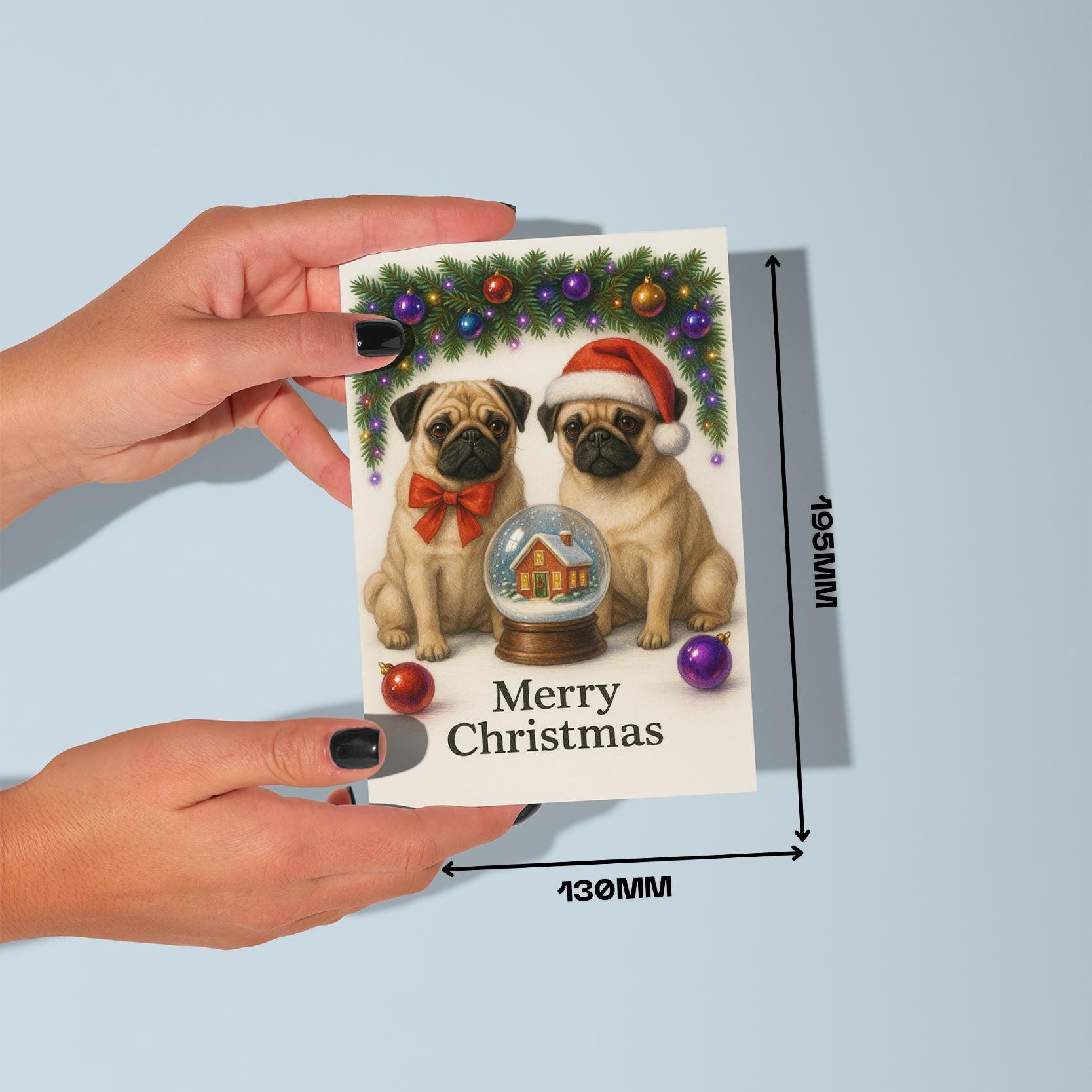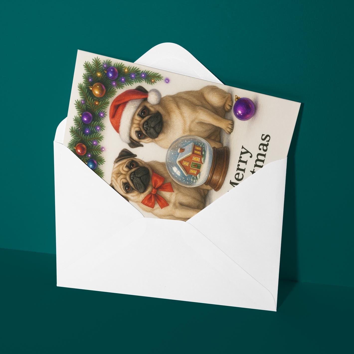 BLANK INTERIOR FOR A PERSONAL TOUCH: Part of the - Dog Breeds Collection - Santa’s Helpers Collection - Pug Dogs Duo - Cozy Nose and Snow Globe - Merry Christmas! Card and other whimsical designs feature a blank interior, giving you ample space to write a personal message from the heart. Perfect for any occasion, each card comes with a matching white envelope, making it easy to send your unique sentiments to loved ones.