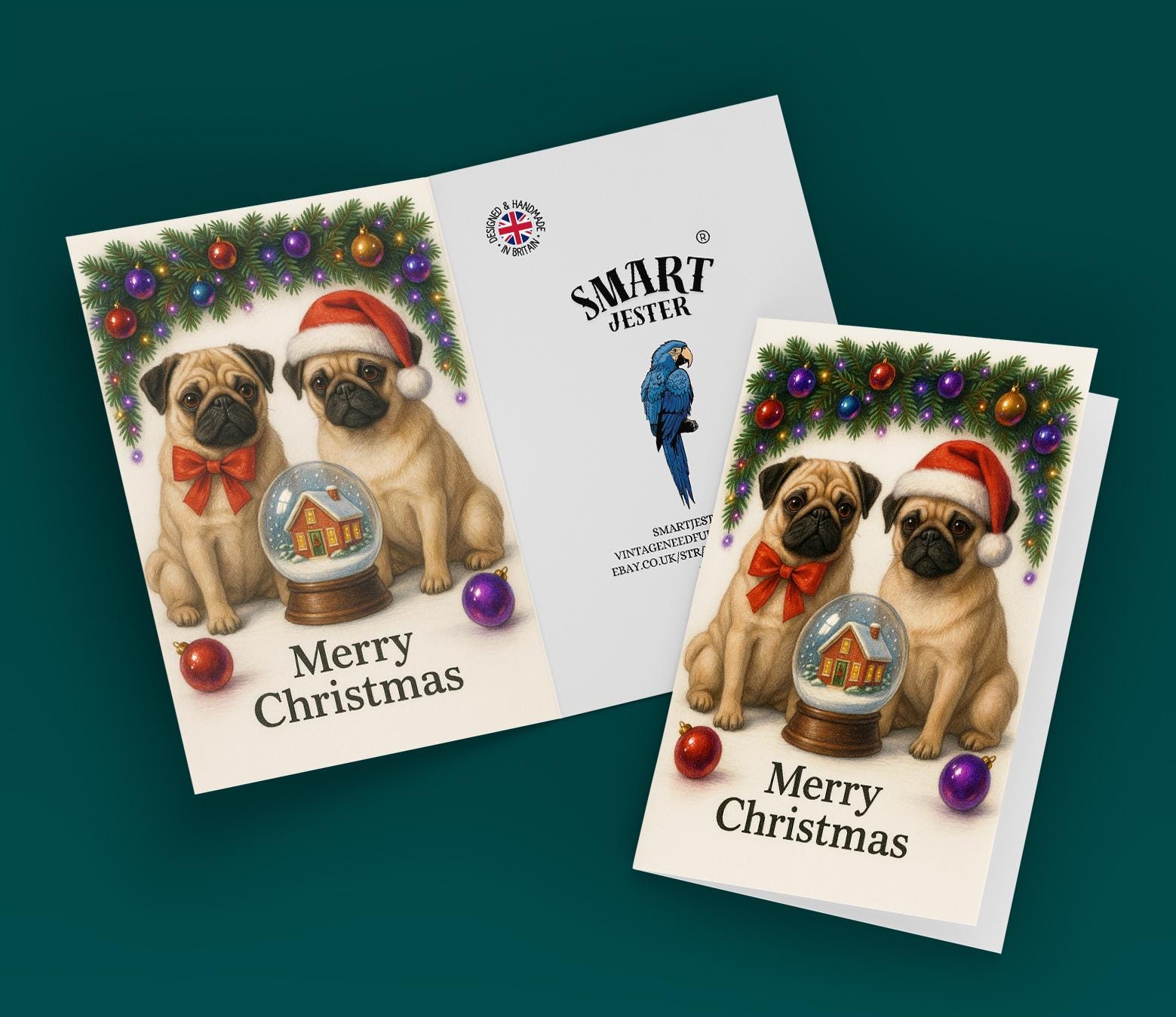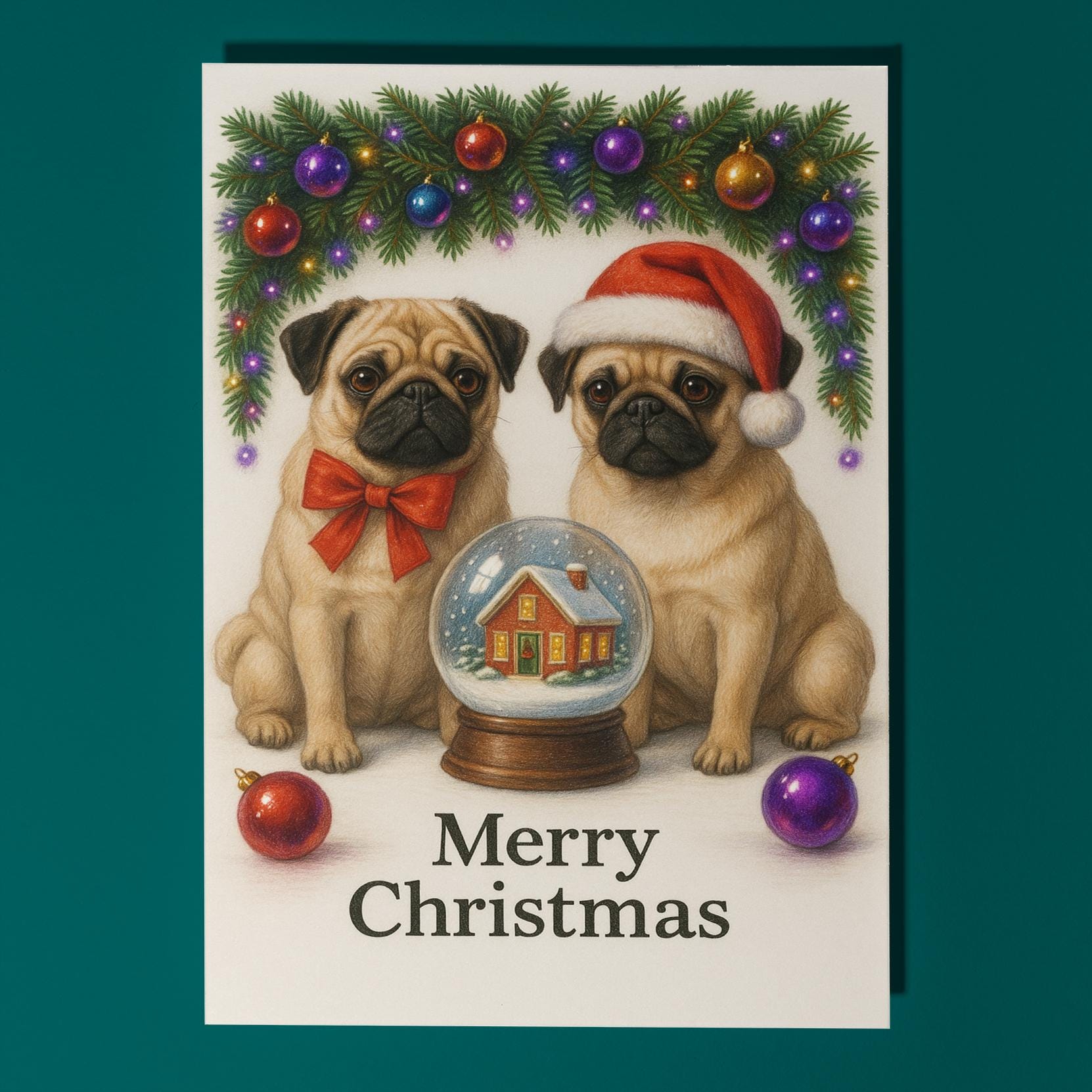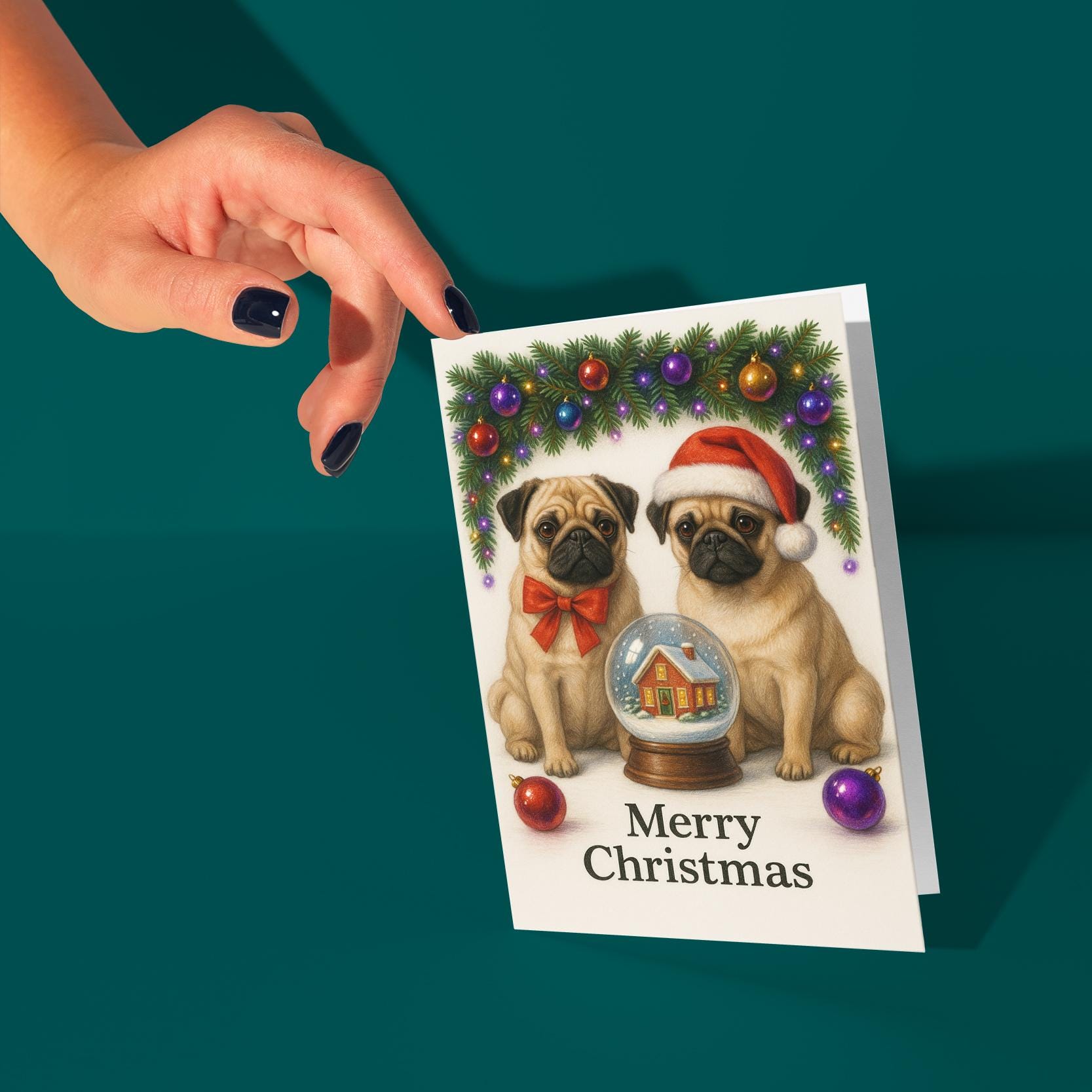 BLANK INTERIOR FOR A PERSONAL TOUCH: Part of the - Dog Breeds Collection - Santa’s Helpers Collection - Pug Dogs Duo - Cozy Nose and Snow Globe - Merry Christmas! Card and other whimsical designs feature a blank interior, giving you ample space to write a personal message from the heart. Perfect for any occasion, each card comes with a matching white envelope, making it easy to send your unique sentiments to loved ones.