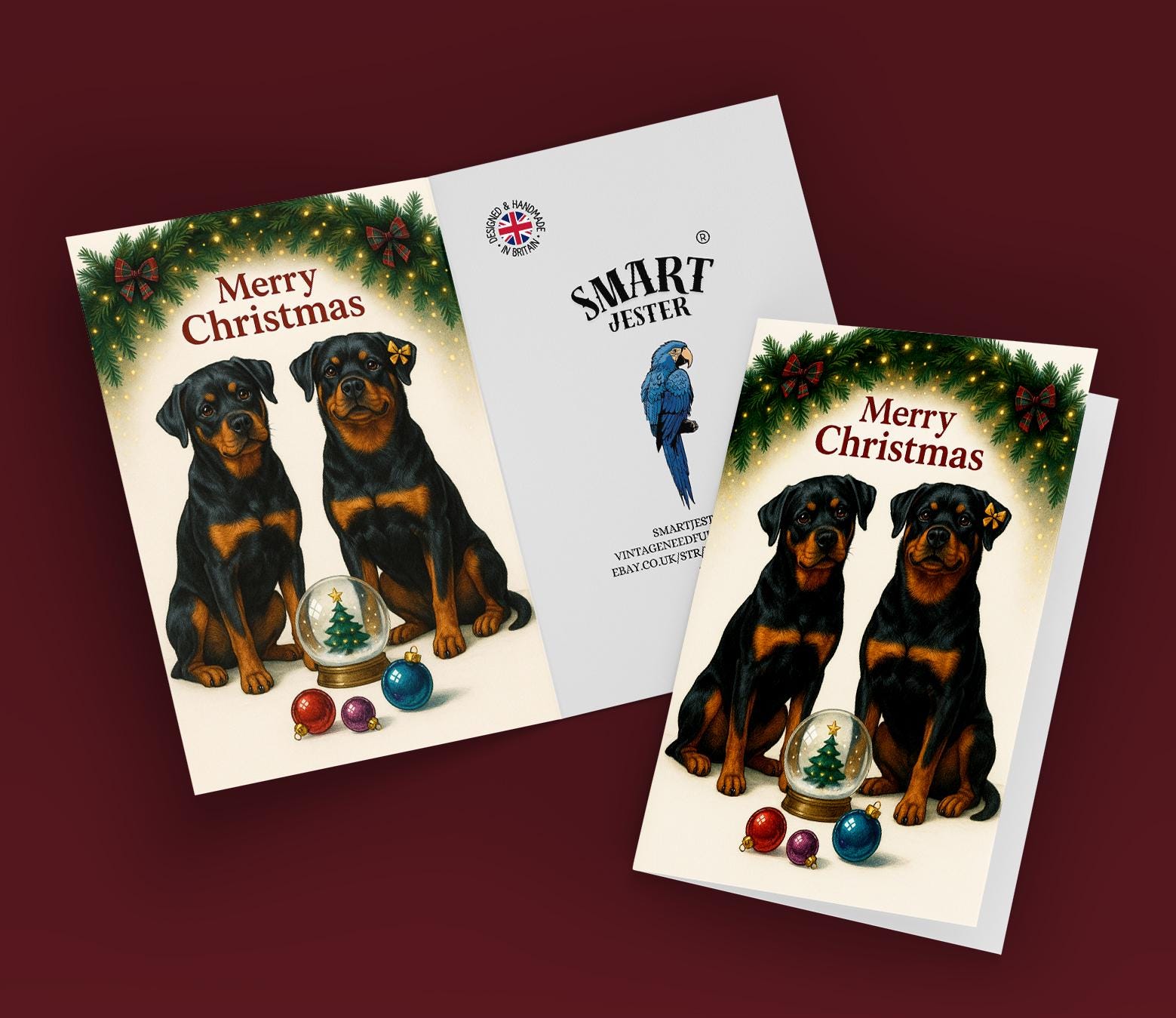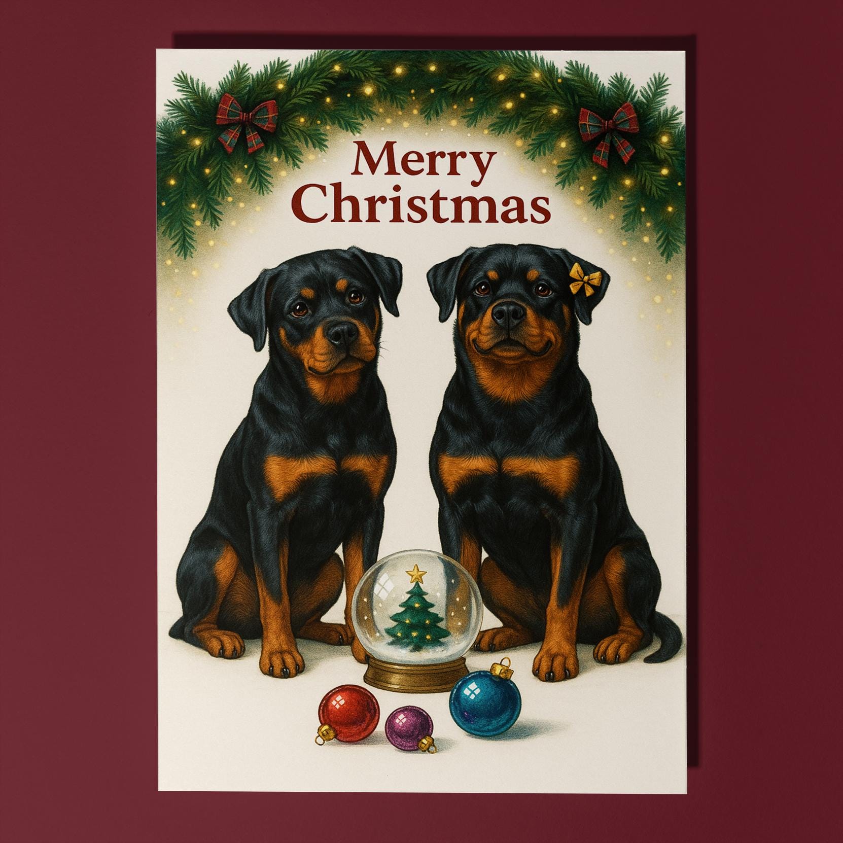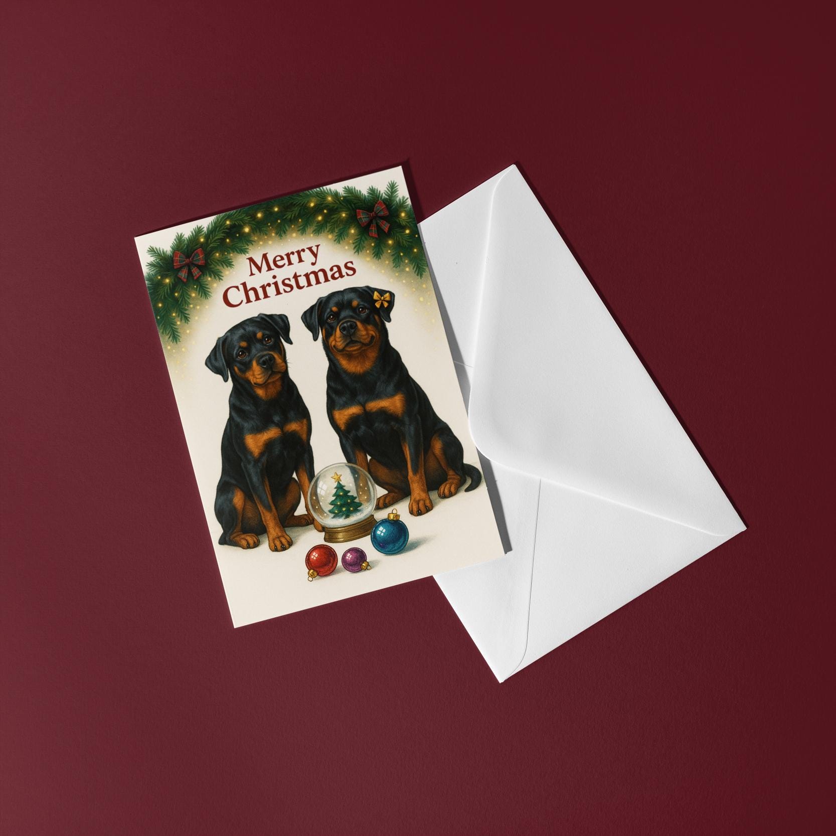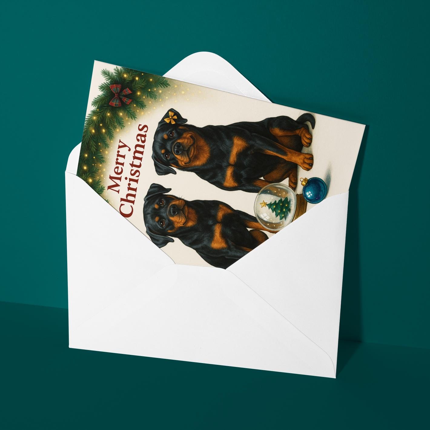 BLANK INTERIOR FOR A PERSONAL TOUCH: Part of the - Dog Breeds Collection - Santa’s Helpers Collection - Rottweiler Dogs Duo - Cozy Nose and Snow Globe - Merry Christmas! Card and other whimsical designs feature a blank interior, giving you ample space to write a personal message from the heart. Perfect for any occasion, each card comes with a matching white envelope, making it easy to send your unique sentiments to loved ones.