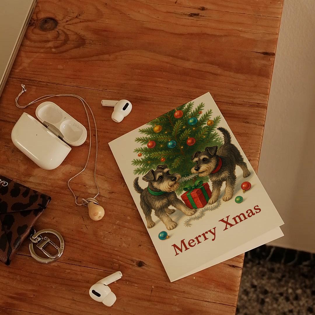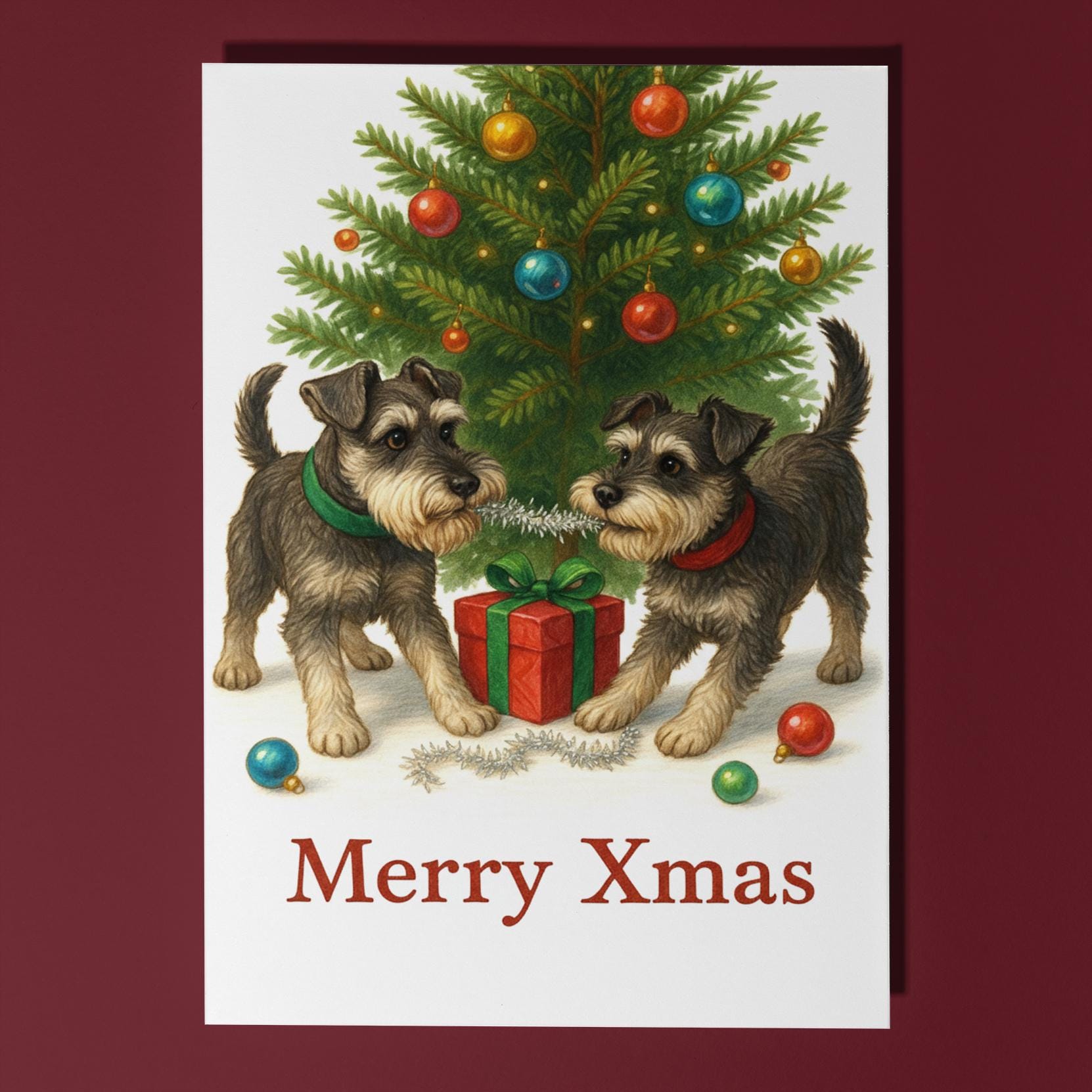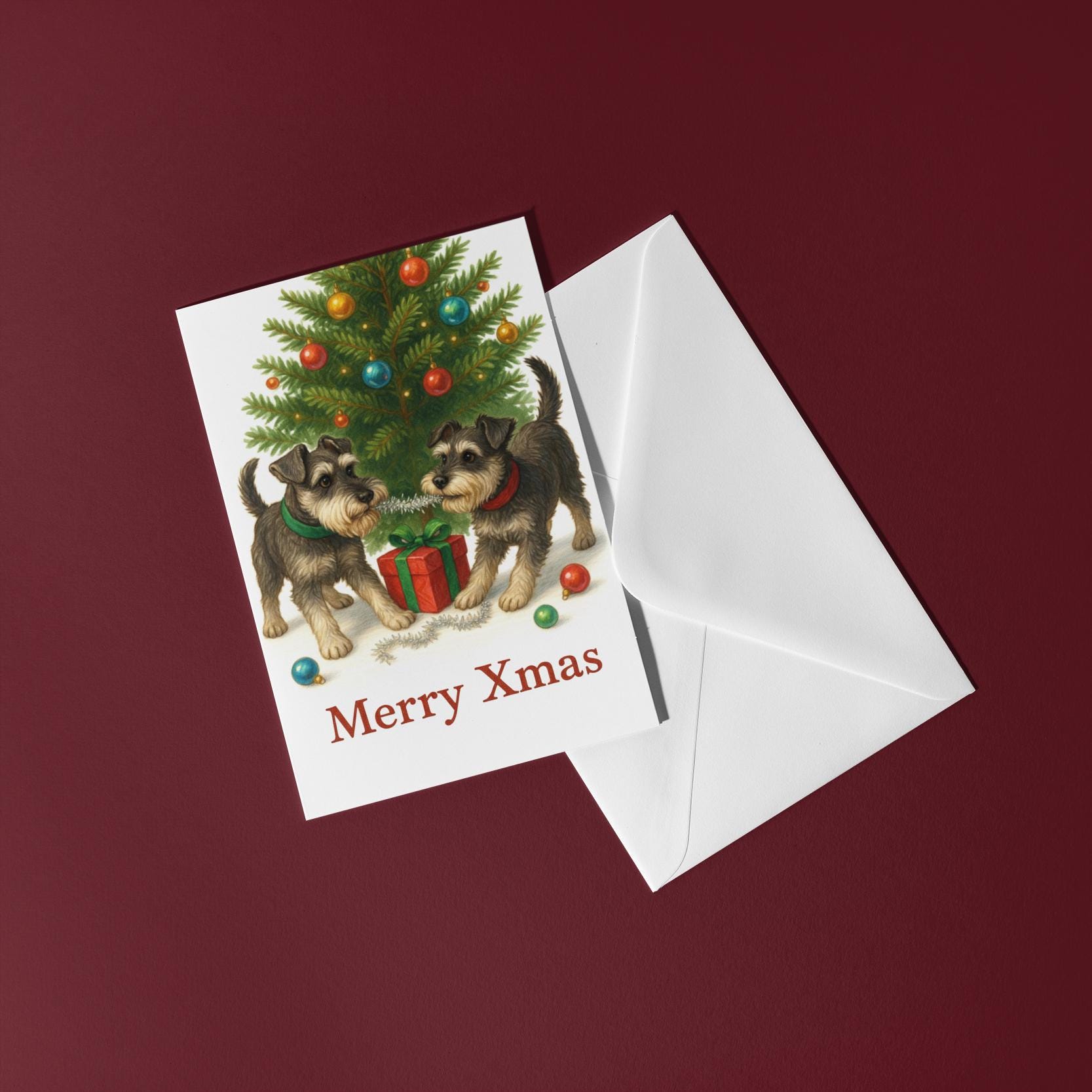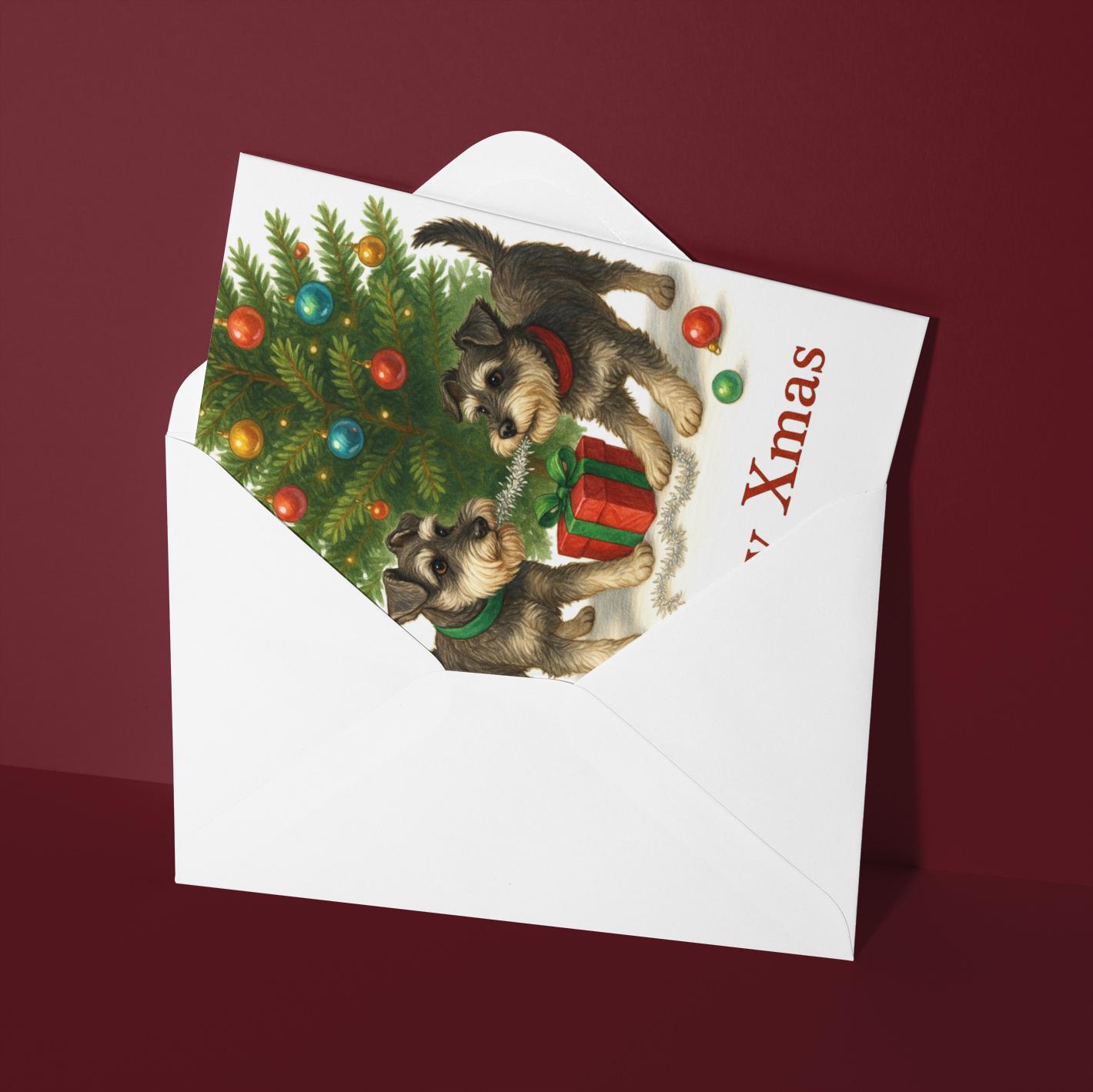 BLANK INTERIOR FOR A PERSONAL TOUCH: Part of the - Dog Breeds Collection - Santa’s Helpers Collection - Schnauzer Dogs Duo - Festive Tug of Joy - Merry Xmas Card and other whimsical designs feature a blank interior, giving you ample space to write a personal message from the heart. Perfect for any occasion, each card comes with a matching white envelope, making it easy to send your unique sentiments to loved ones.